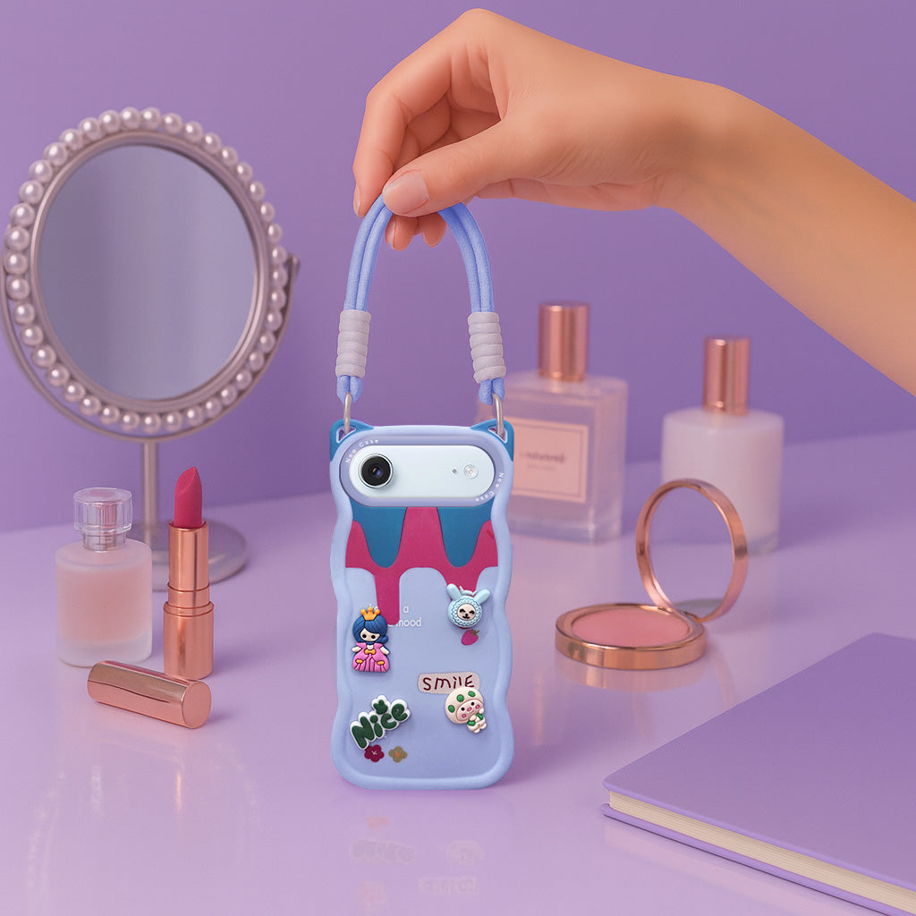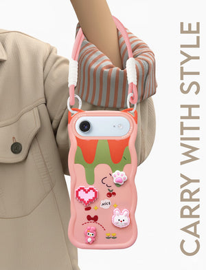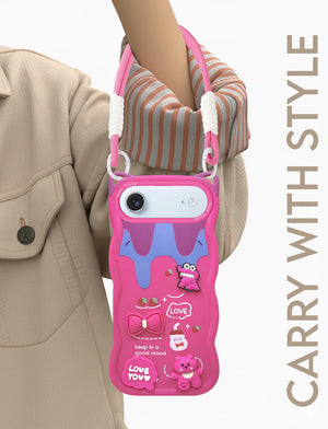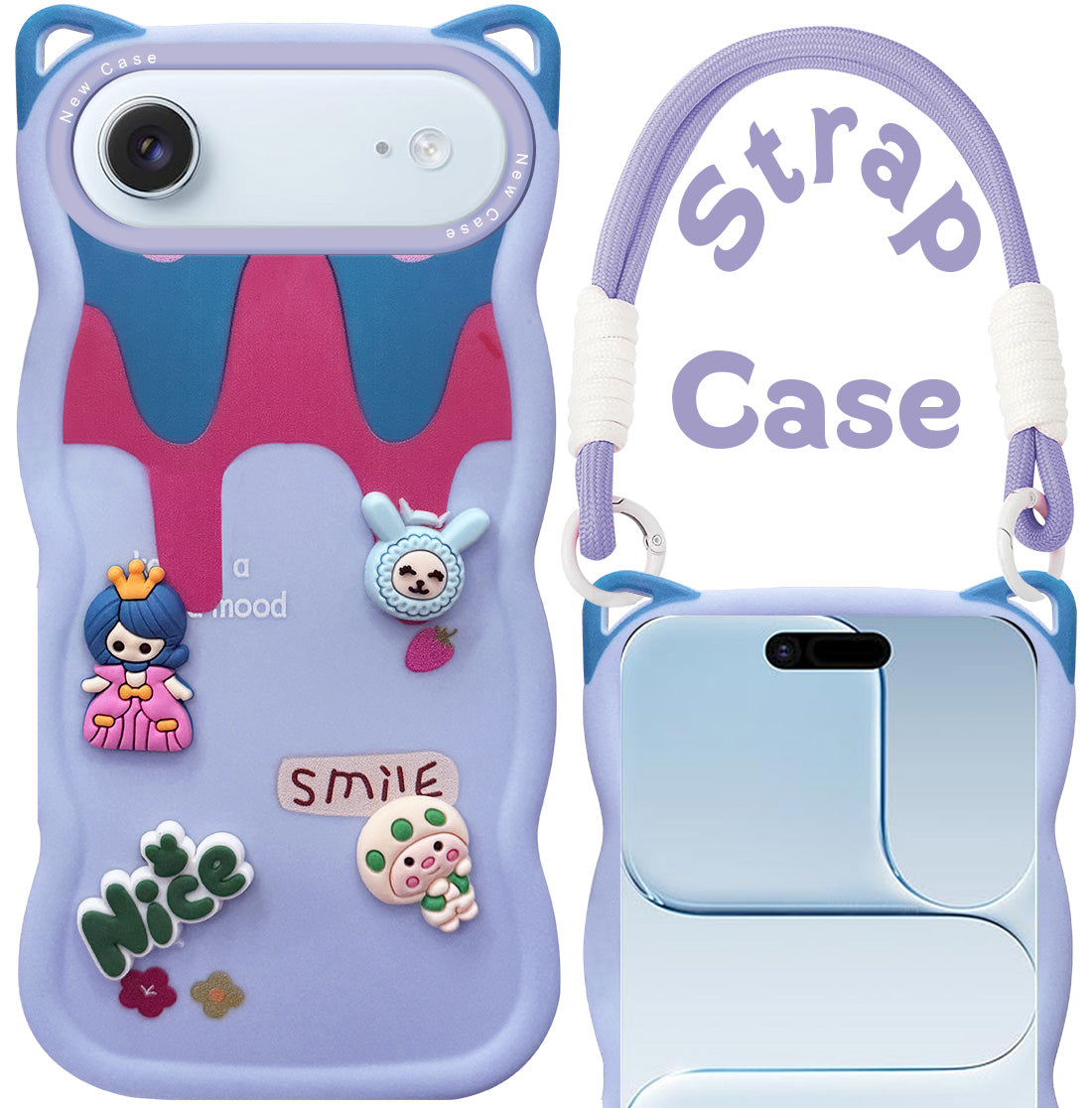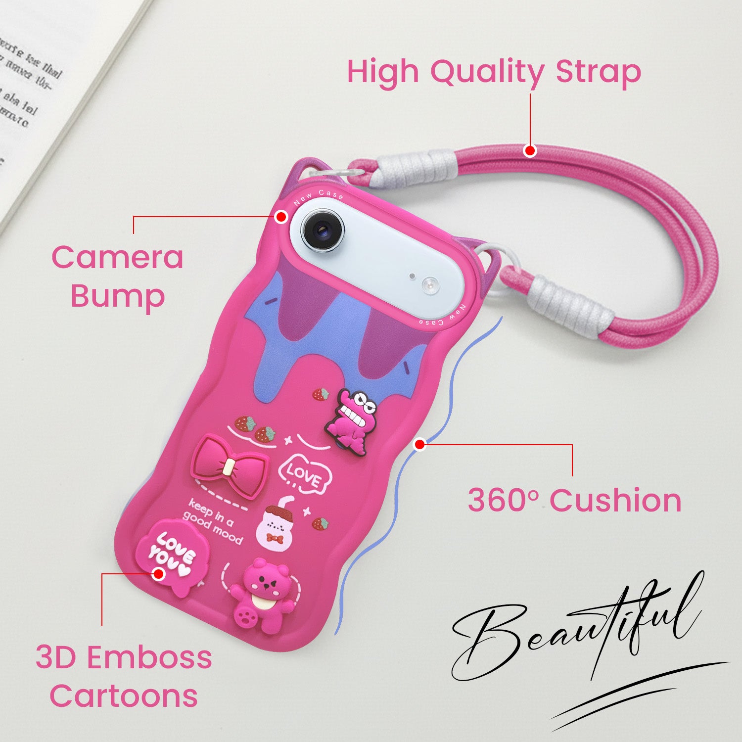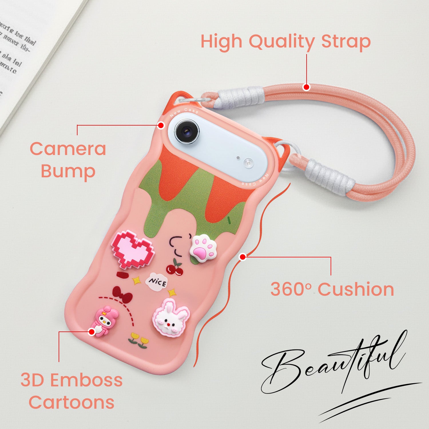 For Apple iPhone 17 Air Back Case Cover Strap (3D Embossed Figures | Strap Holder | 360* Soft Cushion with Camera Bump)