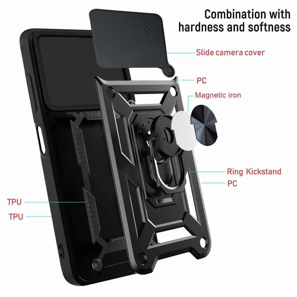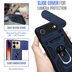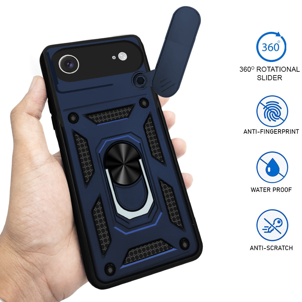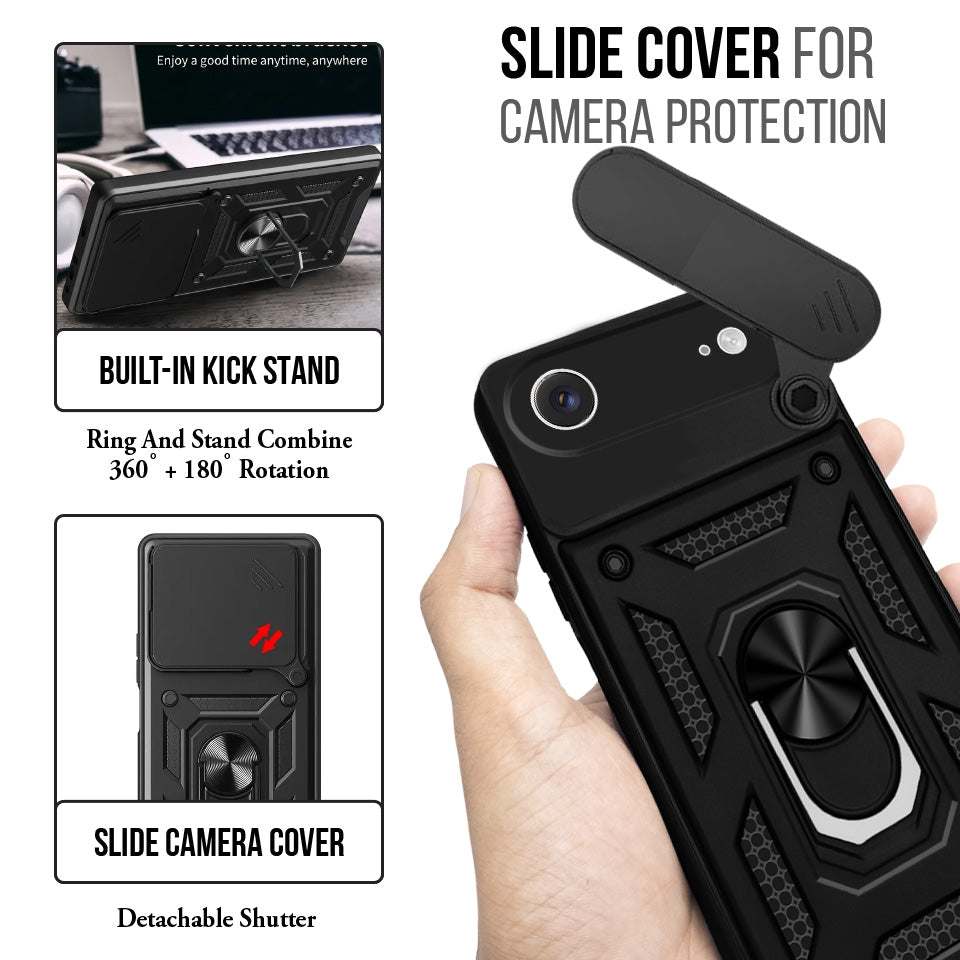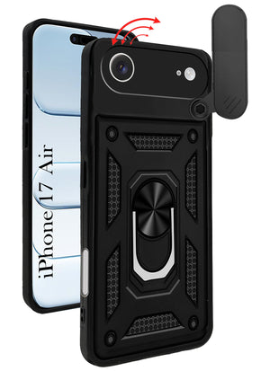 For Apple iPhone 17 Air Back Cover Case (Sliding Shutter Camera Protection | Polycarbonate |Ring Holder Kickstand)