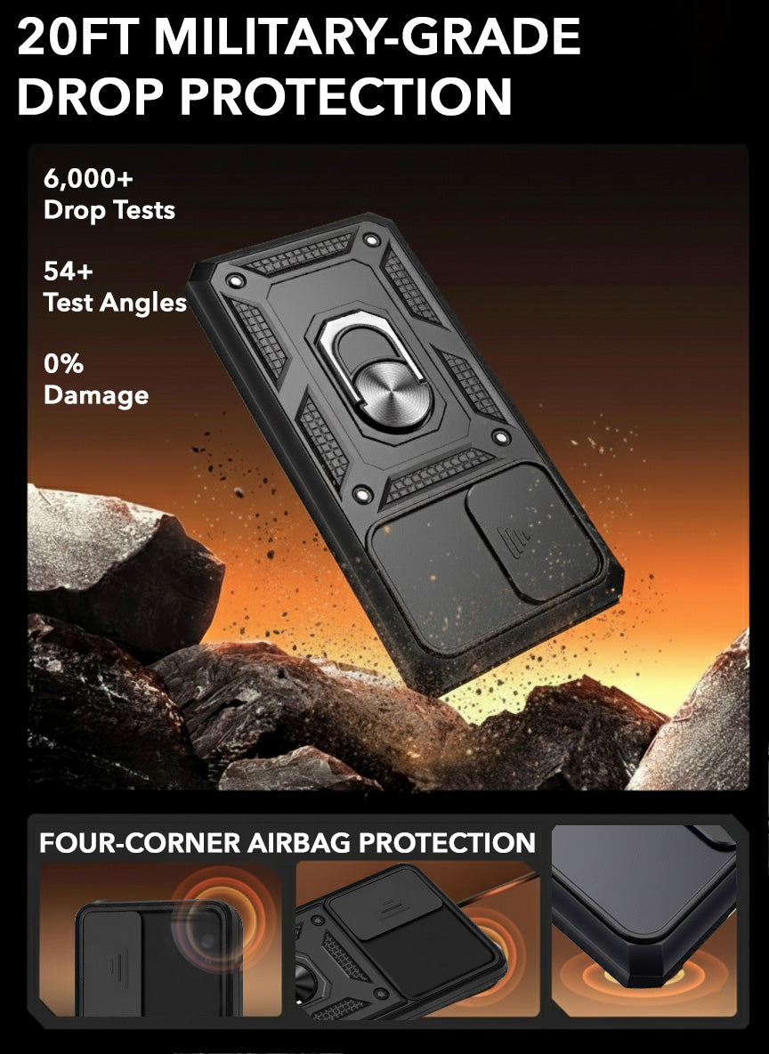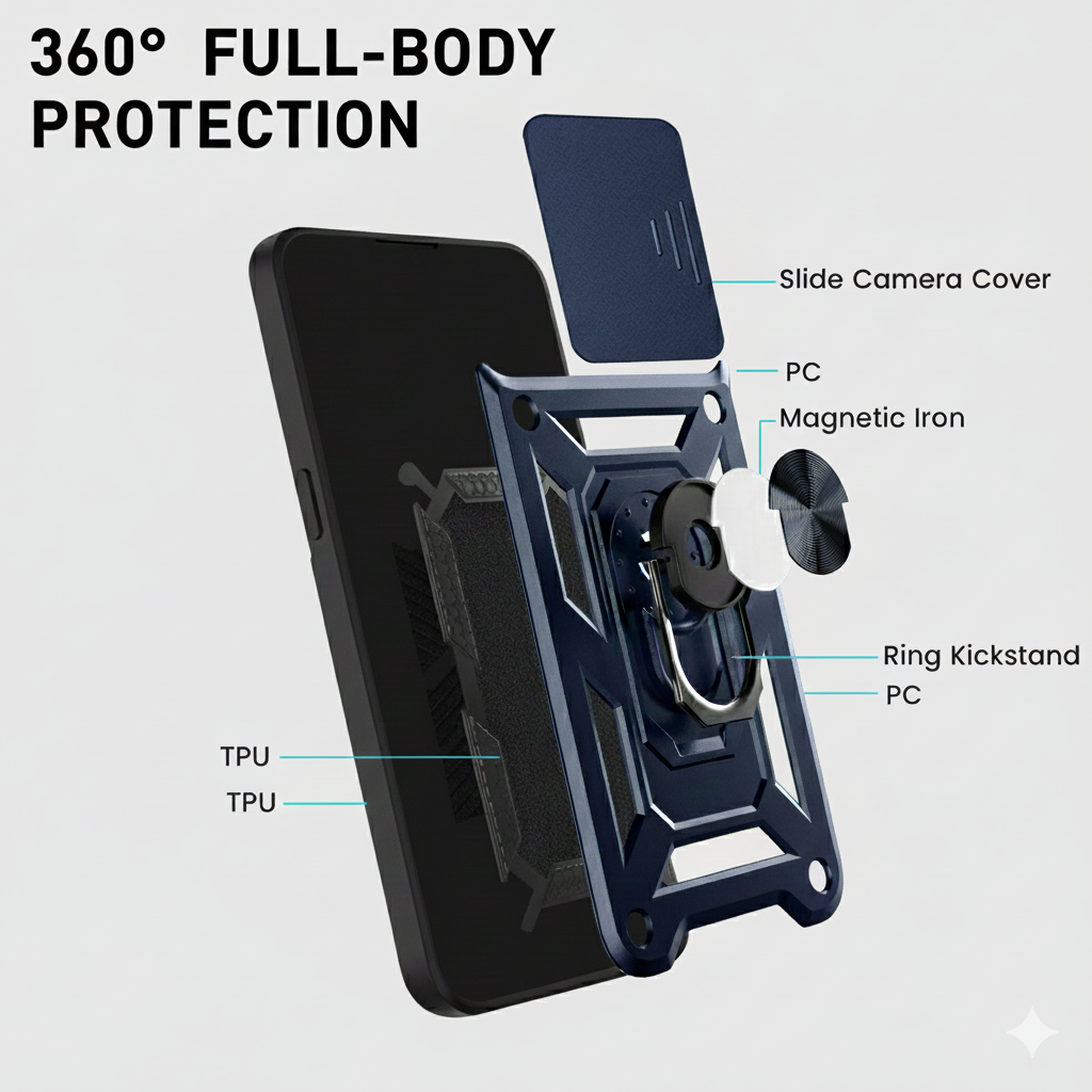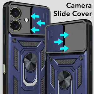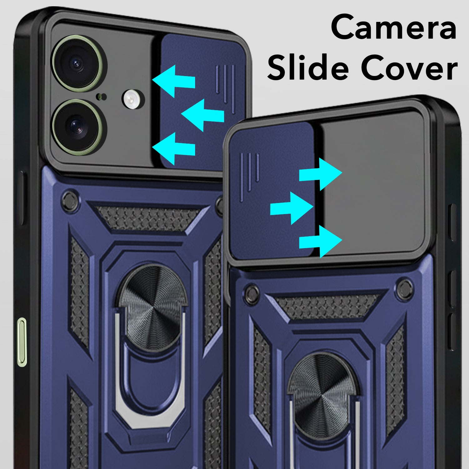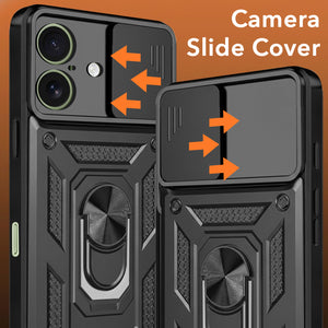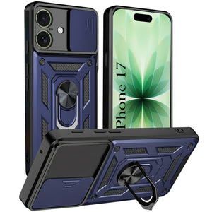 For Apple iPhone 17 Back Cover Case (Sliding Shutter Camera Protection | Polycarbonate |Ring Holder Kickstand)