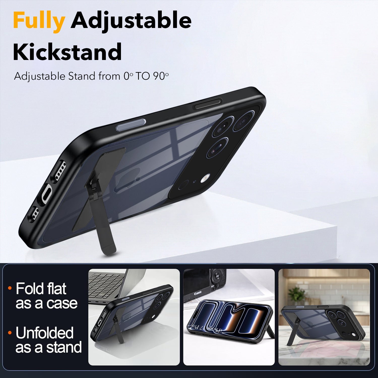 For Apple iPhone 17 Pro Back Cover Case (Built-in Stand | Lifetime Anti Yellow | Kickstand Shockproof | Camera Protection | MagSafe Compatible)