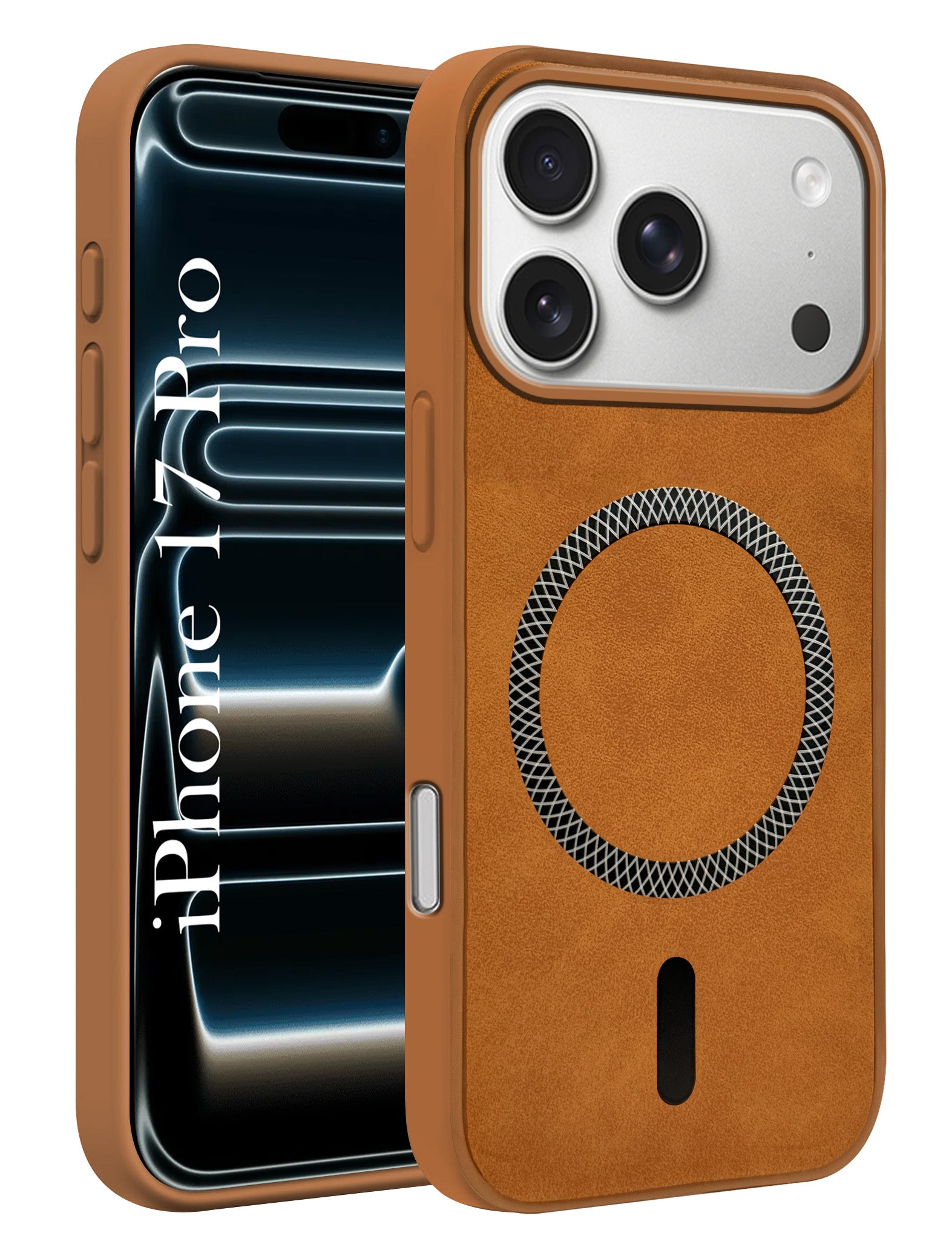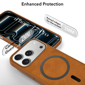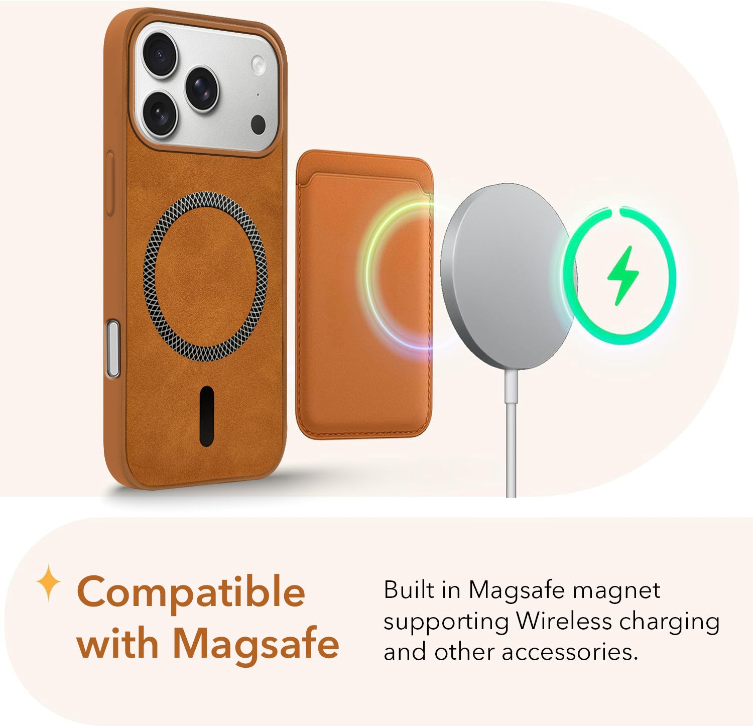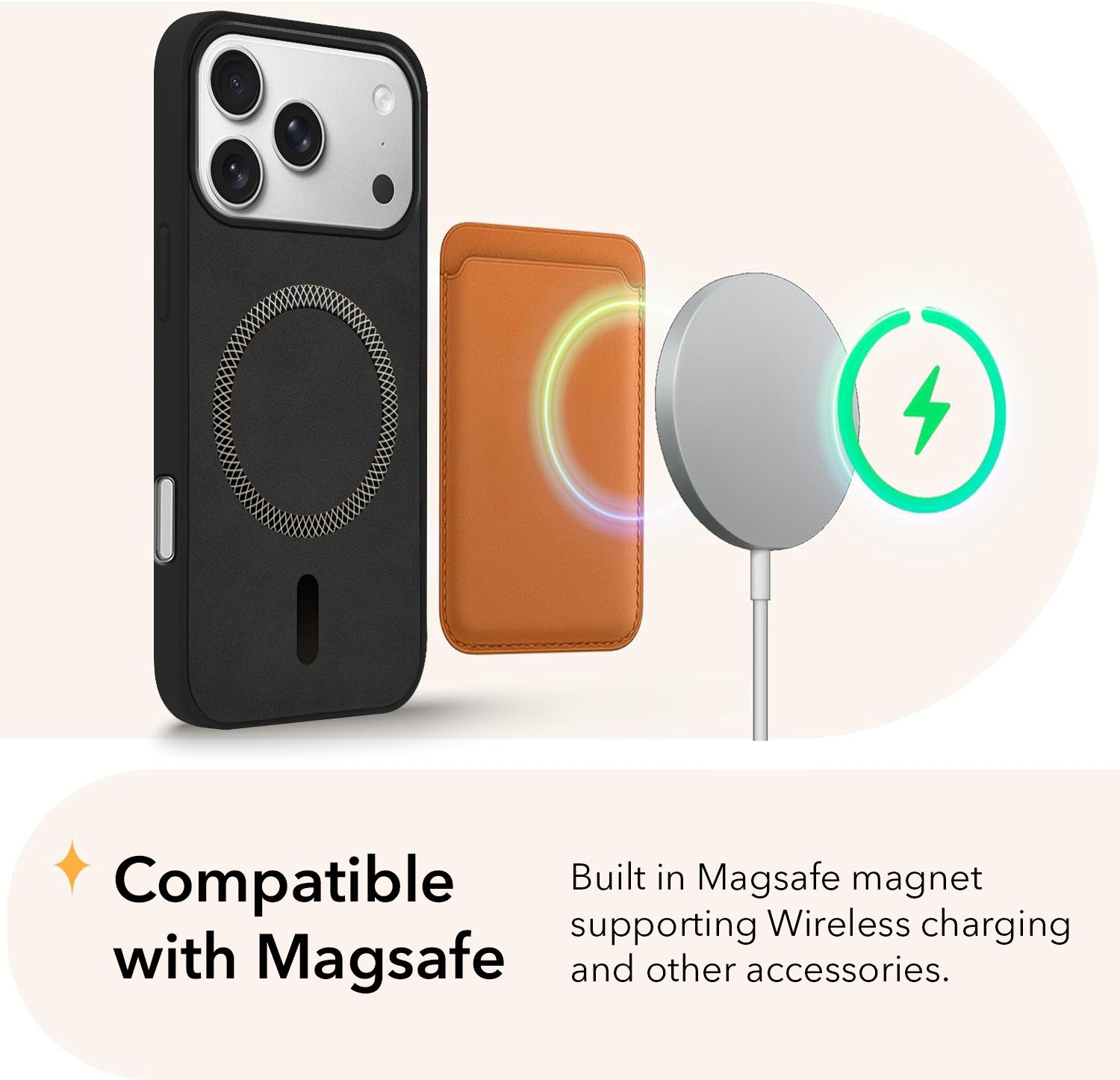For Apple iPhone 17 Pro Back Cover Case Leather Finish (MagSafe Compatible Wireless Charging | Soft Touch | Camera Bump Protection)