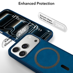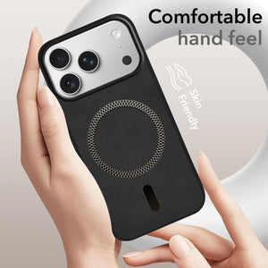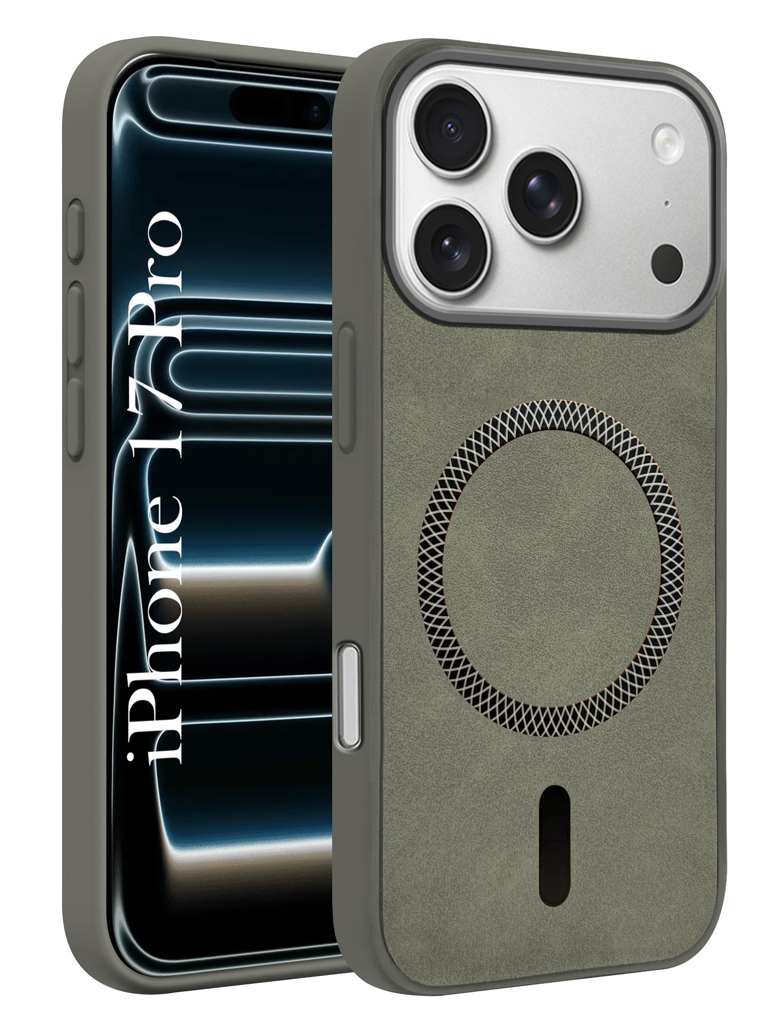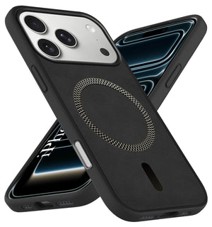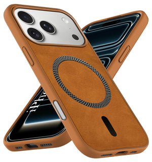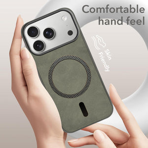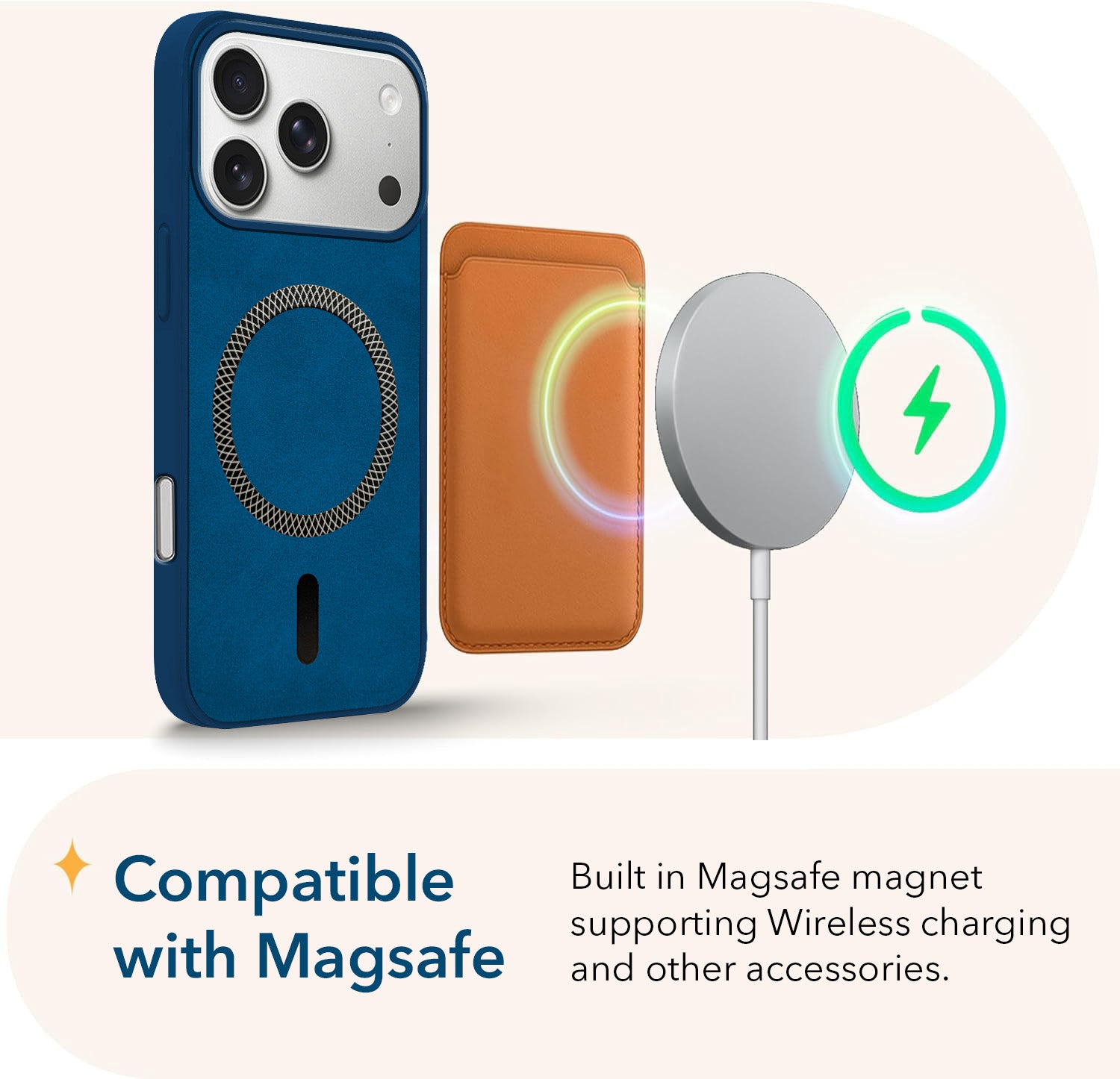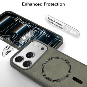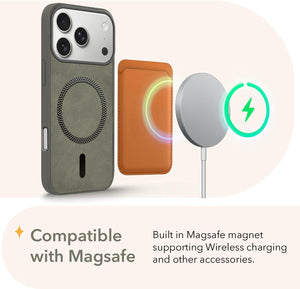 For Apple iPhone 17 Pro Back Cover Case Leather Finish (MagSafe Compatible Wireless Charging | Soft Touch | Camera Bump Protection)