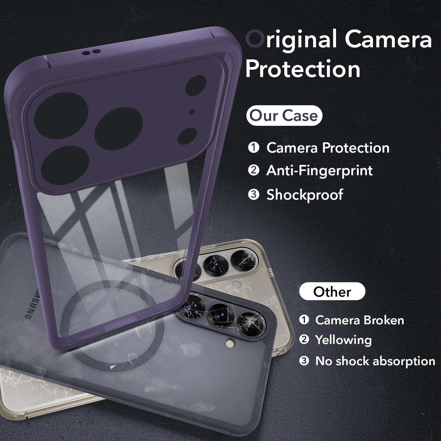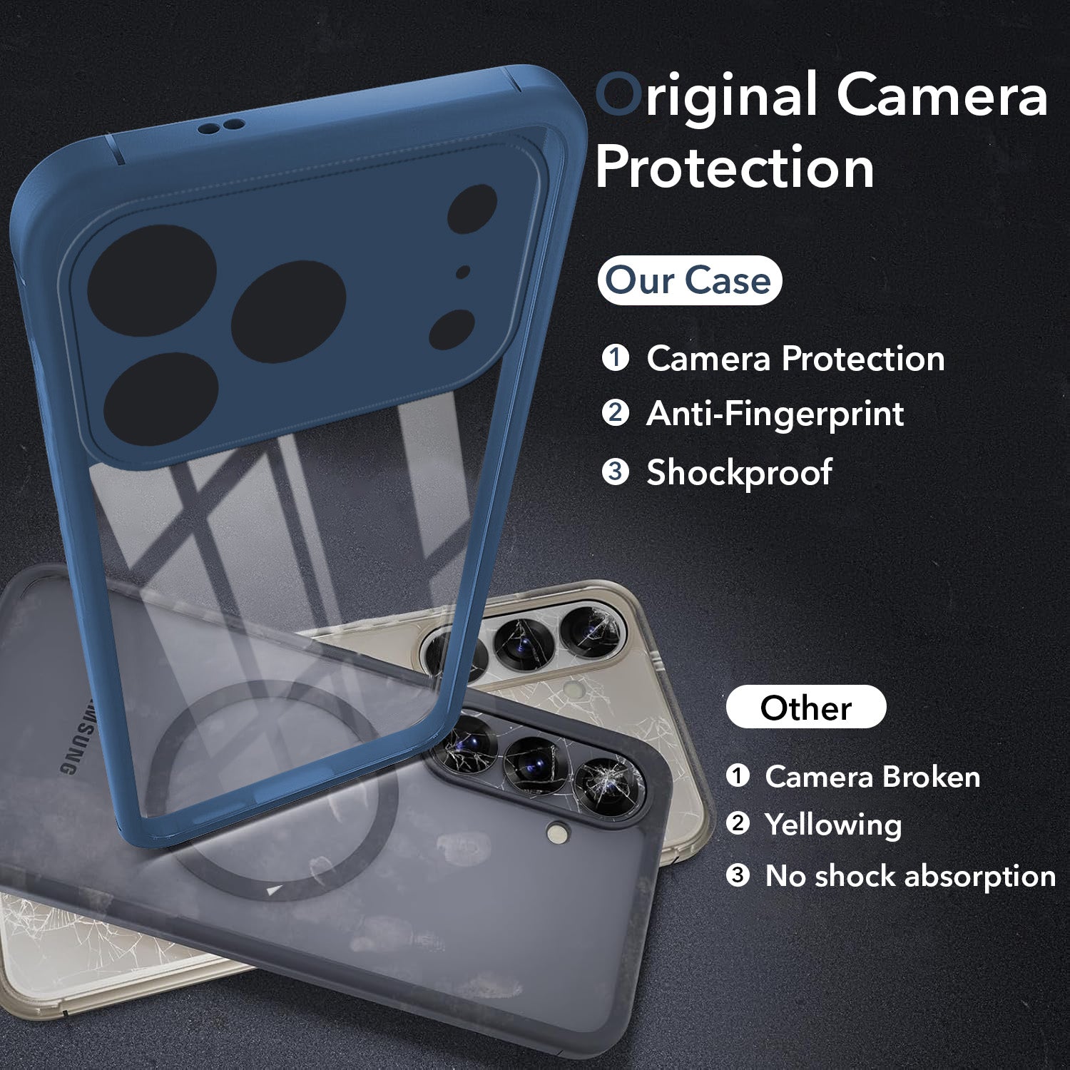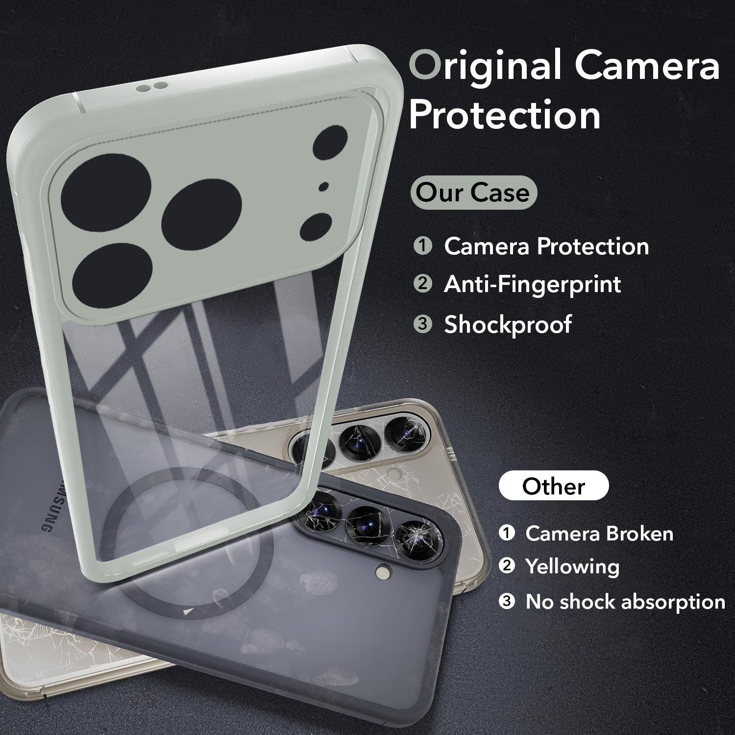 100x Drop Tested. A 0.5mm raised camera bezel and shock-absorbing corners protect your lens from direct concrete impact.