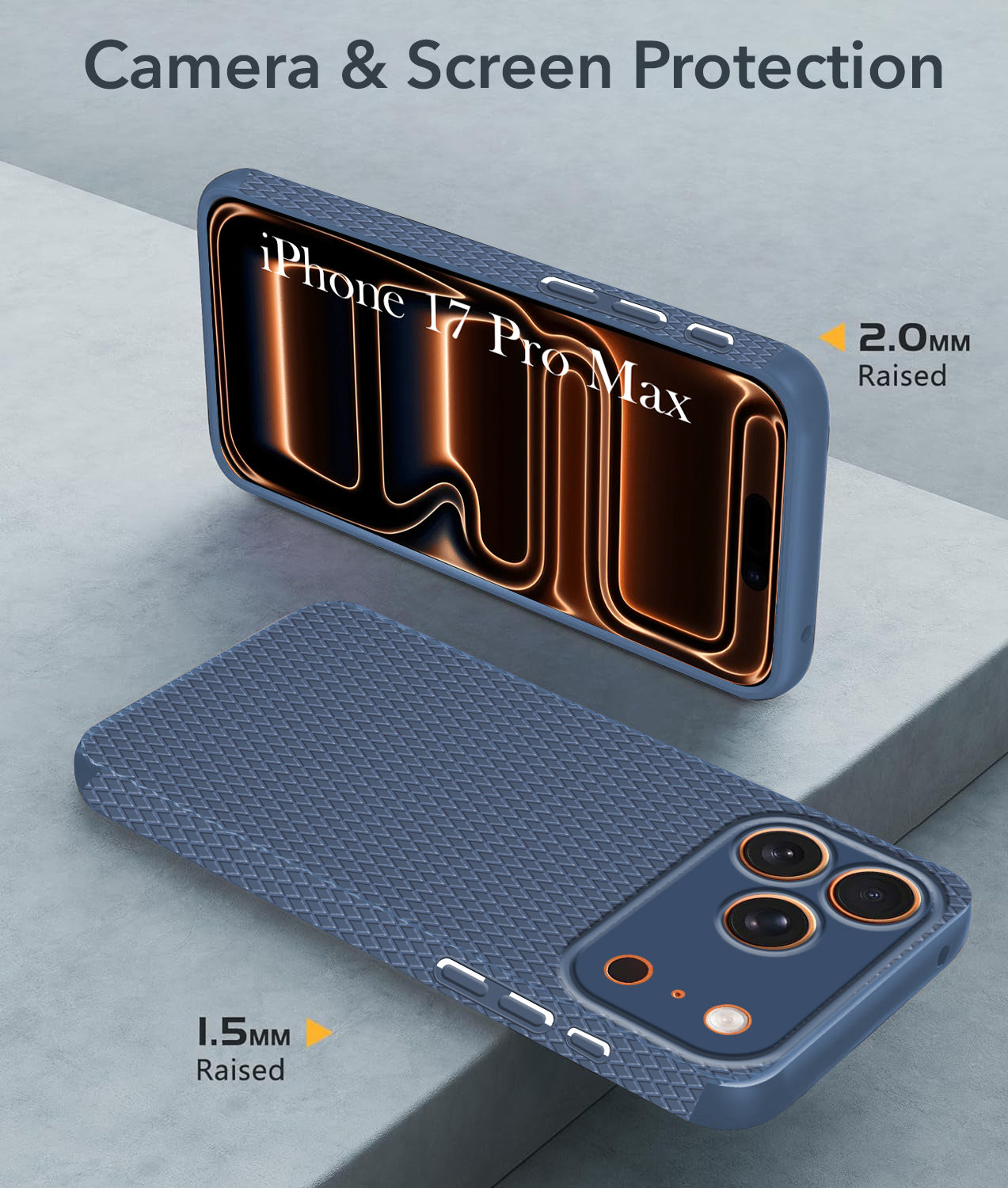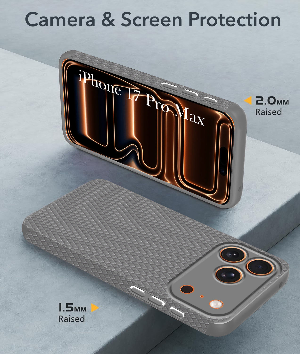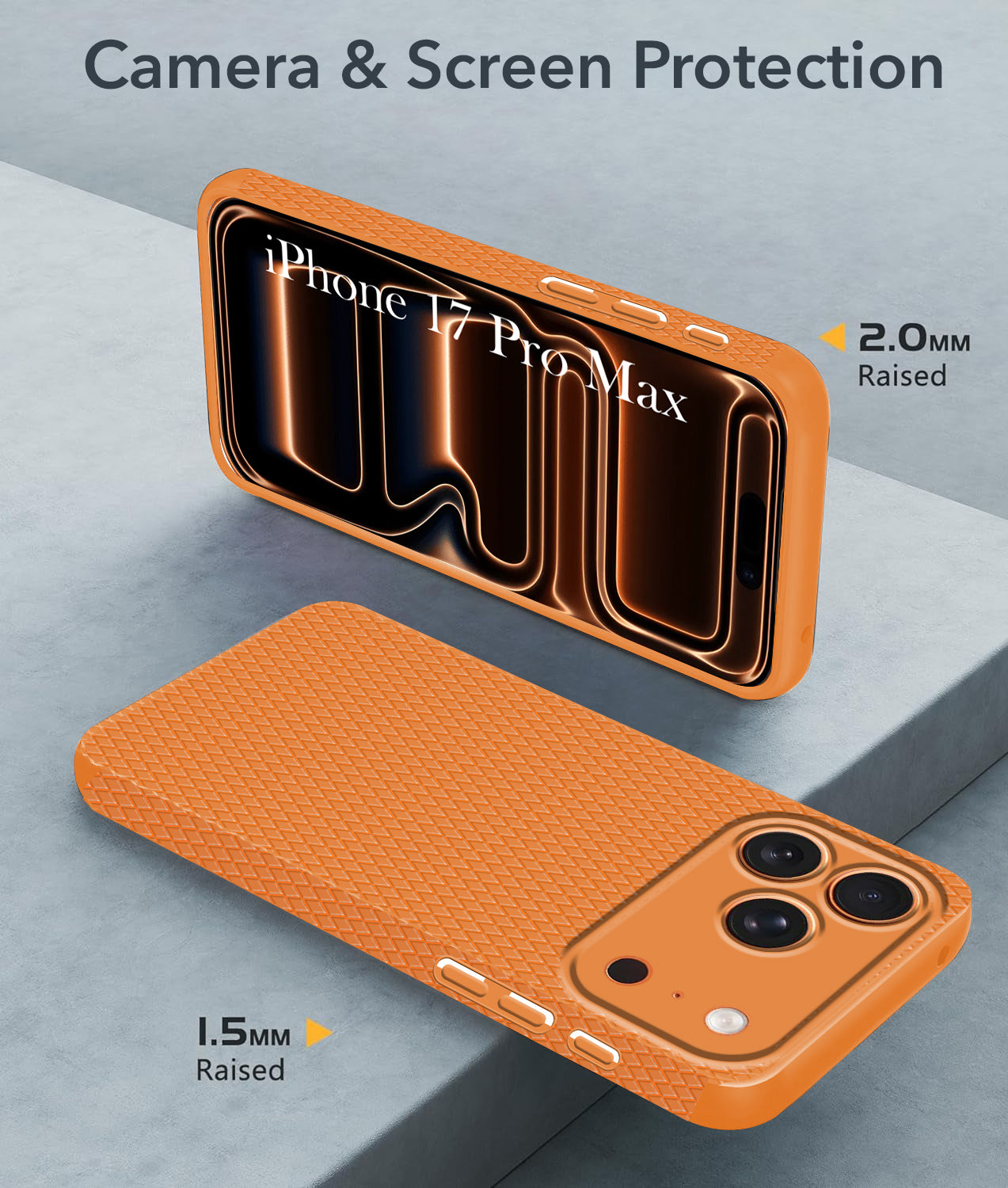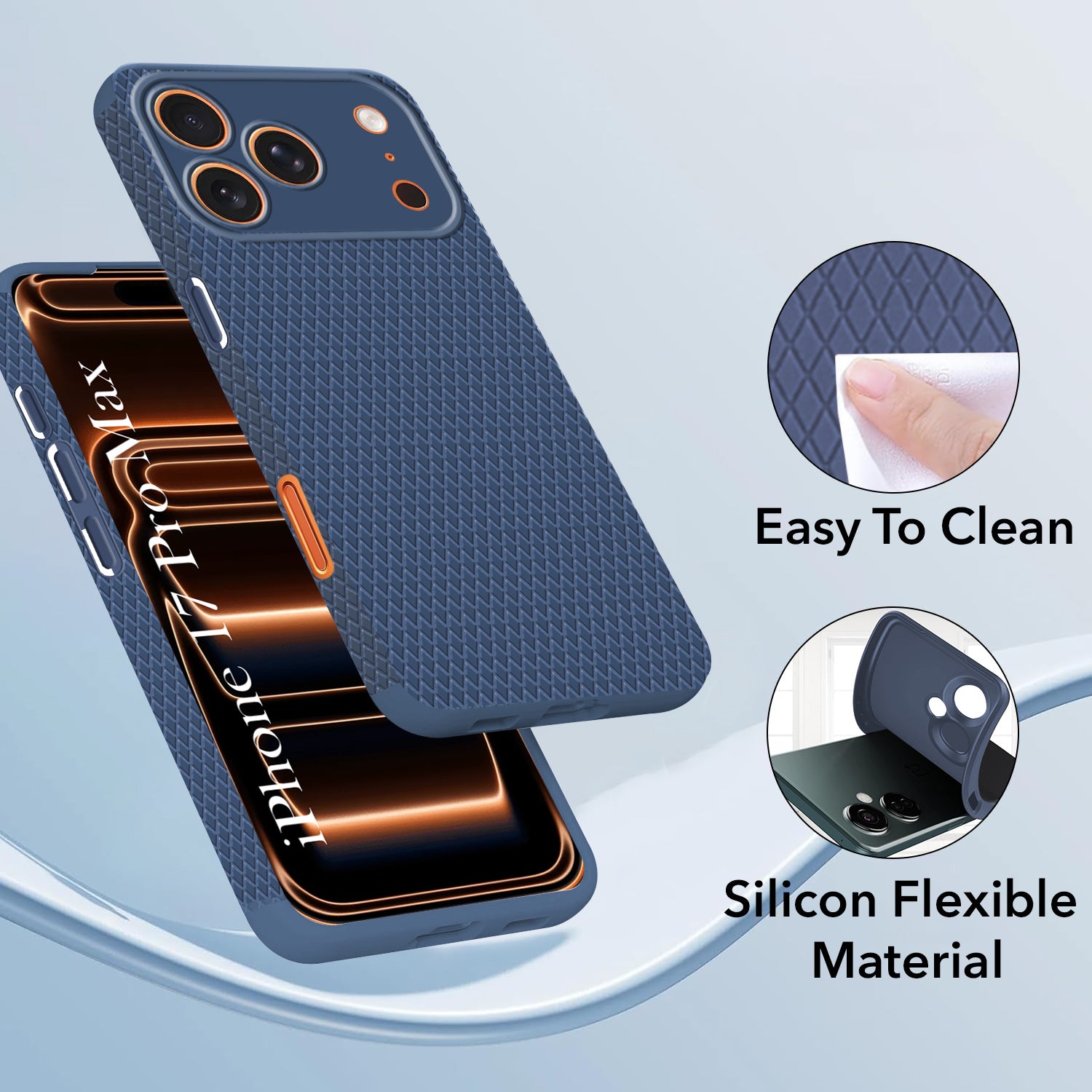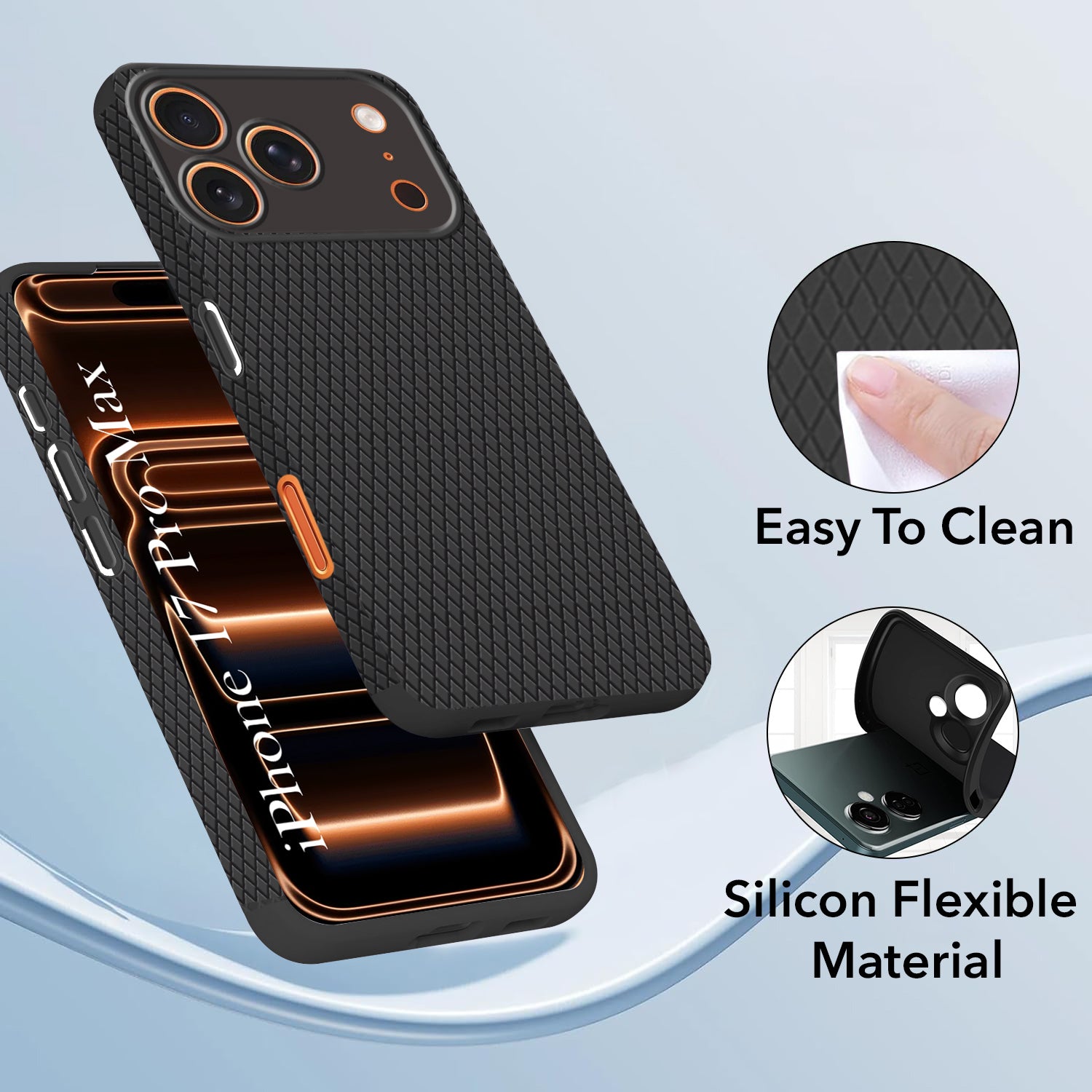 For Apple iPhone 17 Pro Max Back Cover Case (Camera Protection | Side Grip Texture | Soft and Flexible)