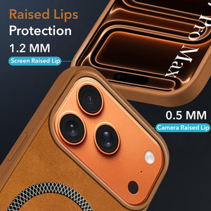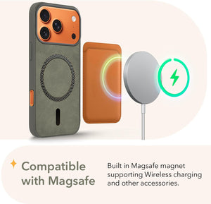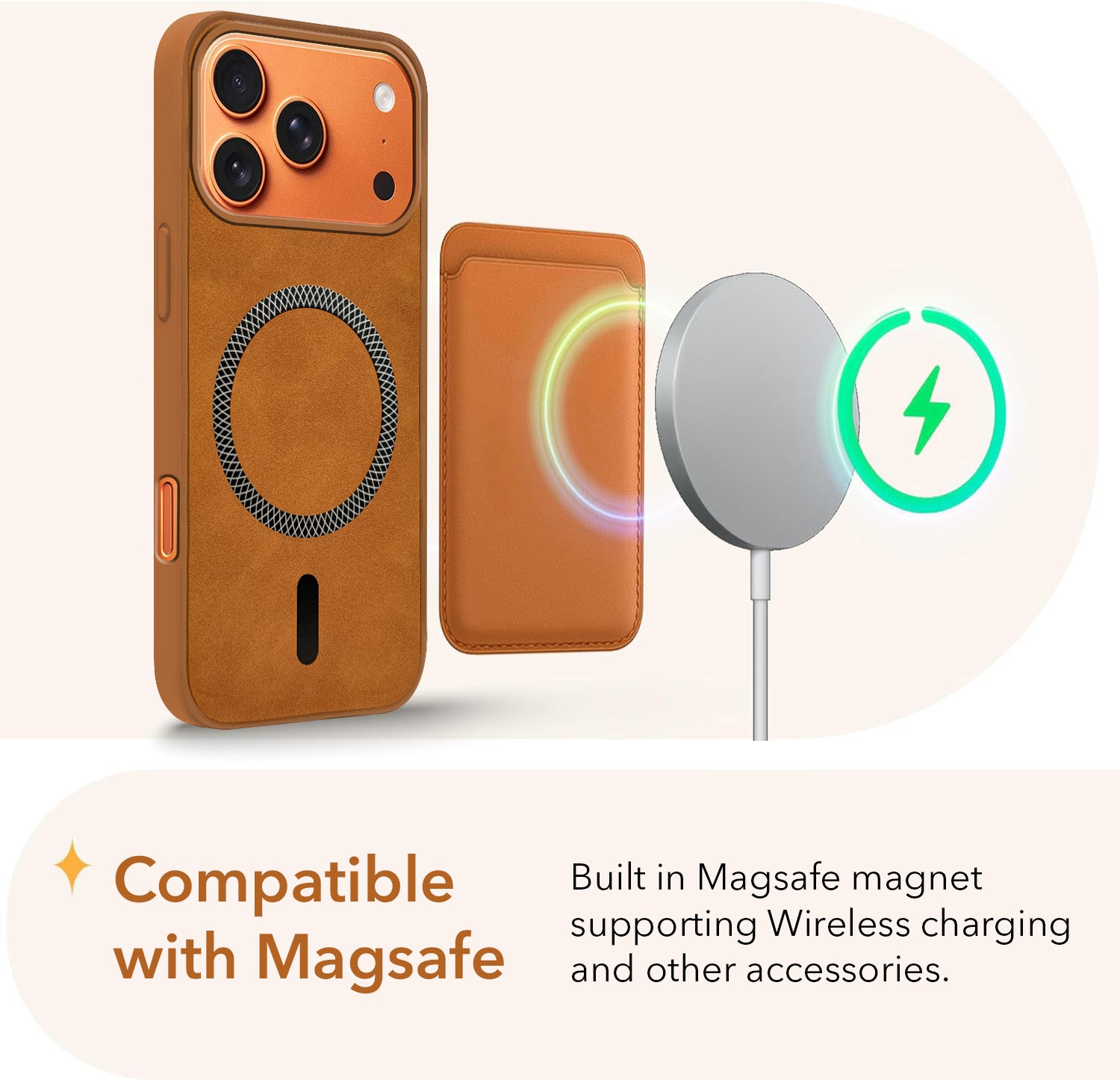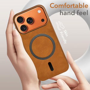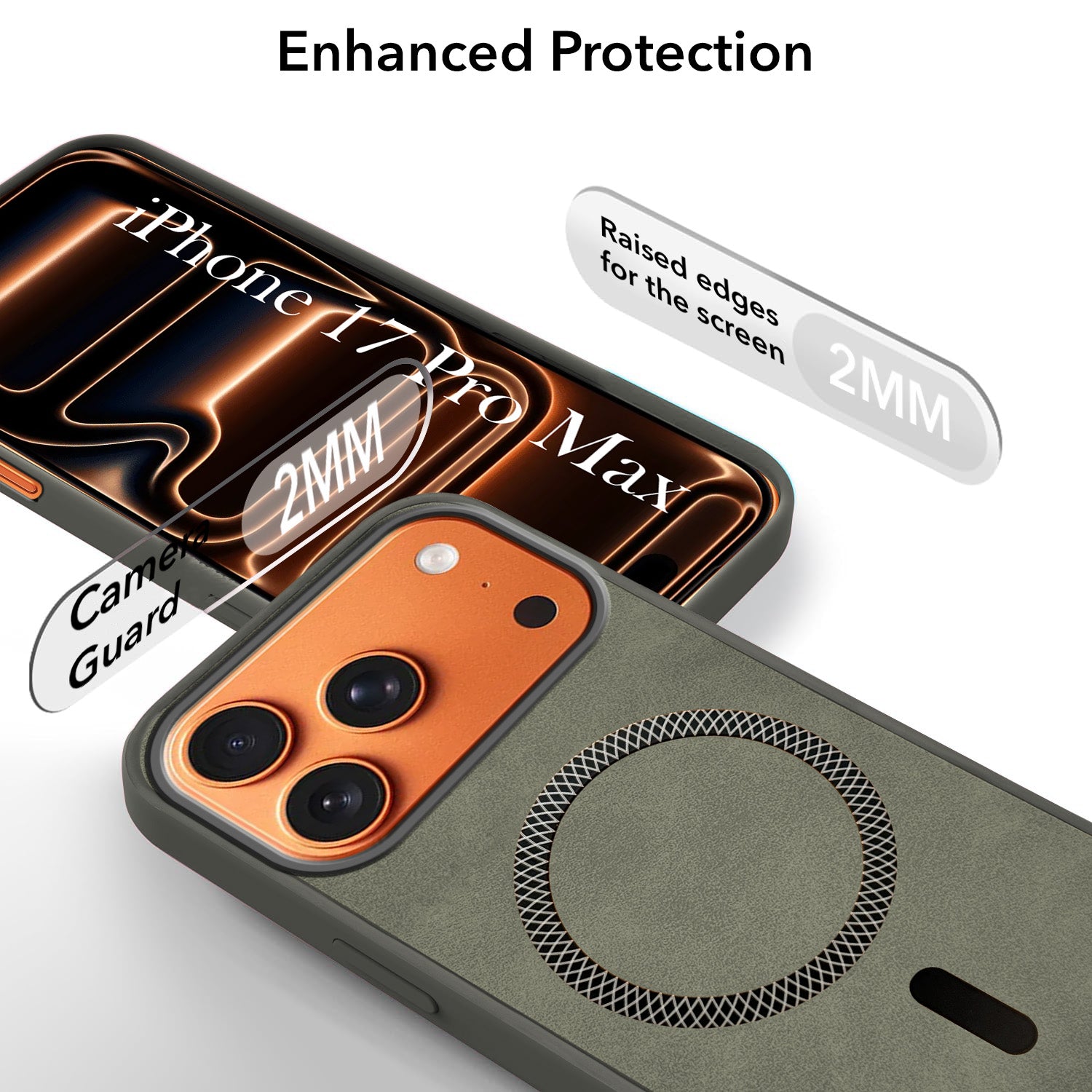 For Apple iPhone 17 Pro Max Back Cover Case Leather Finish (MagSafe Compatible Wireless Charging | Soft Touch | Camera Bump Protection)