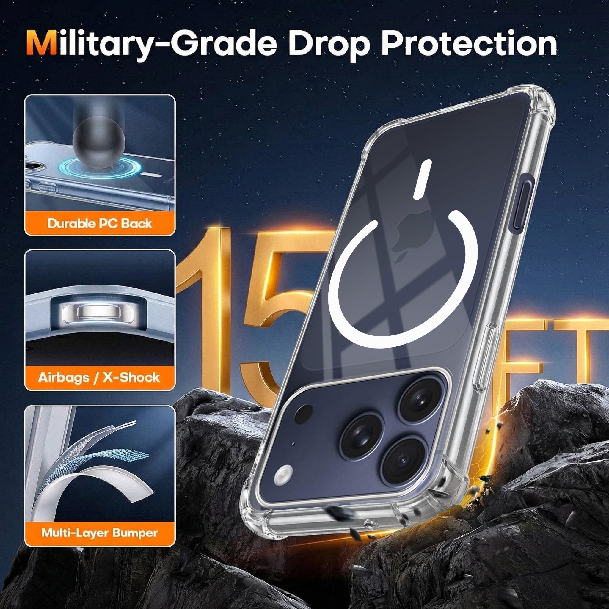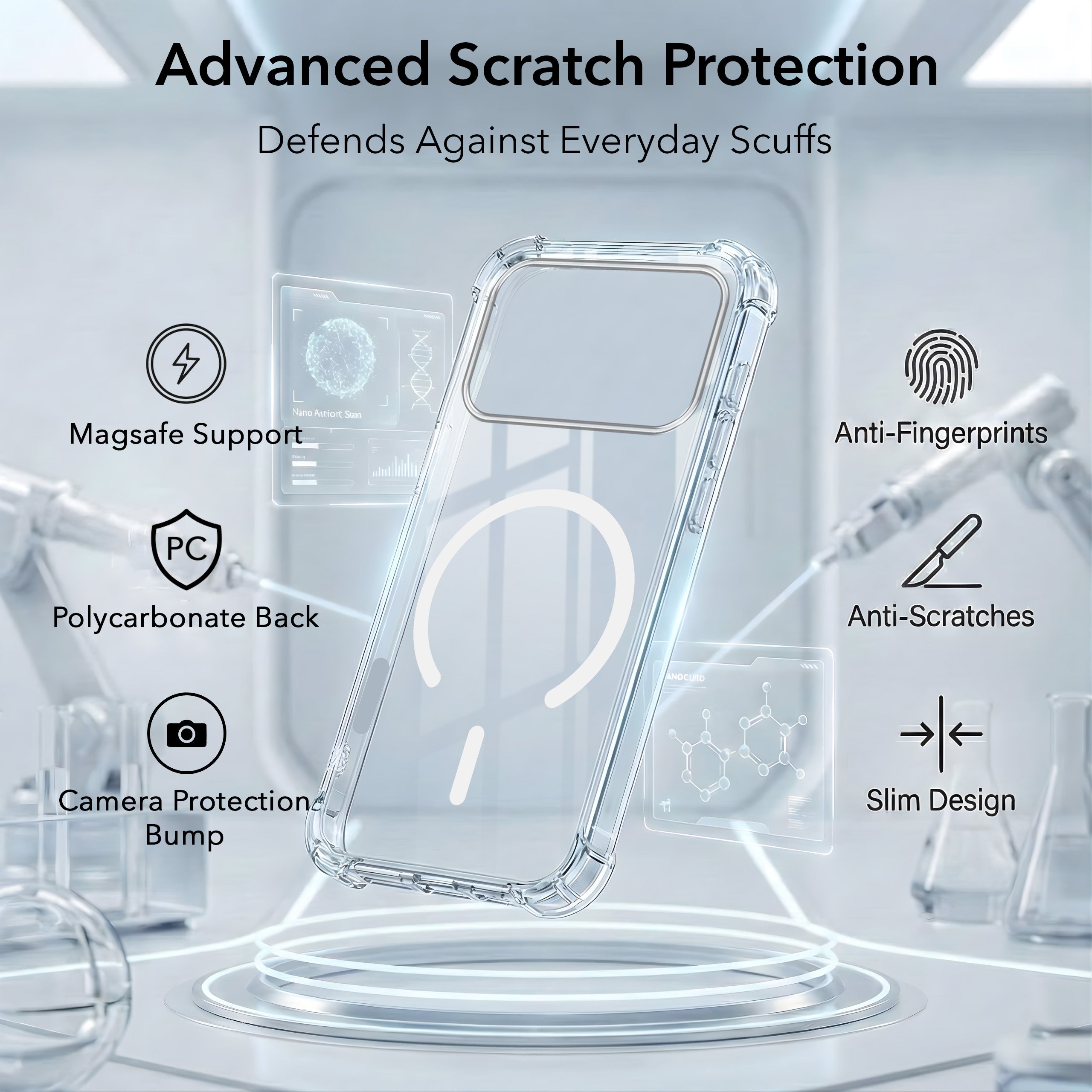 For Apple iPhone 17 Pro Max Back Cover Shockproof Crystal-Clear (Magsafe Wireless Support | Drop & Camera Protection | Hard Polycarbonate)