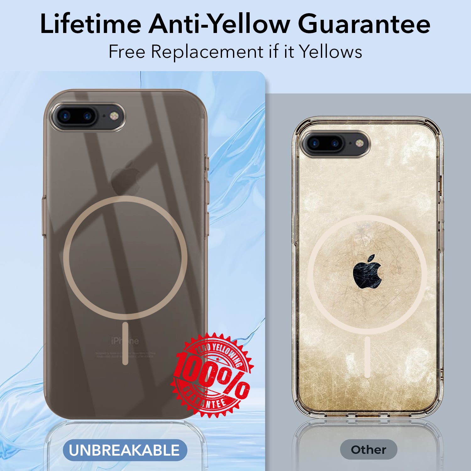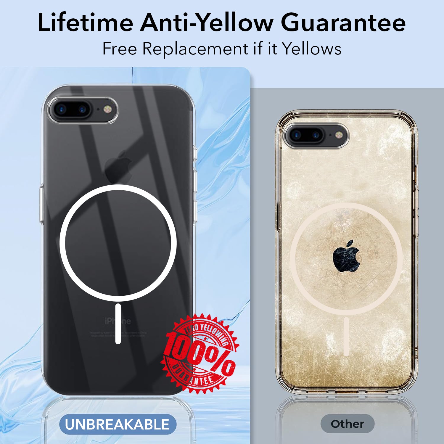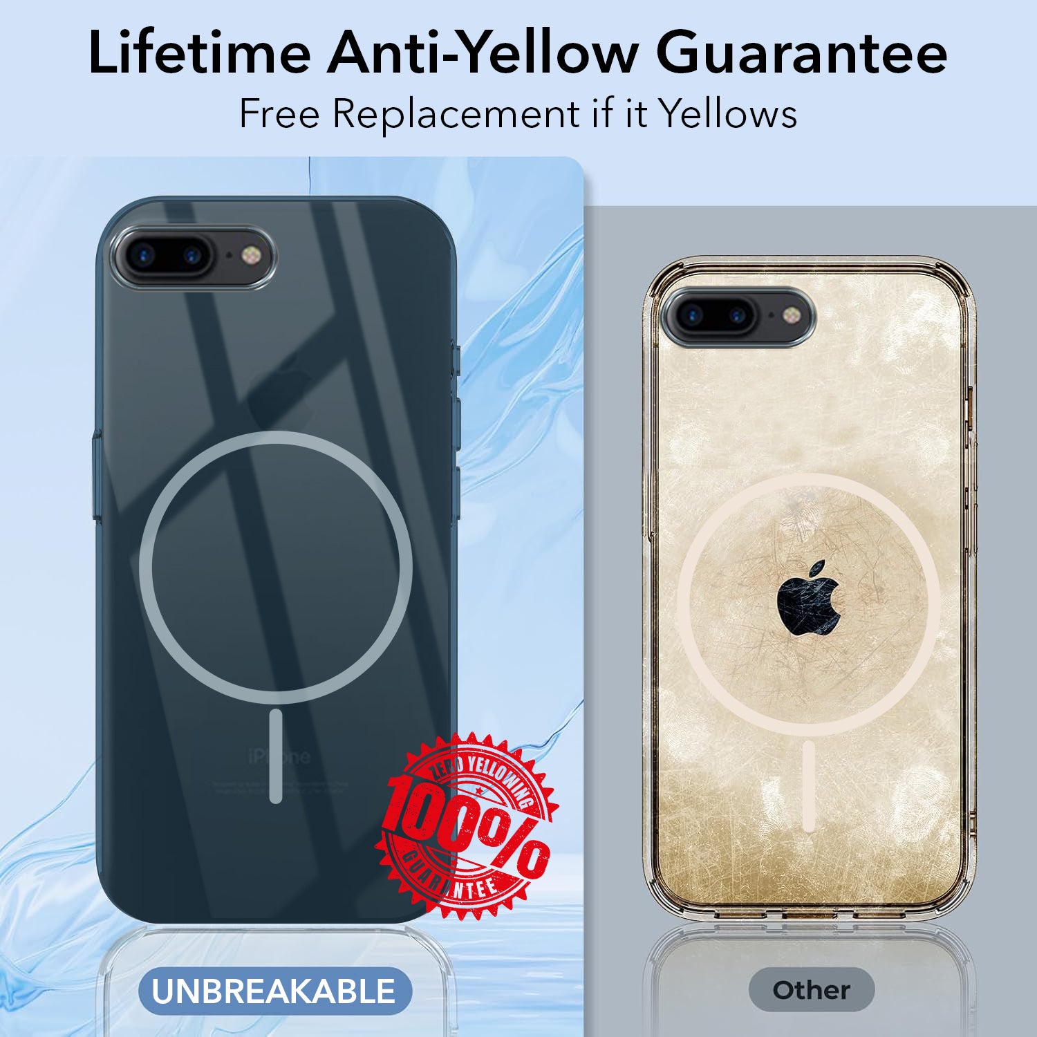 For Apple iPhone 7 Plus | iPhone 8 Plus Back Cover Case (Crystal Clear Case | MagSafe Wireless Charging Support | Hard Anti Yellow | Camera Protection Bump)