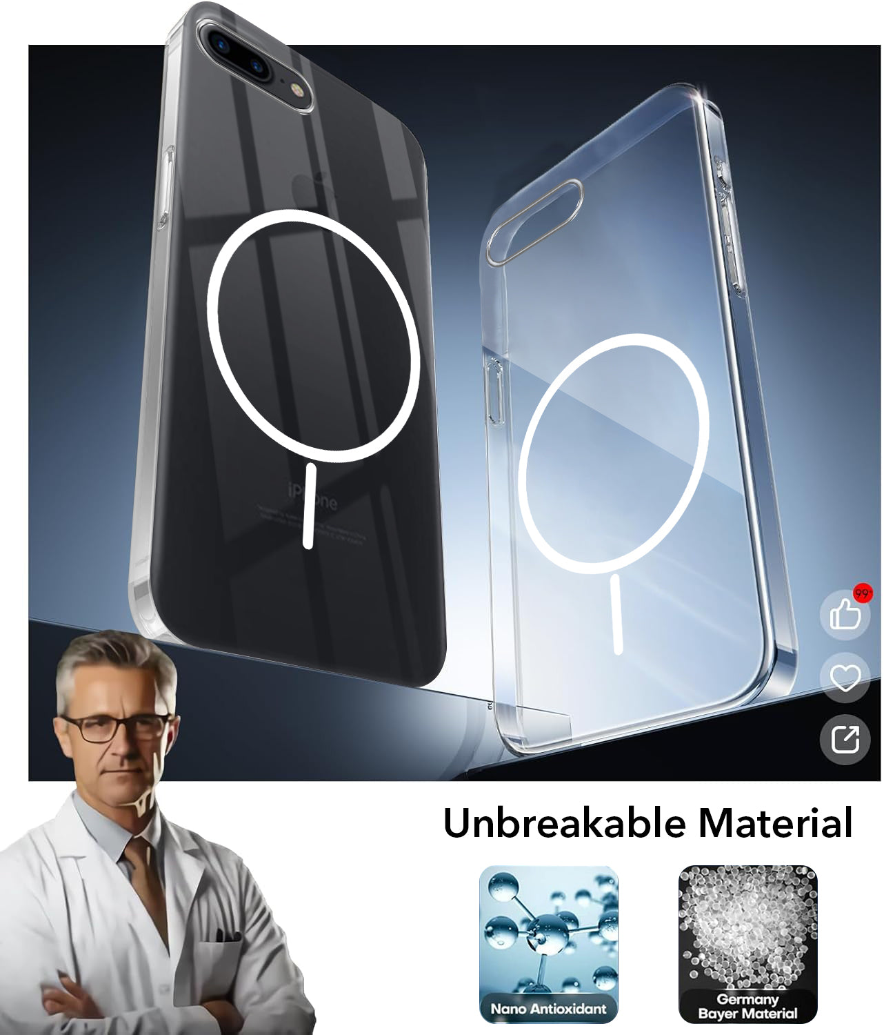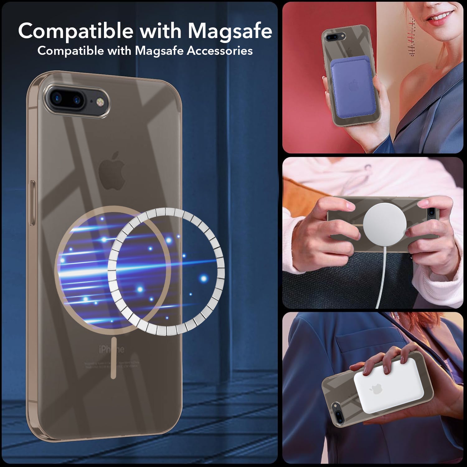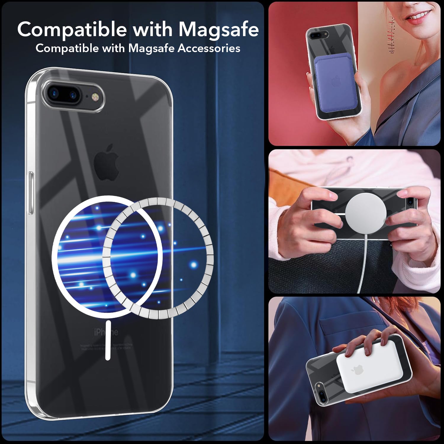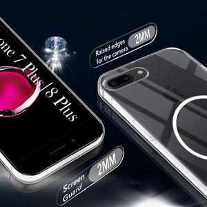 For Apple iPhone 7 Plus | iPhone 8 Plus Back Cover Case (Crystal Clear Case | MagSafe Wireless Charging Support | Hard Anti Yellow | Camera Protection Bump)