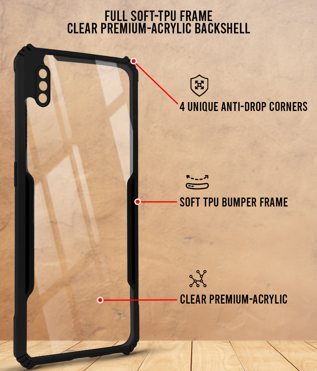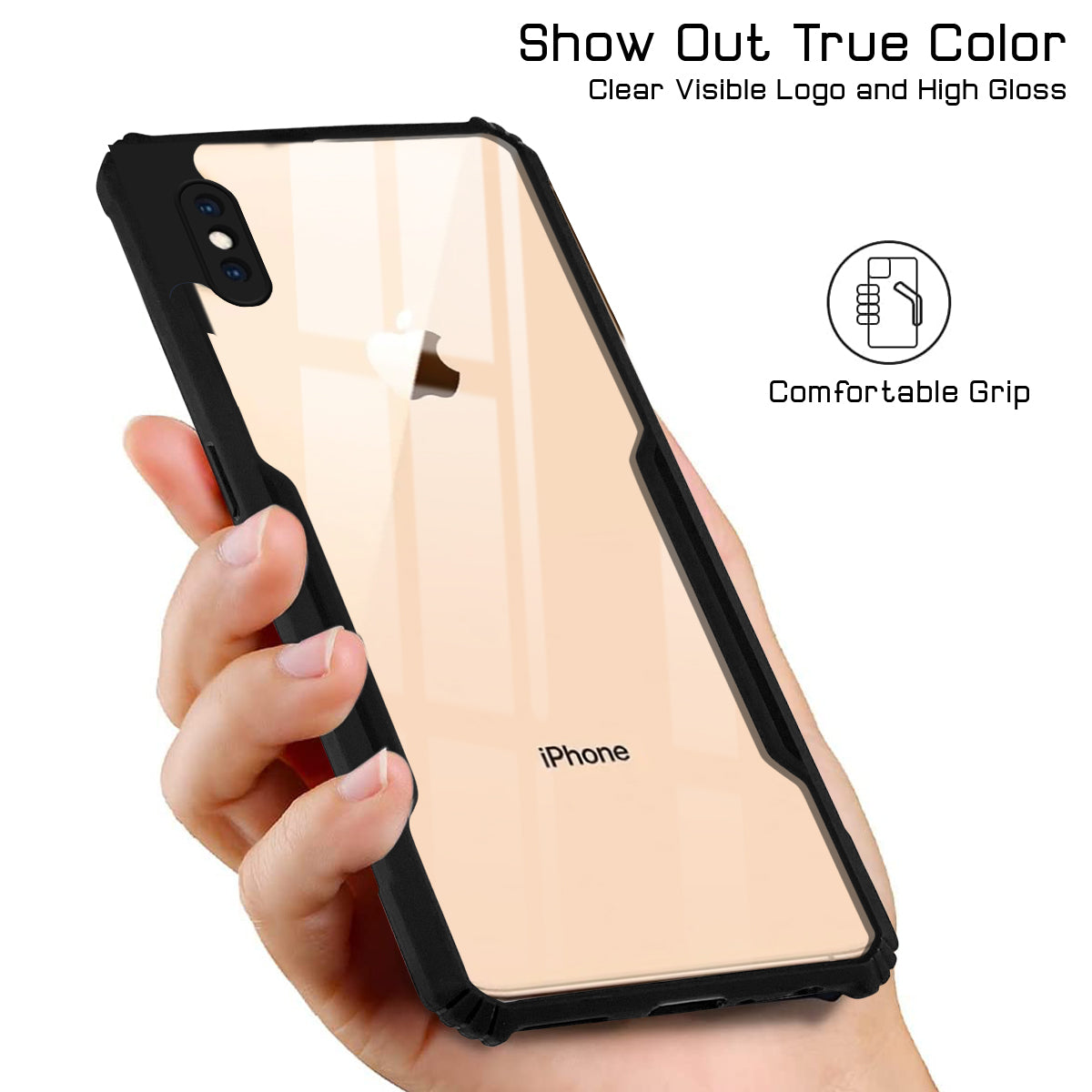 For Apple iPhone Xs Max Back Cover Case ( Shockproof with Polycarbonate Clear Panel | Professional Black)