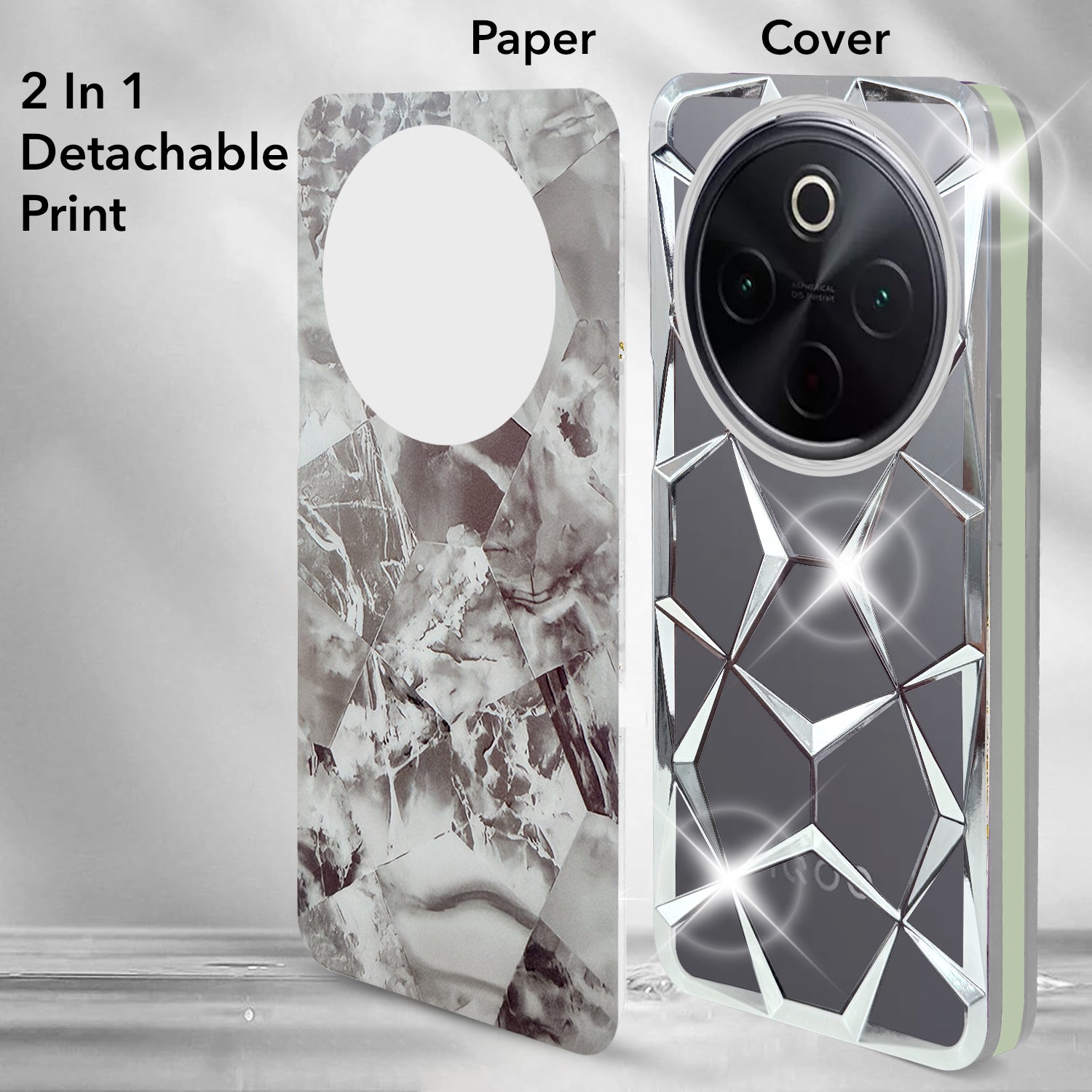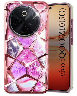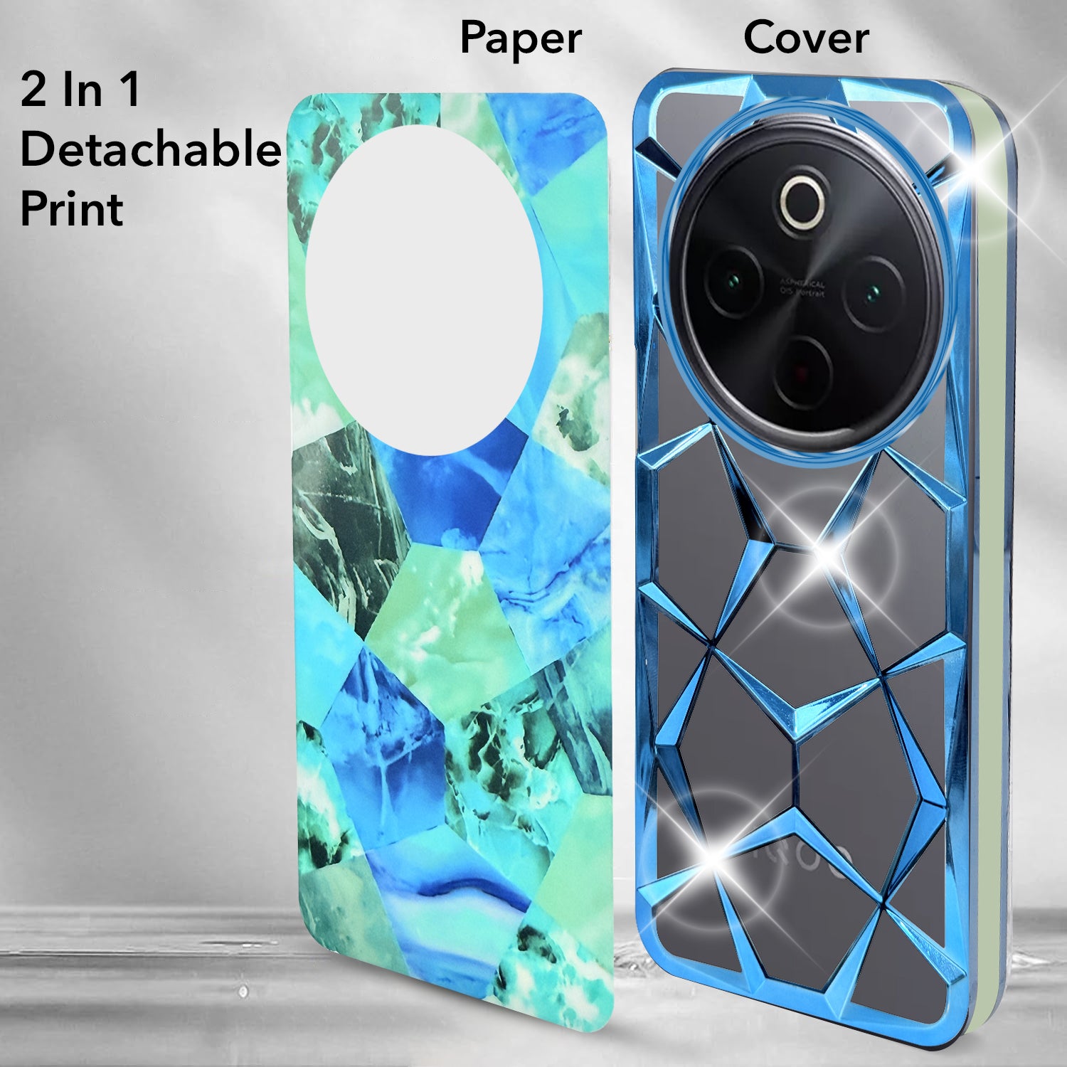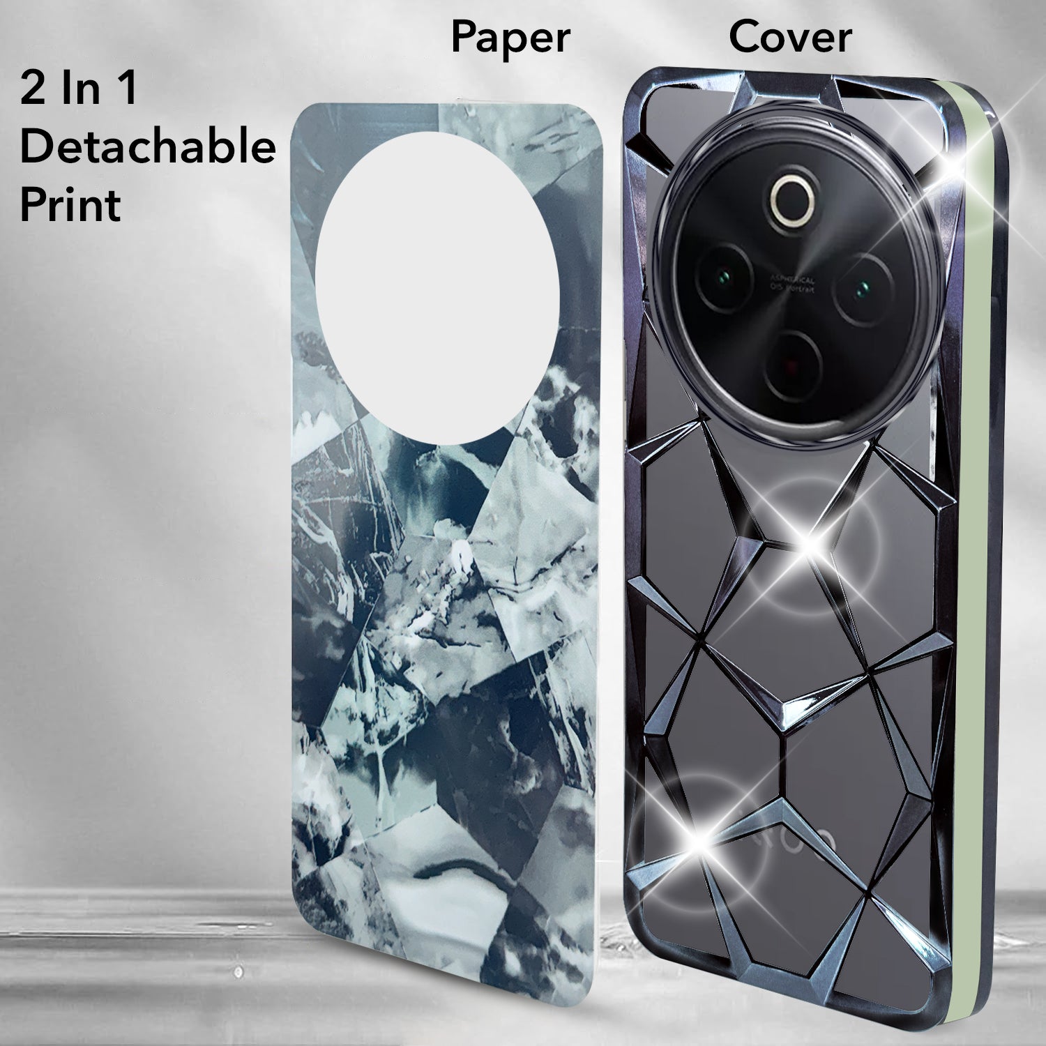 For Vivo iQOO Z10 Back Cover Case ( Dual Design Glitter Sparkle and Detachable Diamond Print Case | Soft and Flexible)