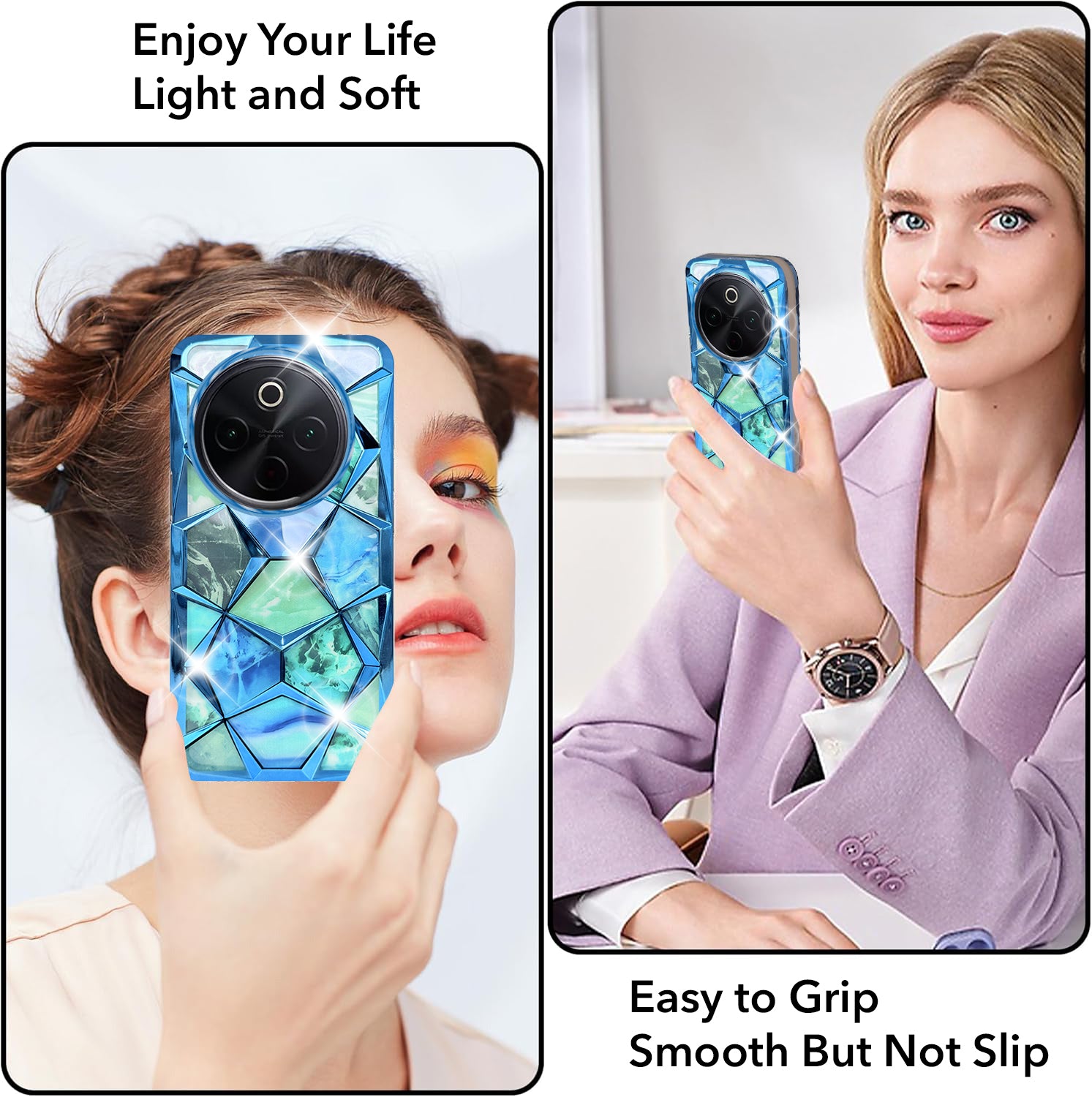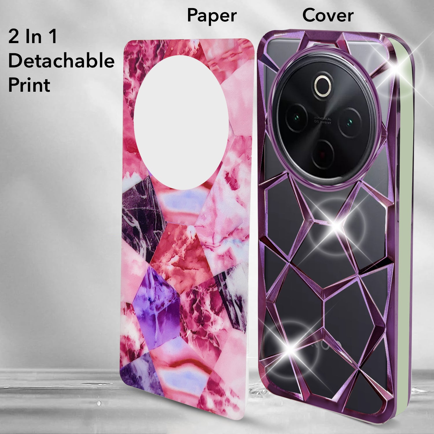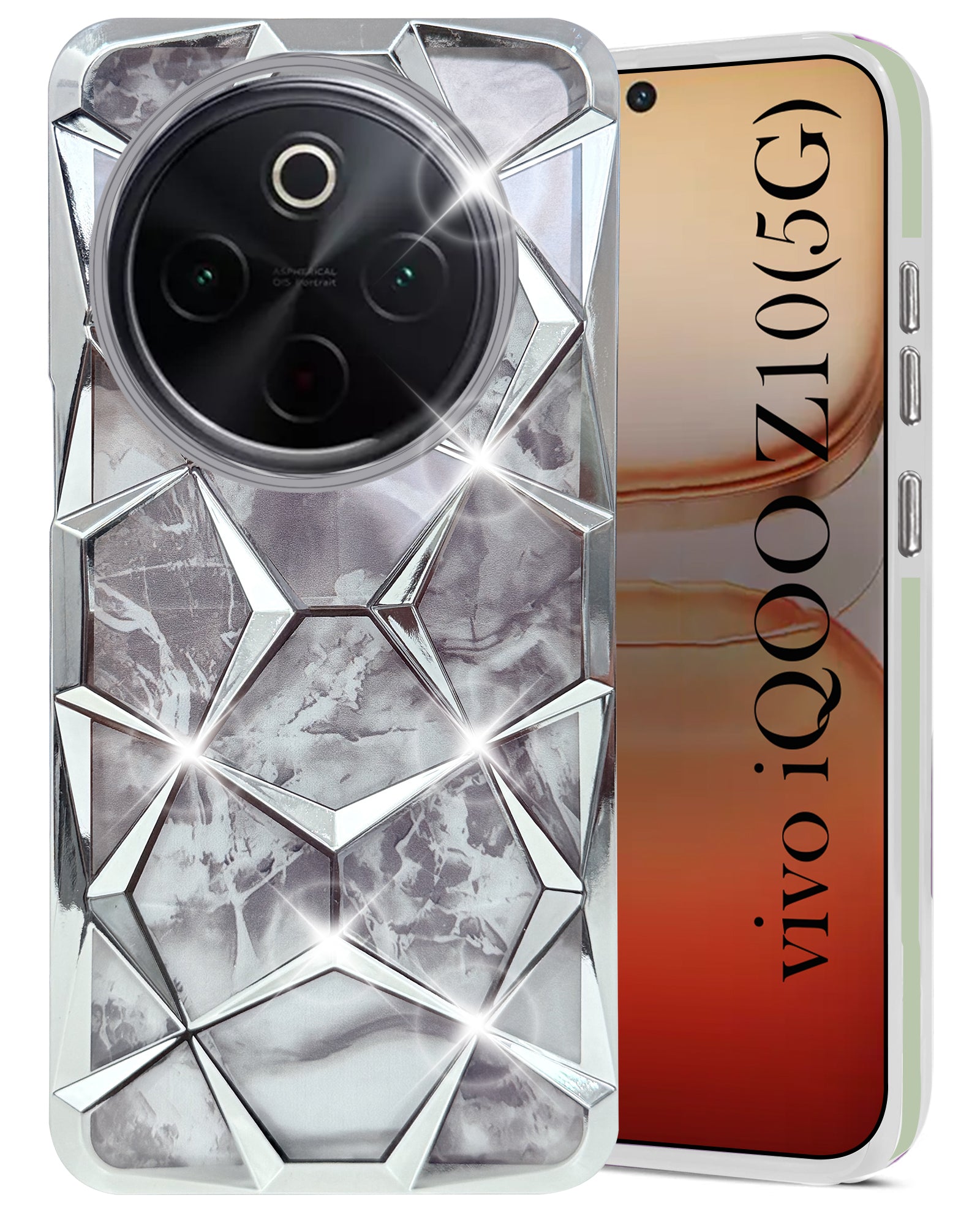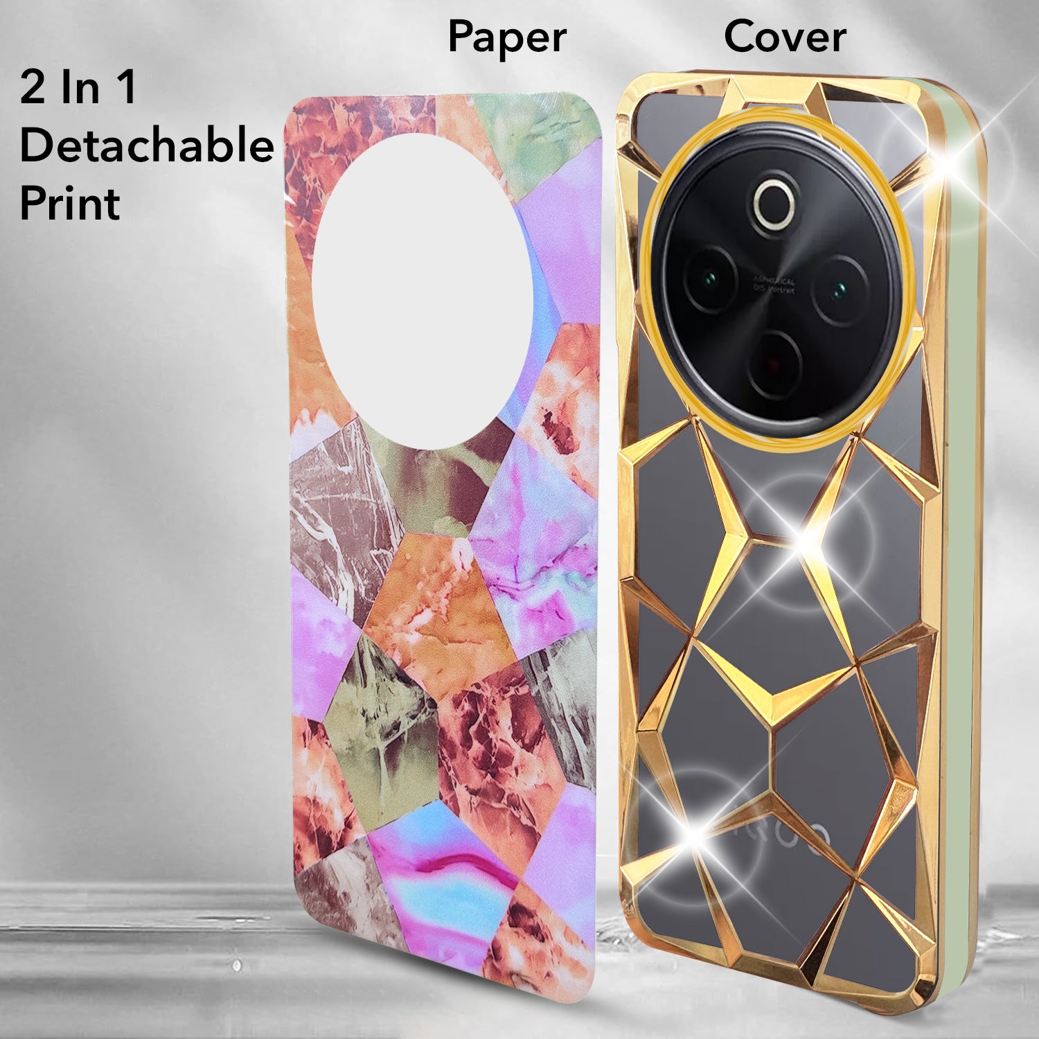 For Vivo iQOO Z10 Back Cover Case ( Dual Design Glitter Sparkle and Detachable Diamond Print Case | Soft and Flexible)