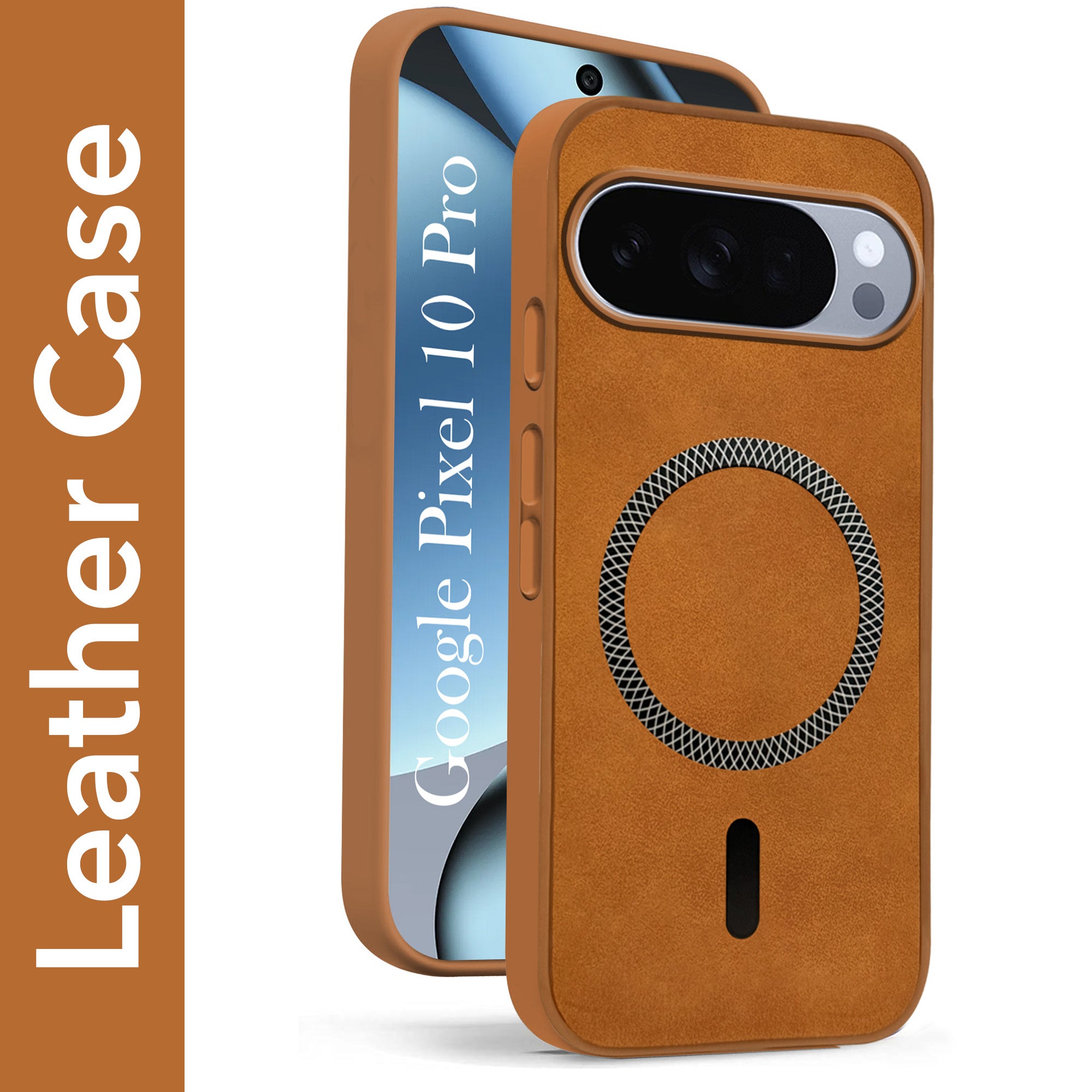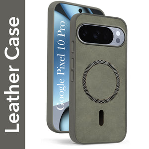 For Google Pixel 10 Pro Back Cover Case Leather Finish (MagSafe Compatible Wireless Charging | Soft Touch | Camera Bump Protection)