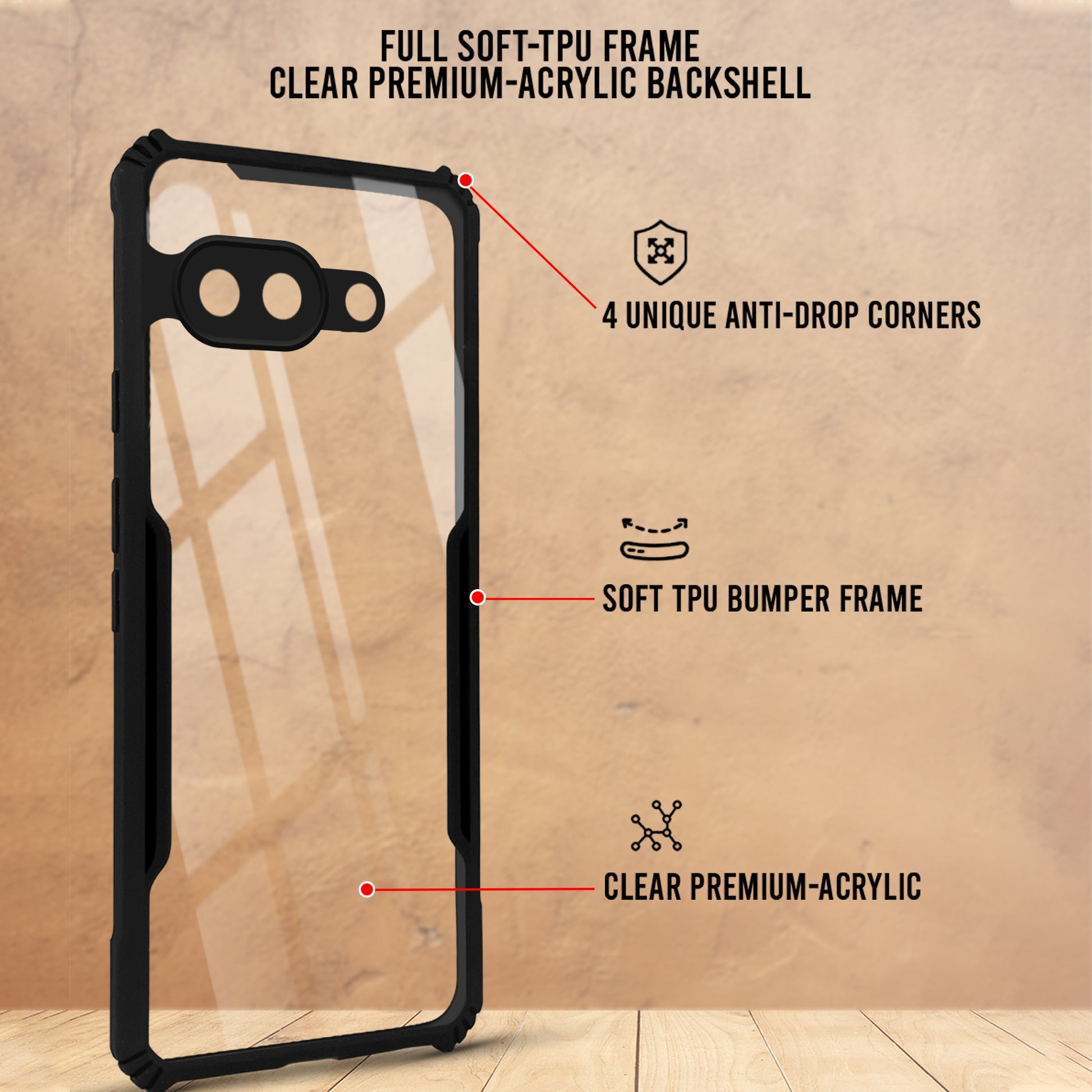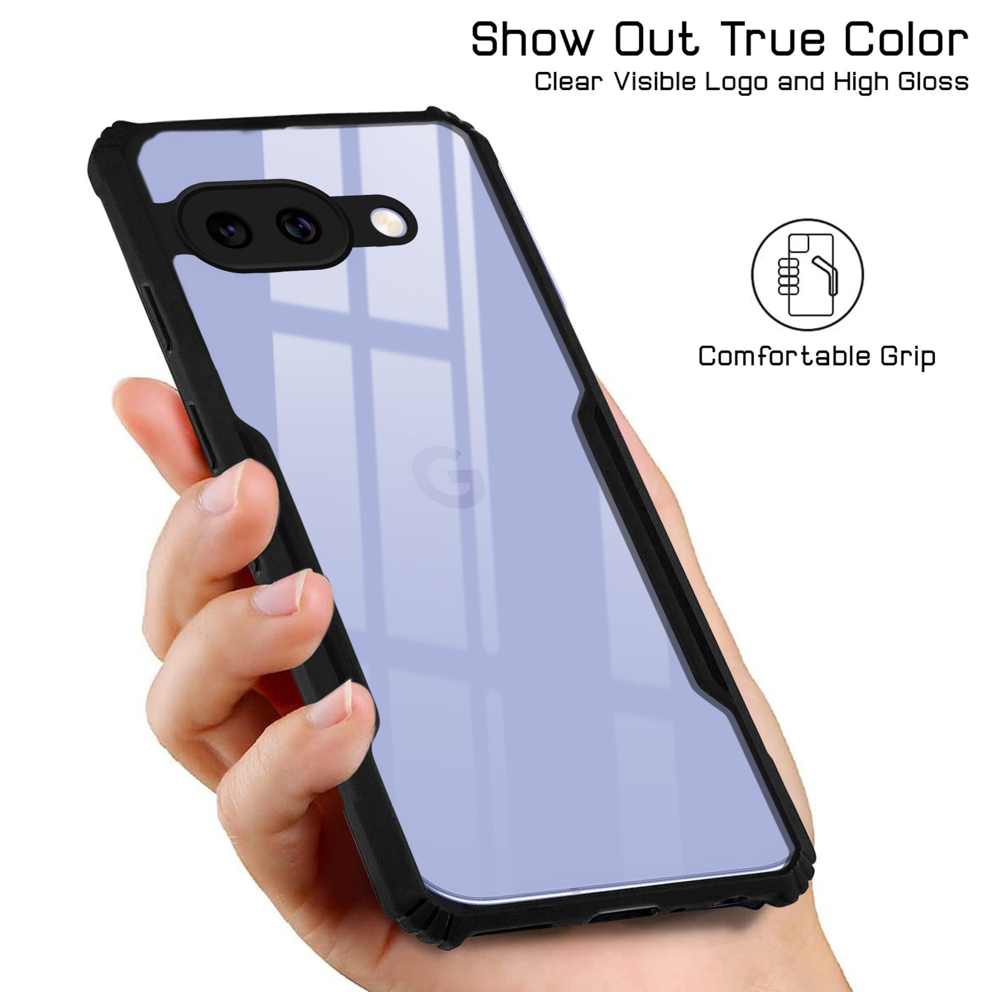 For Google Pixel 9A Back Cover Case (Shockproof with Polycarbonate Clear Panel | Professional Black)