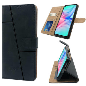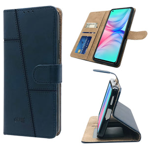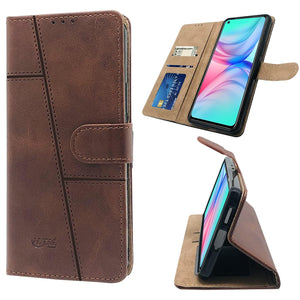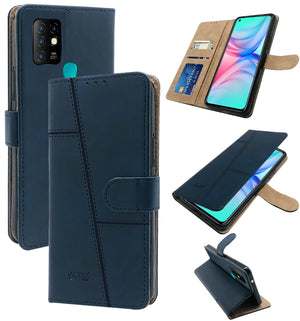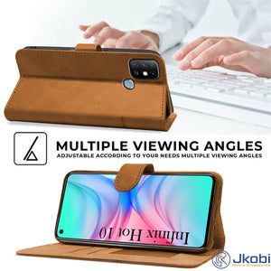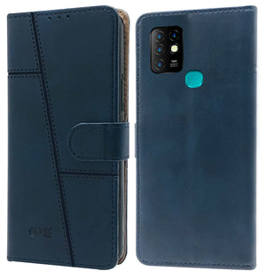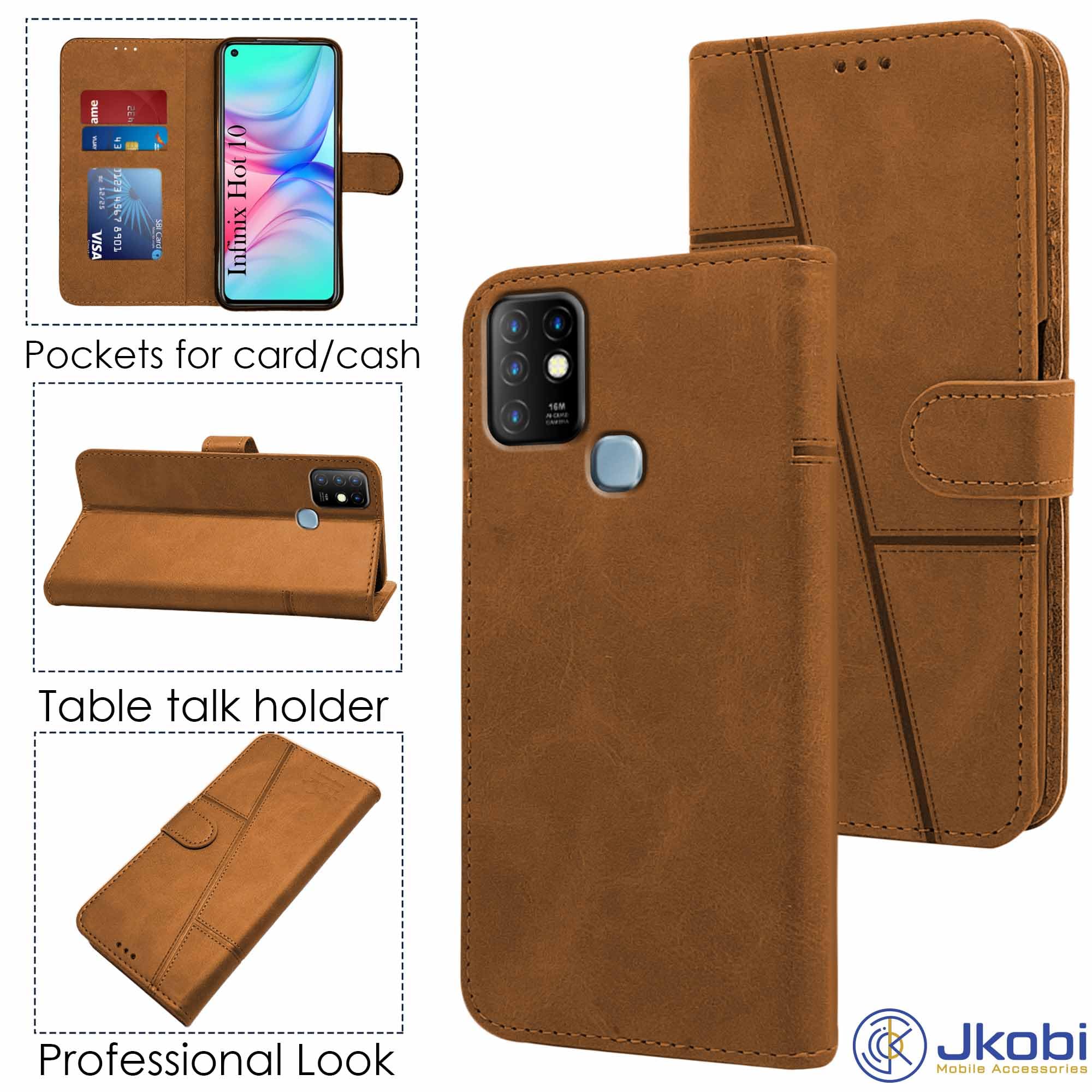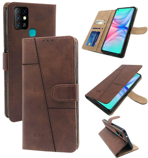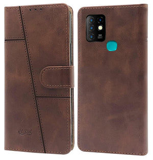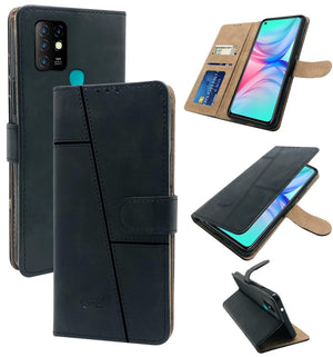 For Infinix Hot 10 Flip Cover Case (Stitched Leather Finish | Magnetic Closure | Inner TPU | Foldable Stand | Wallet Card Slots)