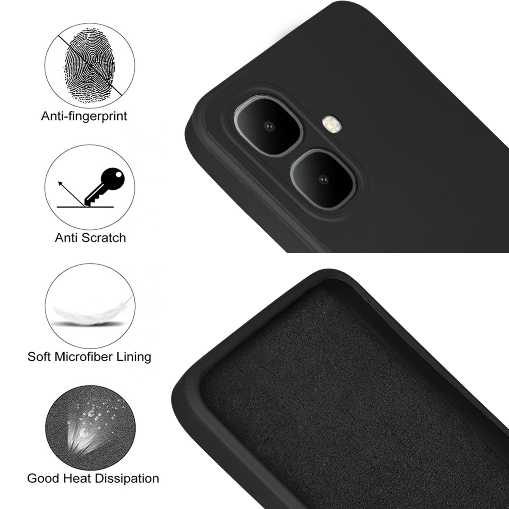 For Infinix Smart 10 4G Back Cover Case (Matte Finish Silicone with Inside Fiber cloth |Black)