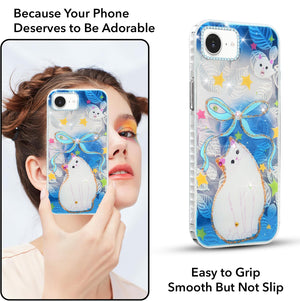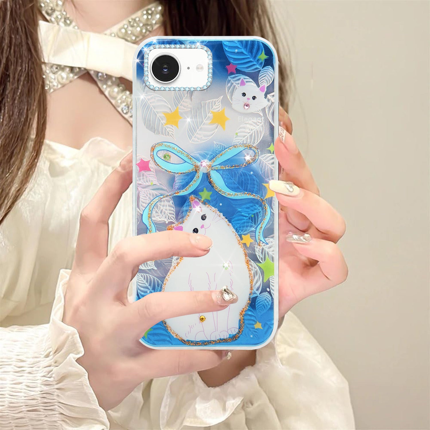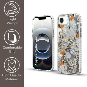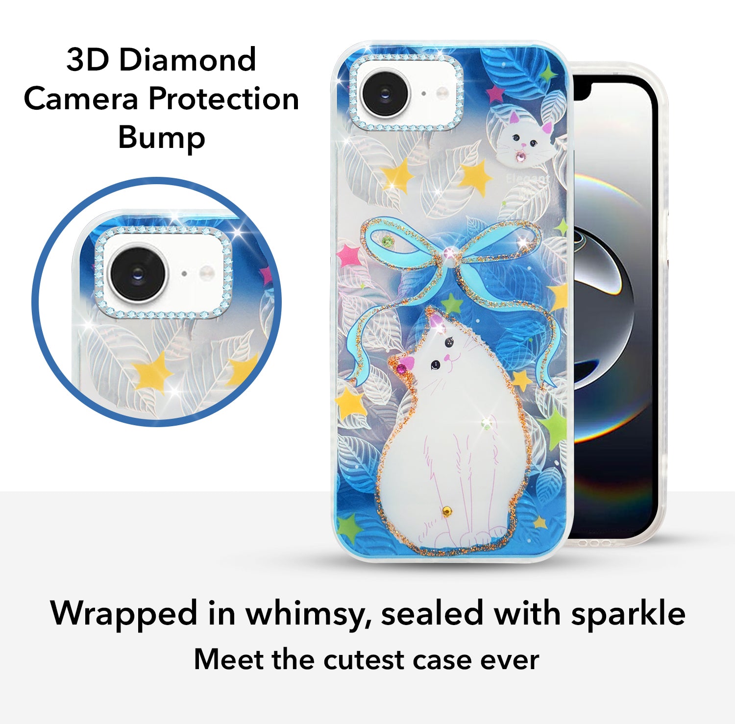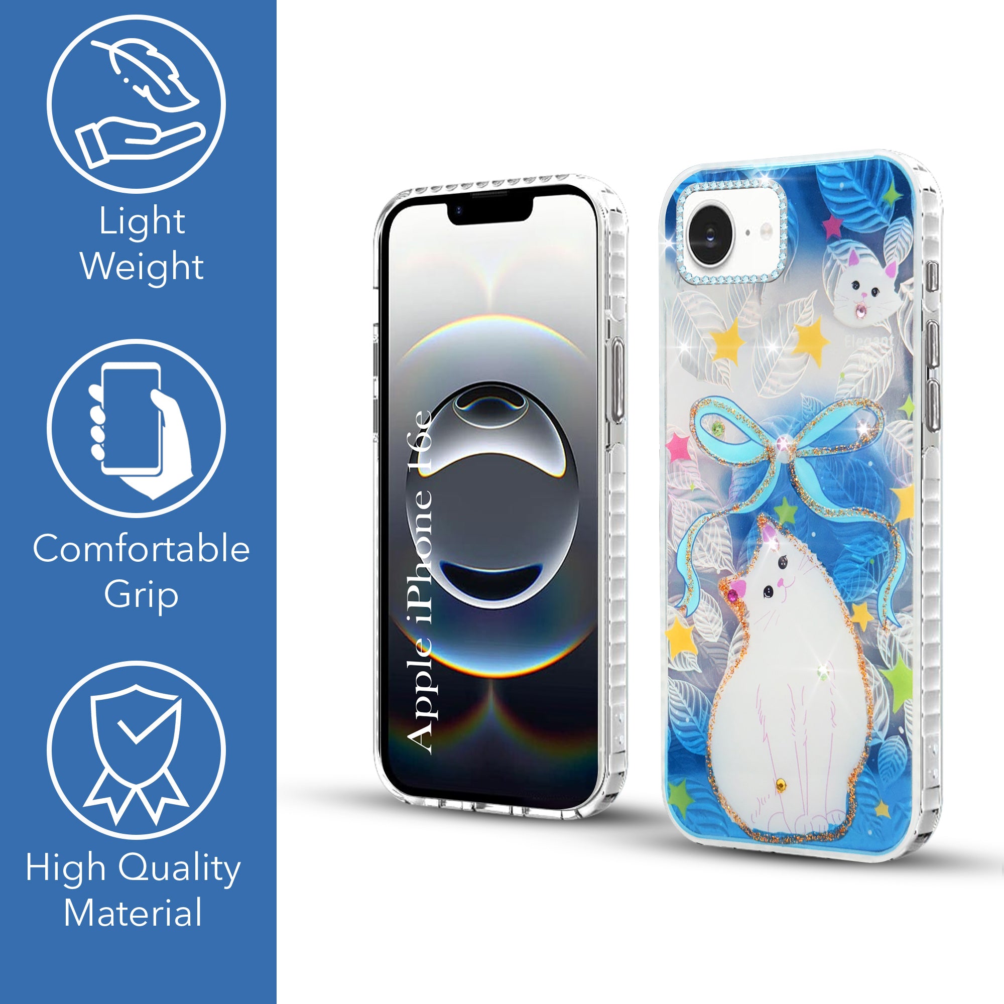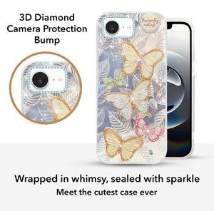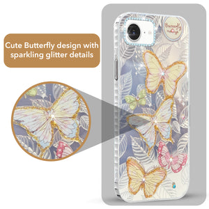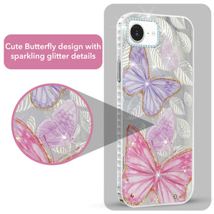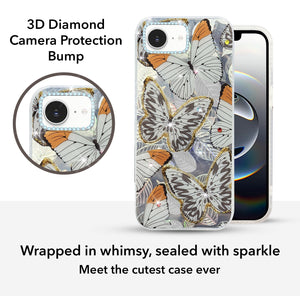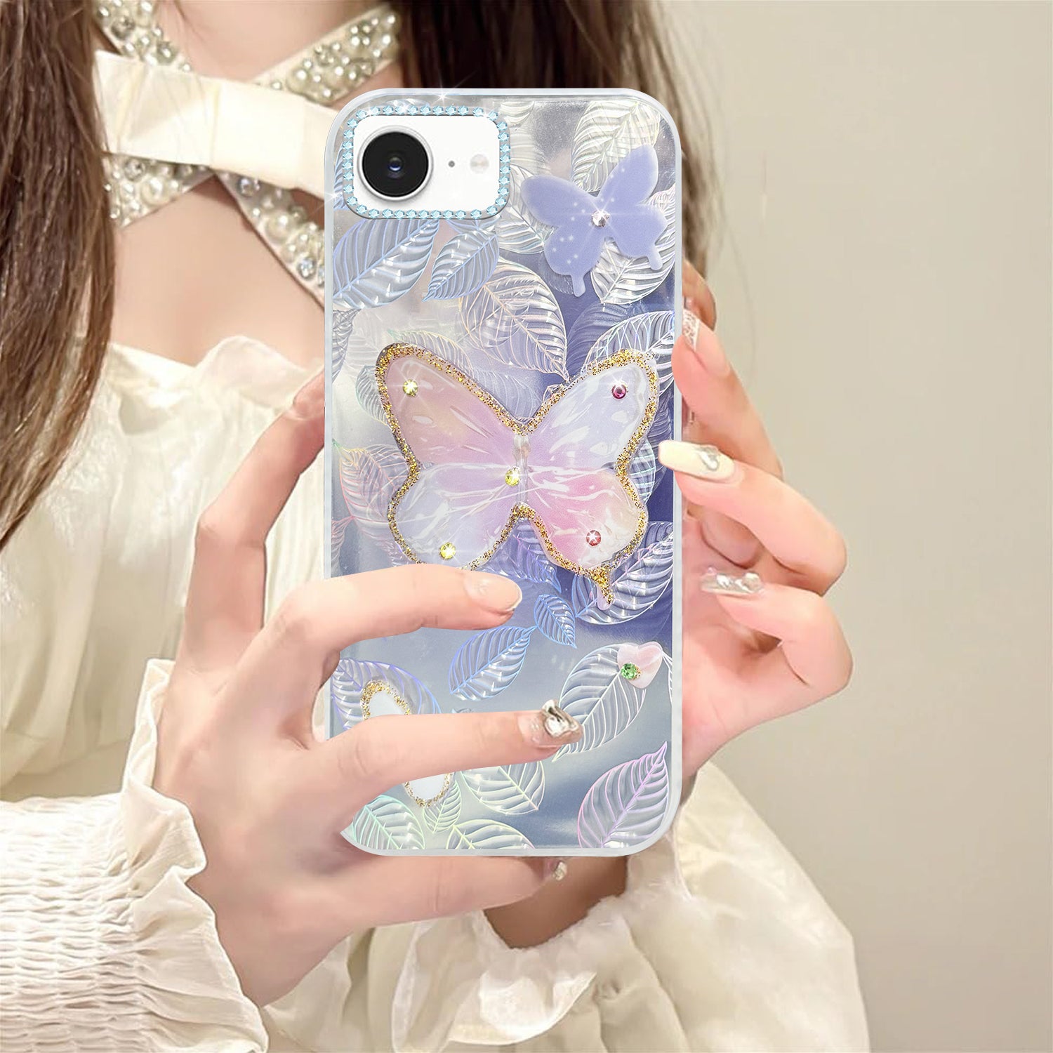 For iPhone 16e Back Cover Case (Luxury Floral Glitter Cute Butterfly | Diamond Studded Camera Bump | Girls & Women Design)