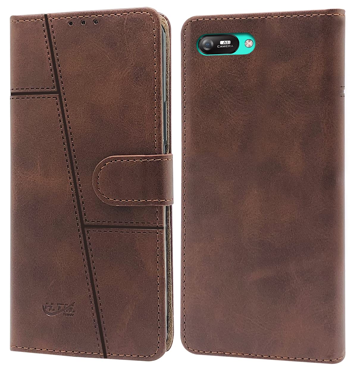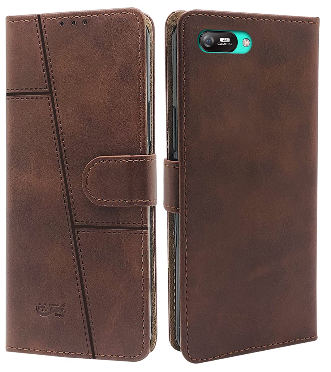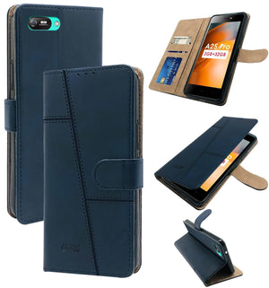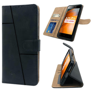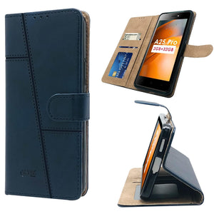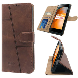 For Itel A25 Pro Flip Cover Case (Stitched Leather Finish | Magnetic Closure | Inner TPU | Foldable Stand | Wallet Card Slots)