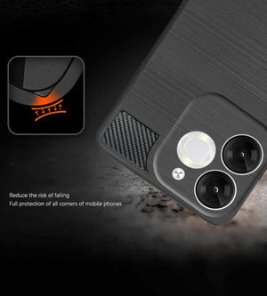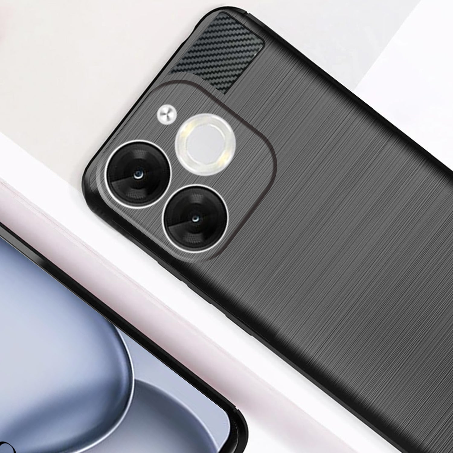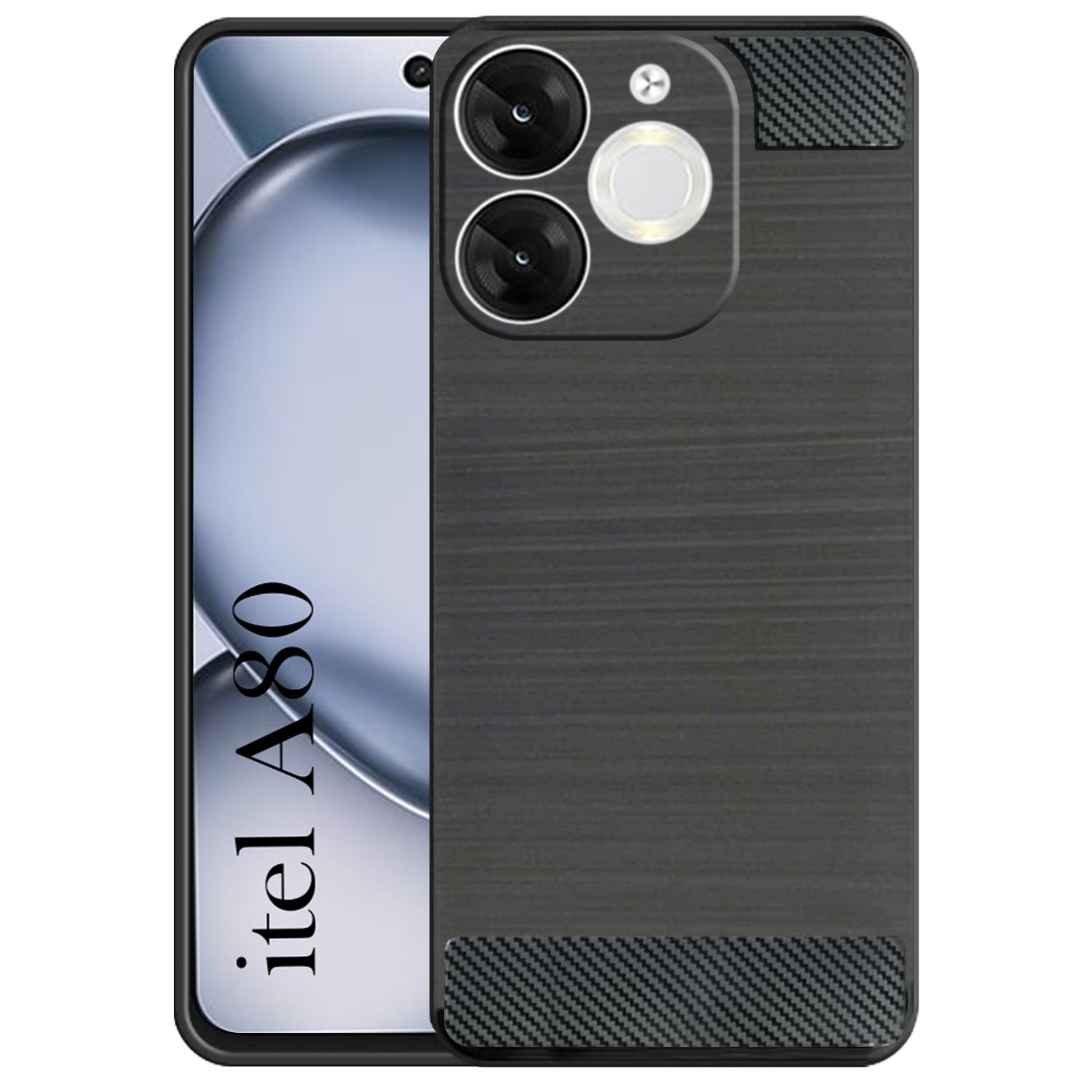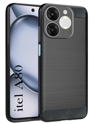 For Itel A80 Back Cover Case ( Hybrid Armor Case | Carbon Fiber Shockproof | Soft and Flexible | Black )