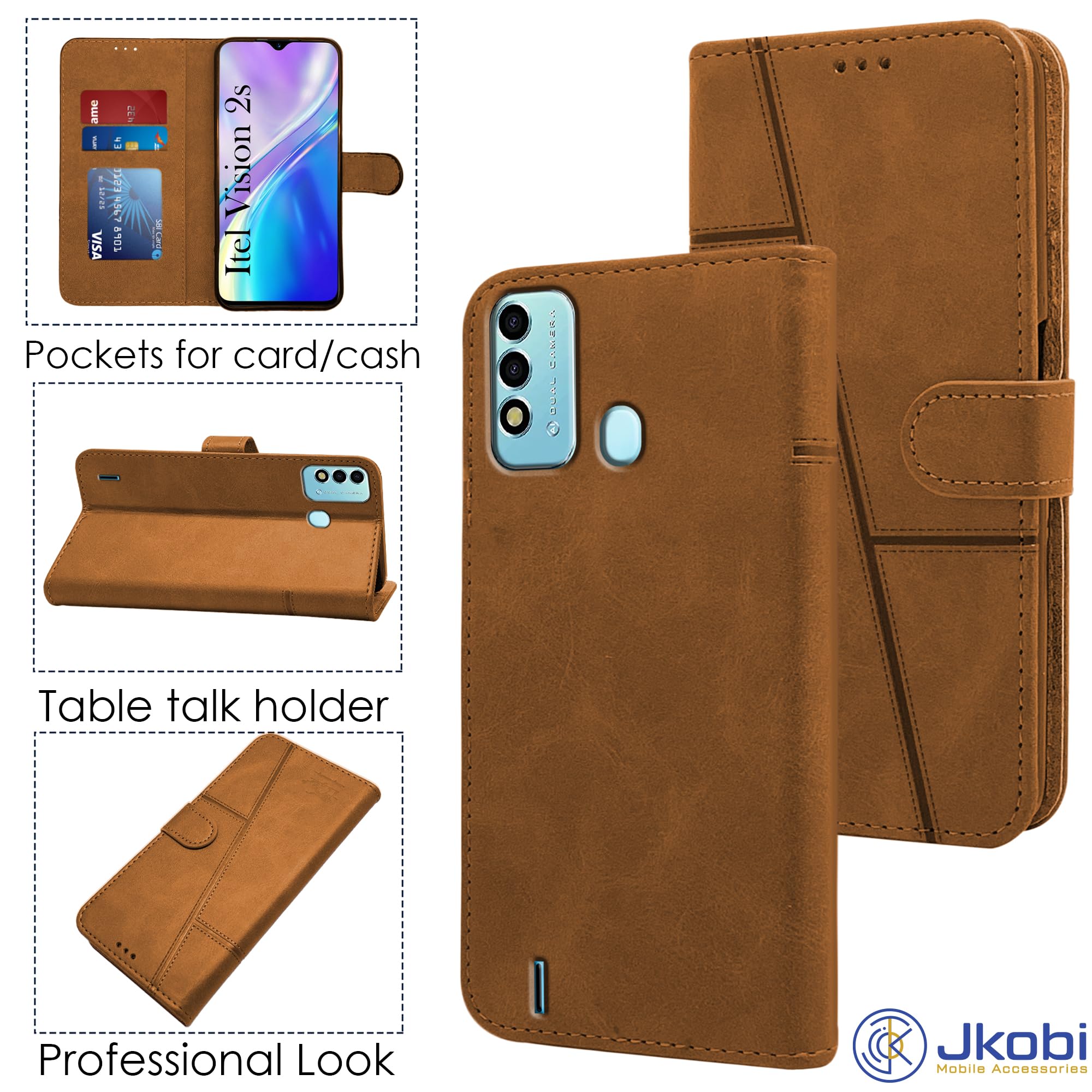 For Itel Vision 2s Flip Cover Case (Stitched Leather Finish | Magnetic Closure | Inner TPU | Foldable Stand | Wallet Card Slots)