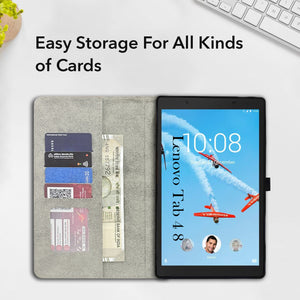 For Lenovo Tab 4 8 Flip Cover Folio Case (PU Leather | Multi-Angle Smart Stand | Card Storage Slots | Silicone Back Pouch)