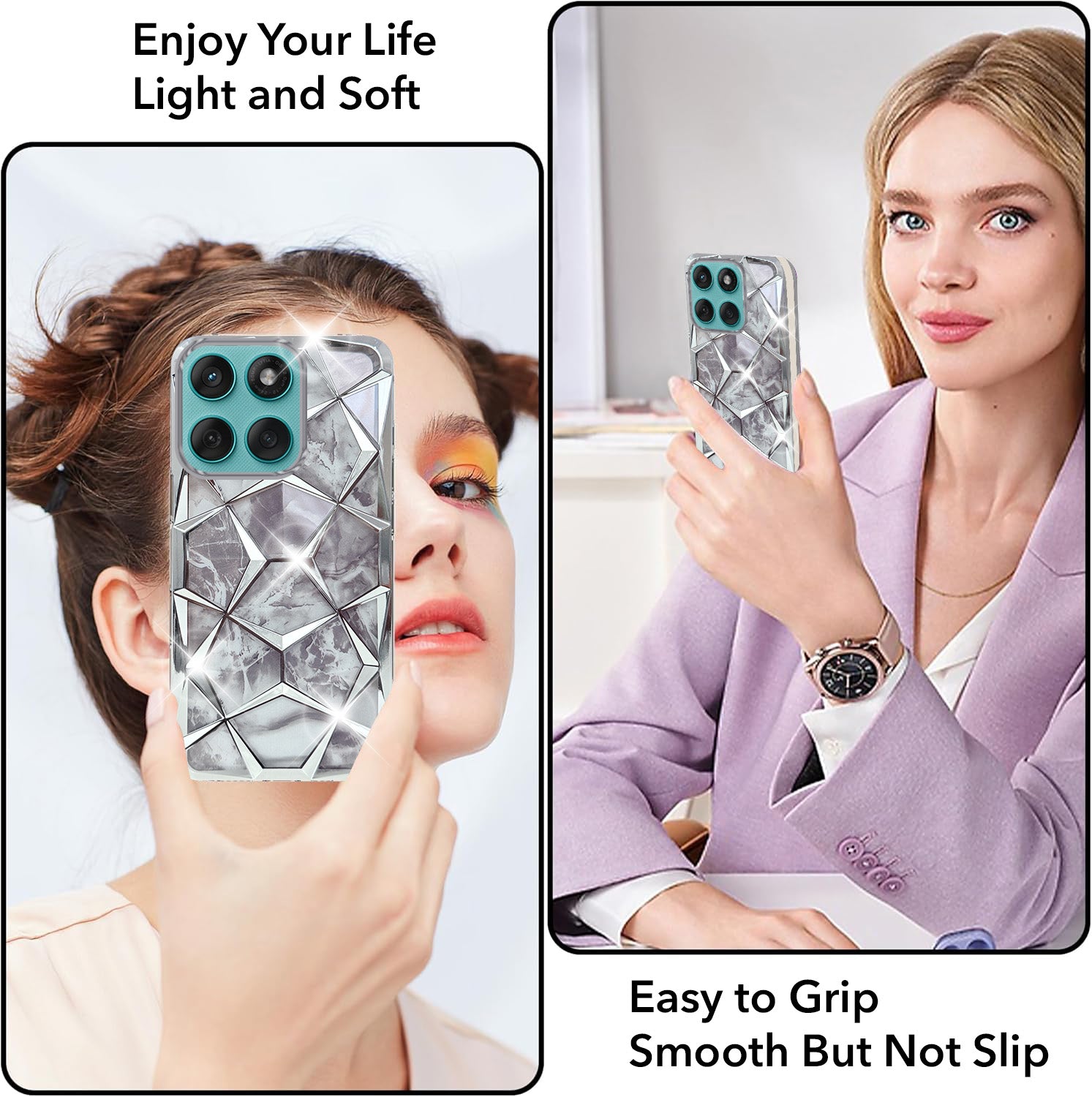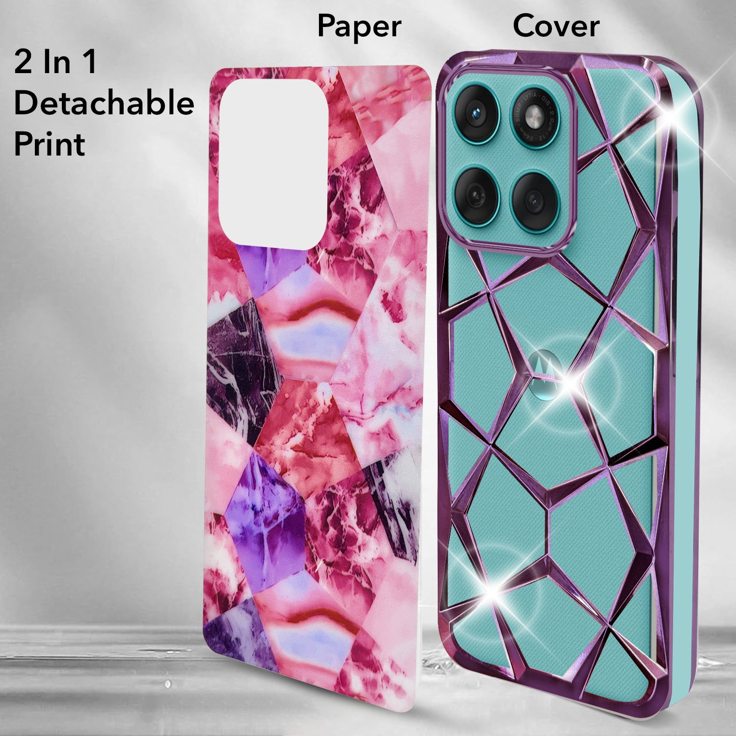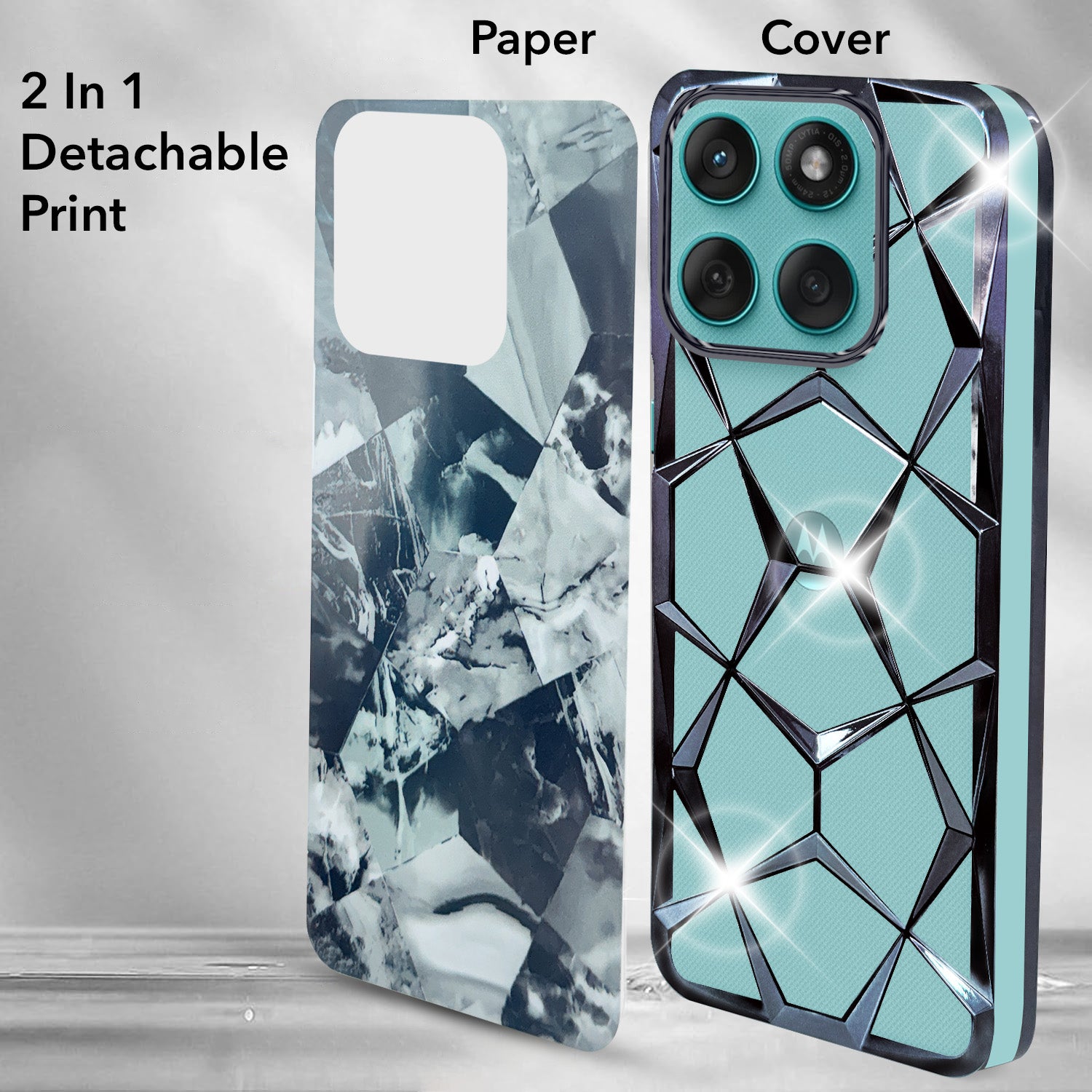 For Moto Edge 60 Fusion Back Cover Case Compatible With Motorola ( Dual Design Glitter Sparkle and Detachable Diamond Print Case | Soft and Flexible)