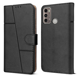 For Moto G40 Fusion | G60 Flip Cover Case (Stitched Leather Finish | Magnetic Closure | Inner TPU | Foldable Stand | Wallet Card Slots)