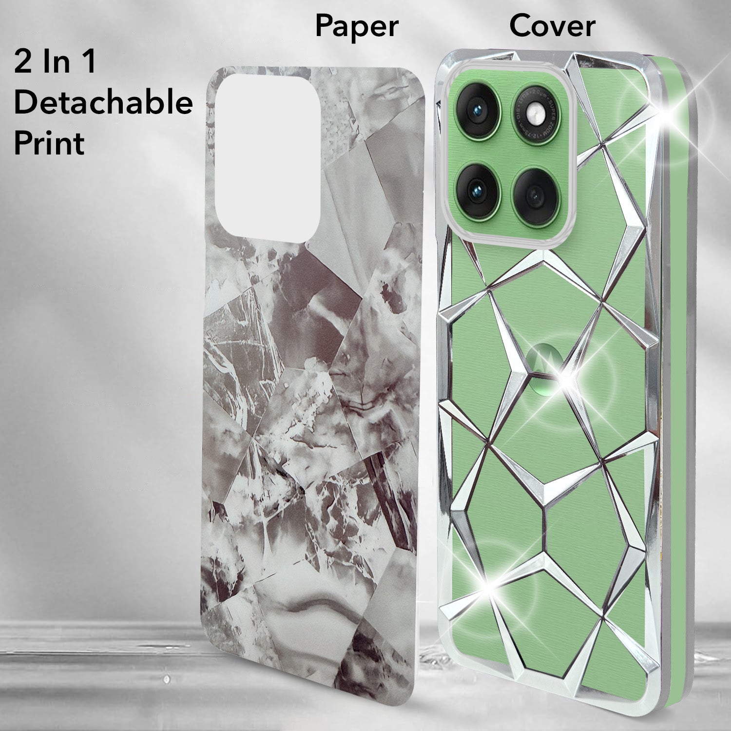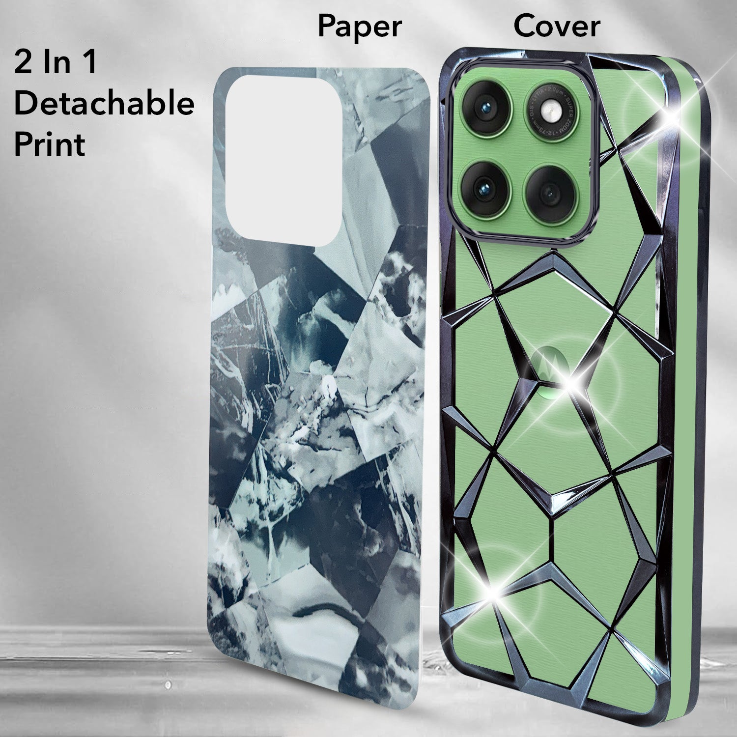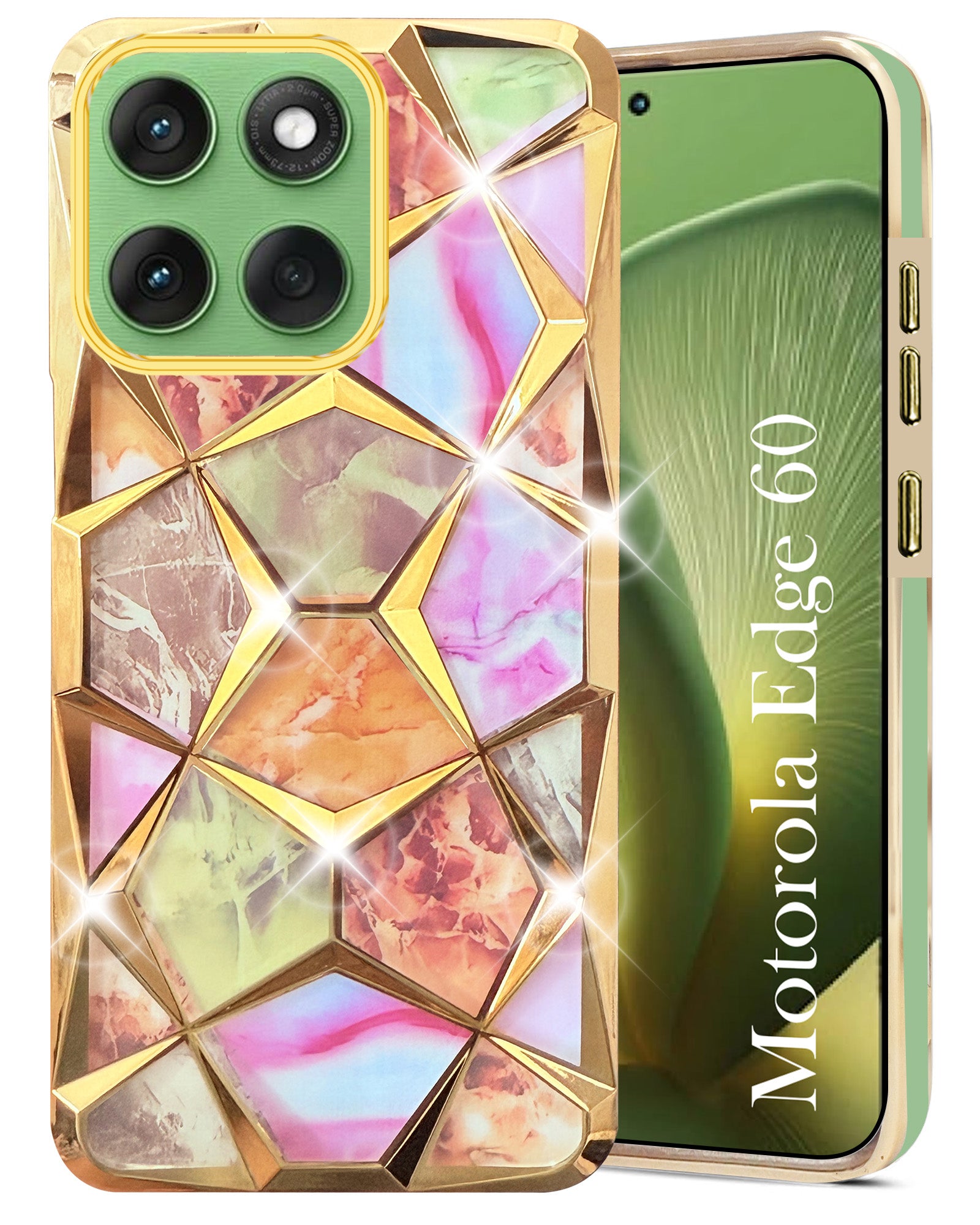 For Motorola Moto Edge 60 Back Cover Case Compatible With ( Dual Design Glitter Sparkle and Detachable Diamond Print Case | Soft and Flexible)