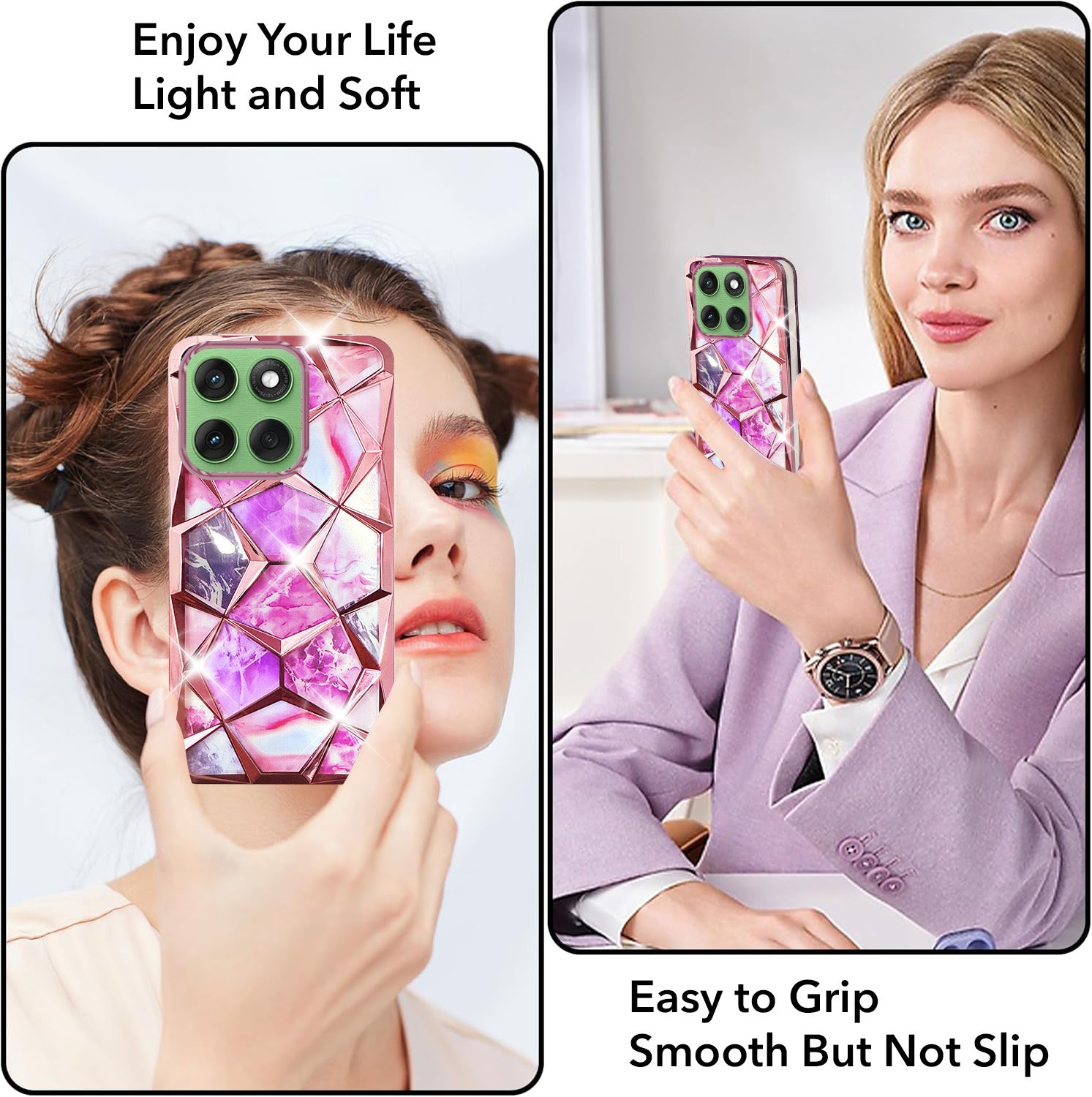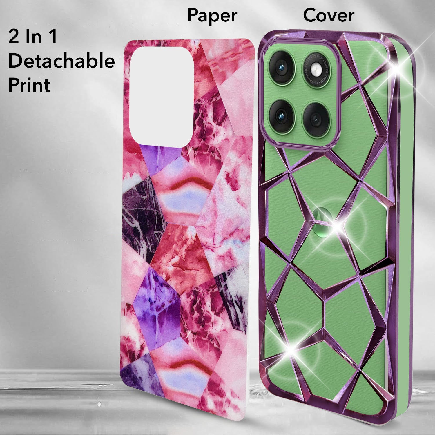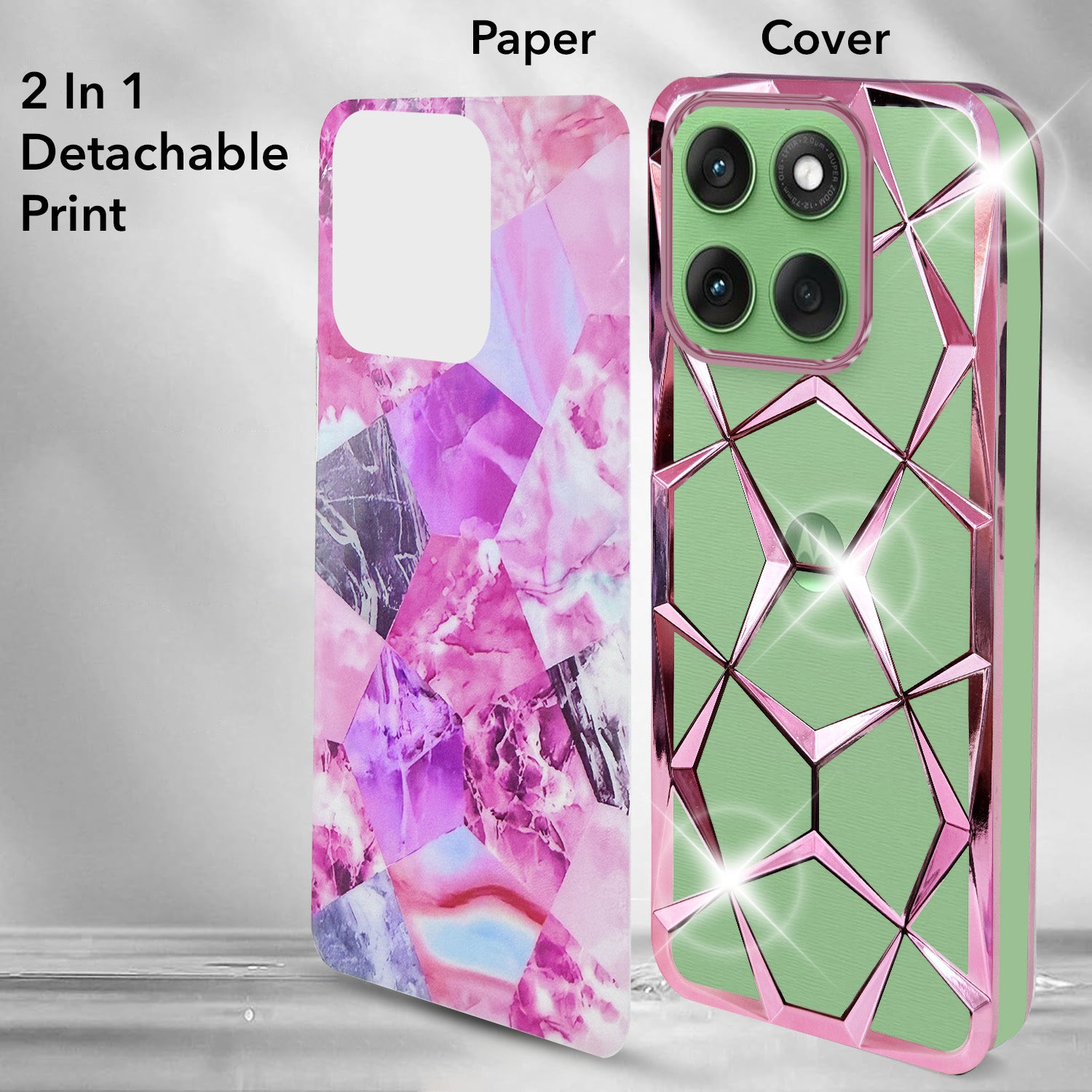 For Motorola Moto Edge 60 Back Cover Case Compatible With ( Dual Design Glitter Sparkle and Detachable Diamond Print Case | Soft and Flexible)