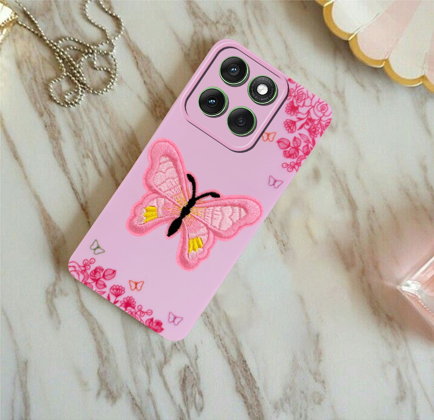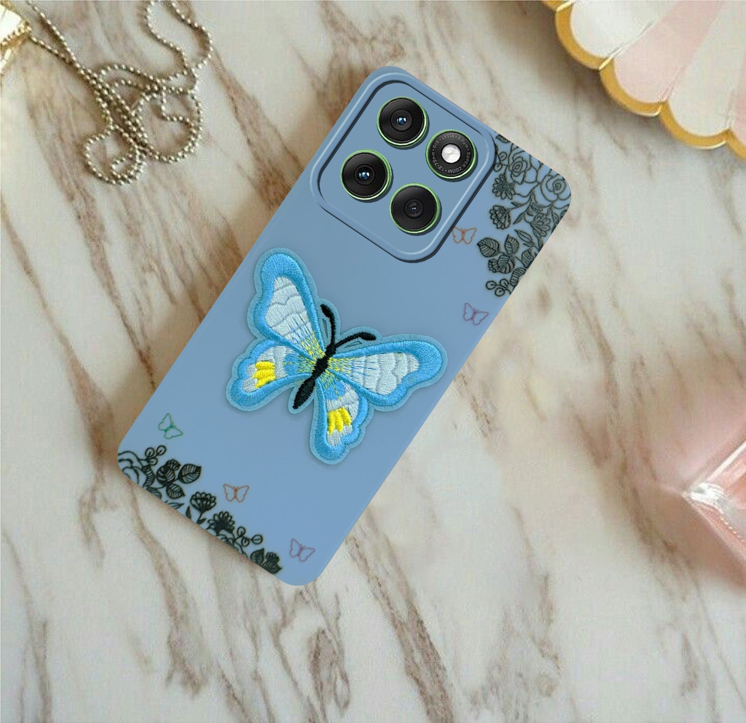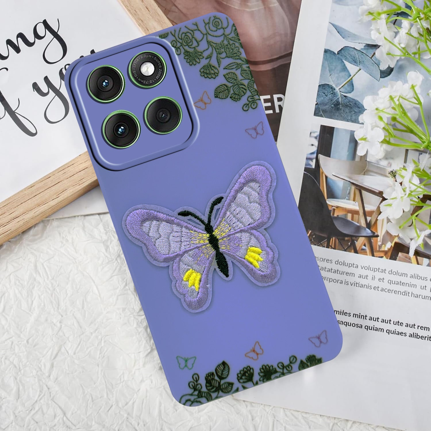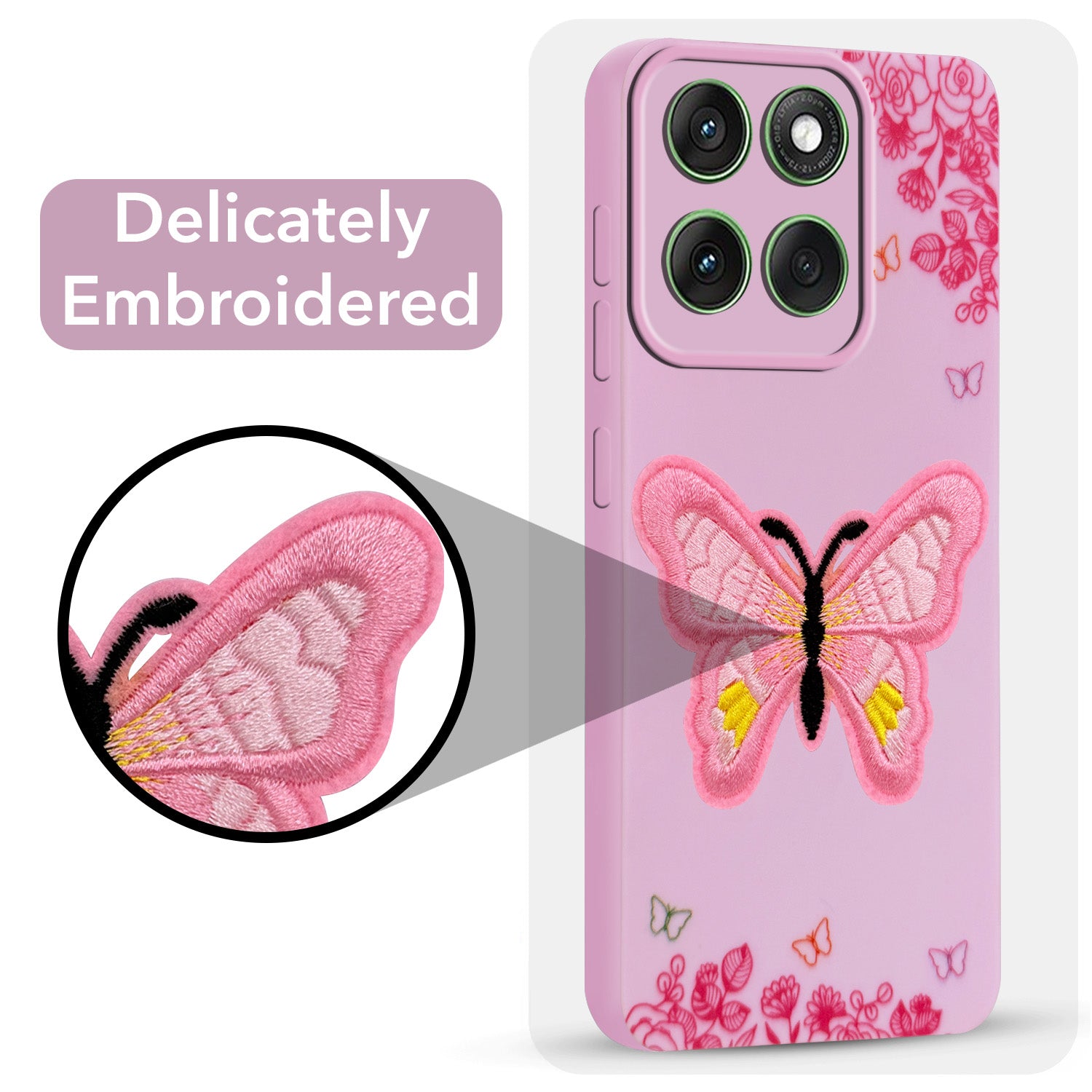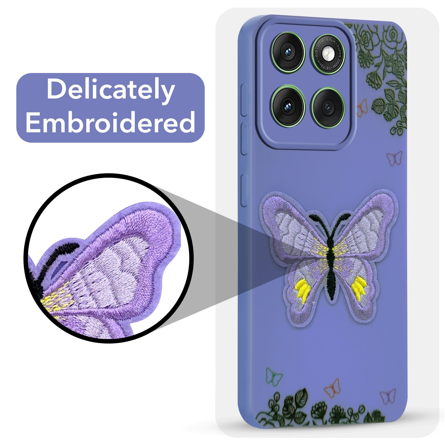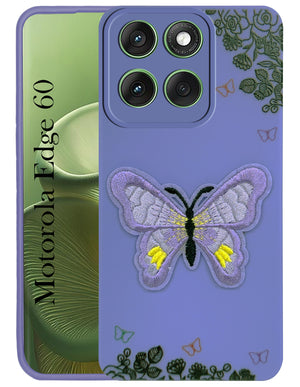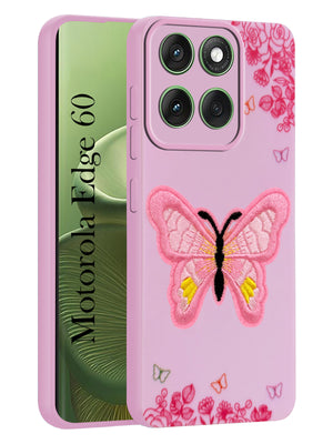 For Motorola Moto Edge 60 Back Cover Case (Soft Butterfly Embroidery | Women Teen Girls | Camera Protection| Matte Silicone)