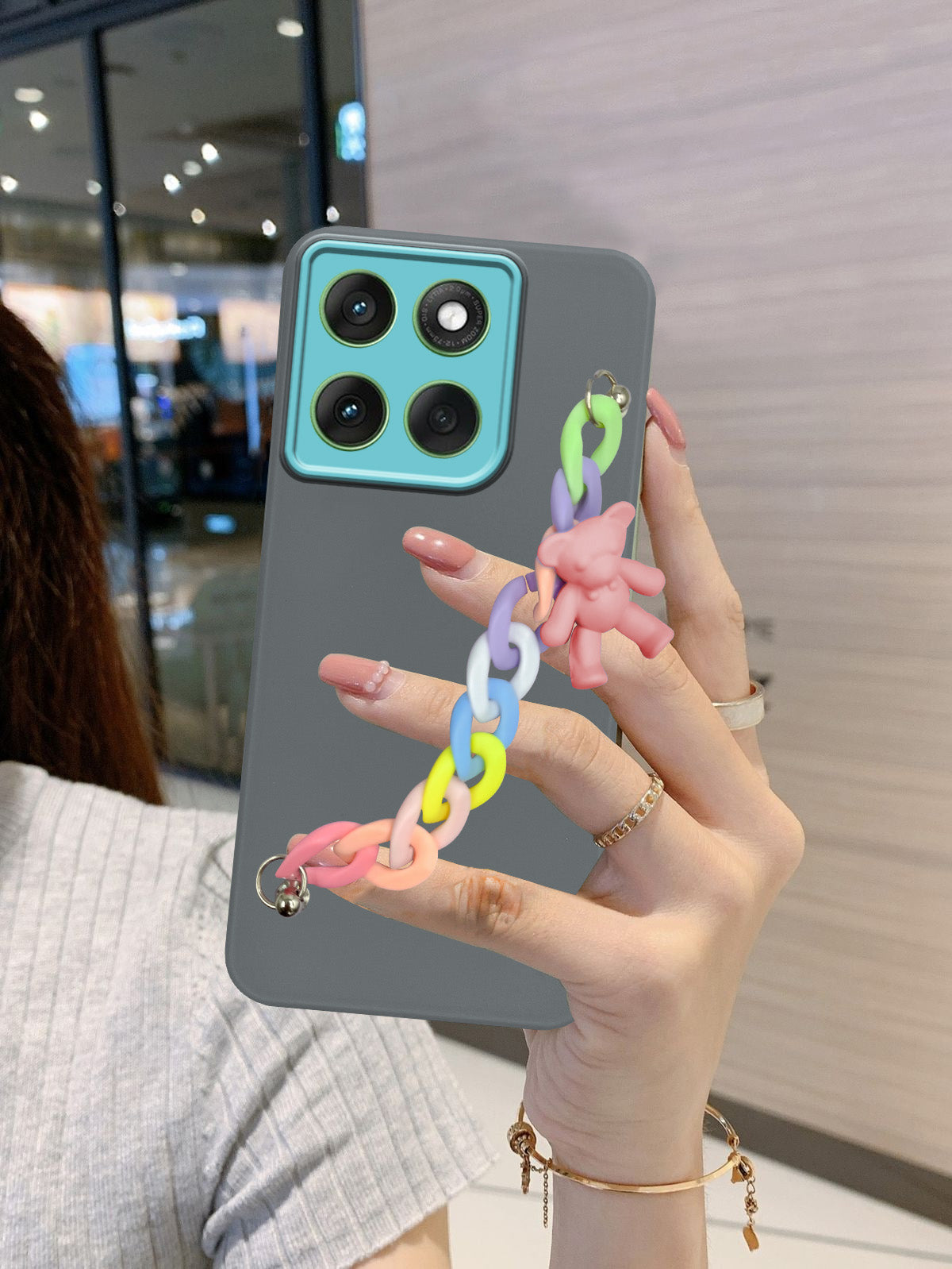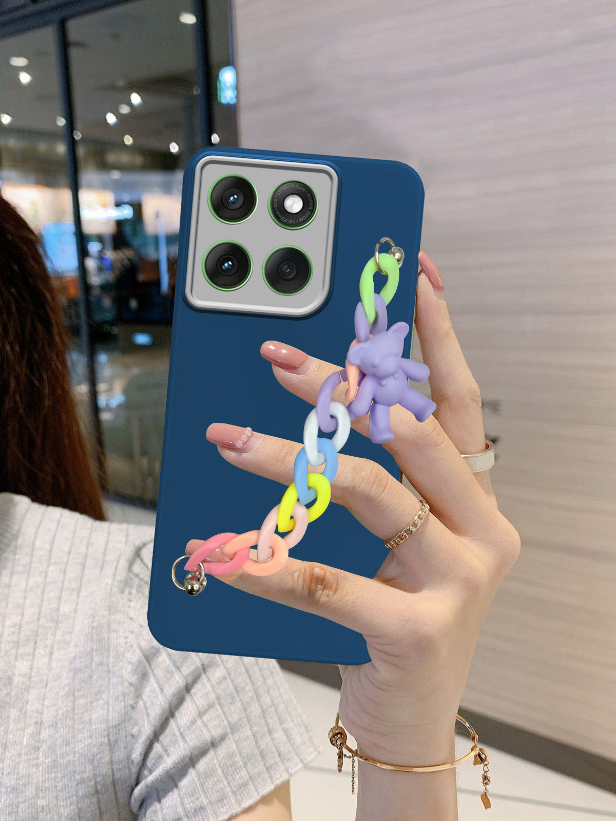 For Motorola Moto Edge 60 Back Cover Case (Wrist Hanging Chain | Teddy Bracelet Charms | Dual Color Matte Finish | Full Camera Protection | Sleek and Professional)