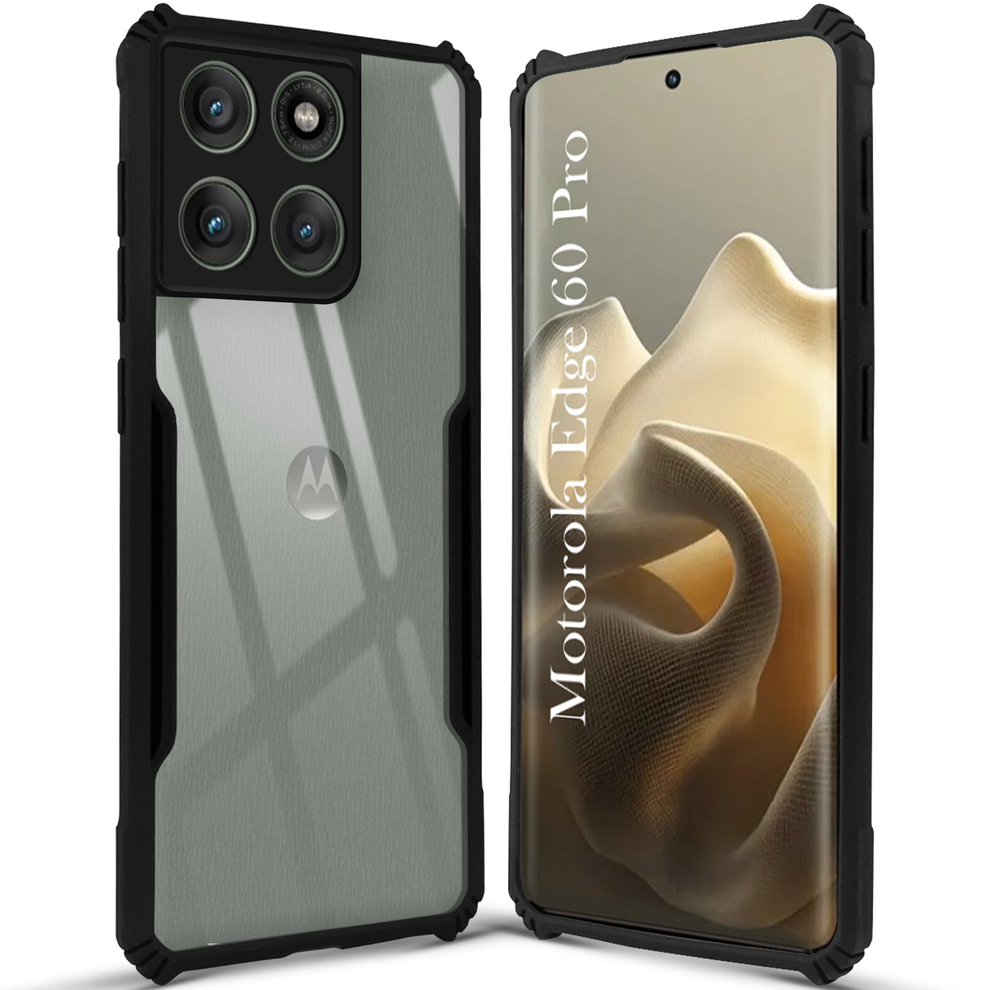 For Motorola Moto Edge 60 Pro Back Cover Case ( Shockproof with Polycarbonate Clear Panel | Professional Black)