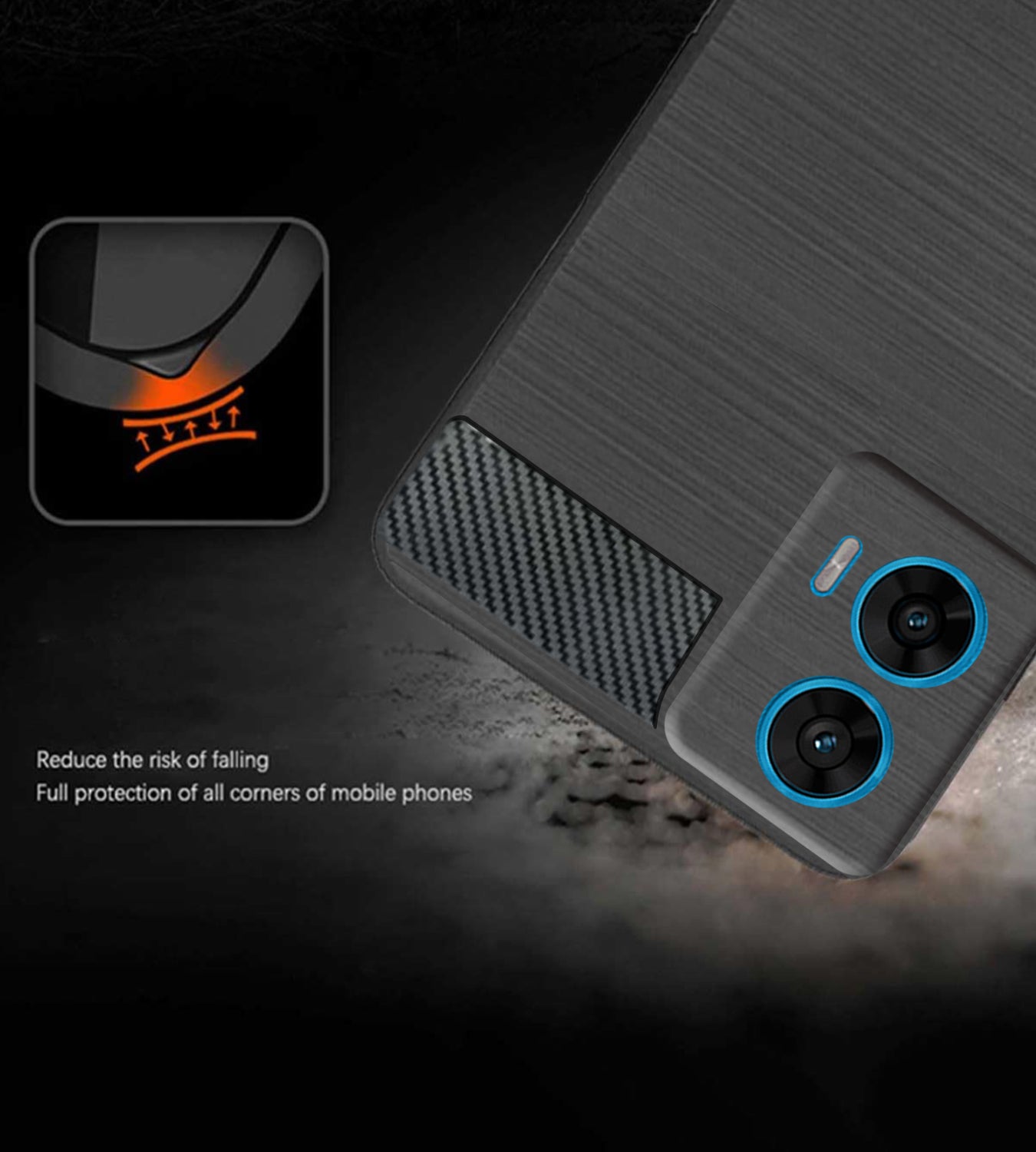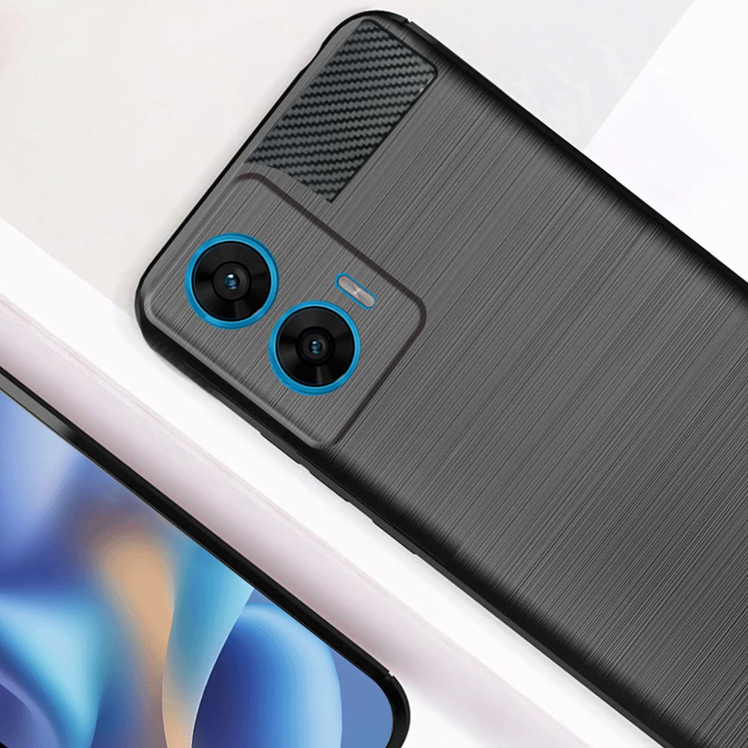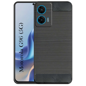 For Motorola Moto G96 Back Cover Case ( Hybrid Armor Case | Carbon Fiber Shockproof | Soft and Flexible | Black )