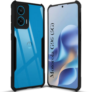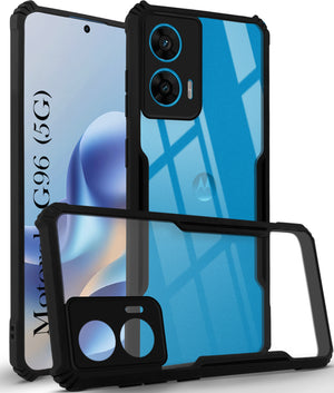 For Motorola Moto G96 Back Cover Case ( Shockproof with Polycarbonate Clear Panel | Professional Black)