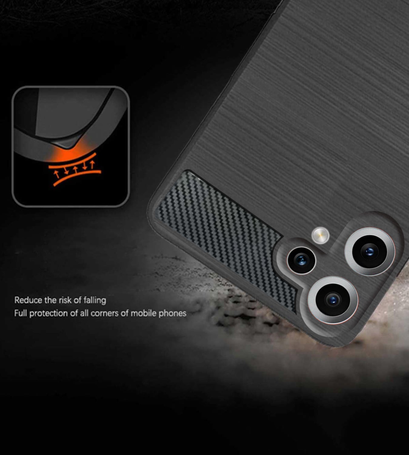 For Nothing CMF Phone 2 Pro Back Cover Case ( Hybrid Armor Case | Carbon Fiber Shockproof | Soft and Flexible | Black )