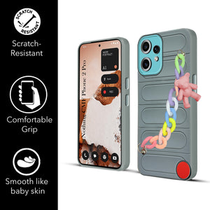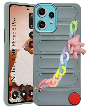 For Nothing CMF Phone 2 Pro Back Cover Case (Wrist Hanging Chain | Teddy Bracelet Charms | Matte Liquid Silicone | Camera Protection Ring)