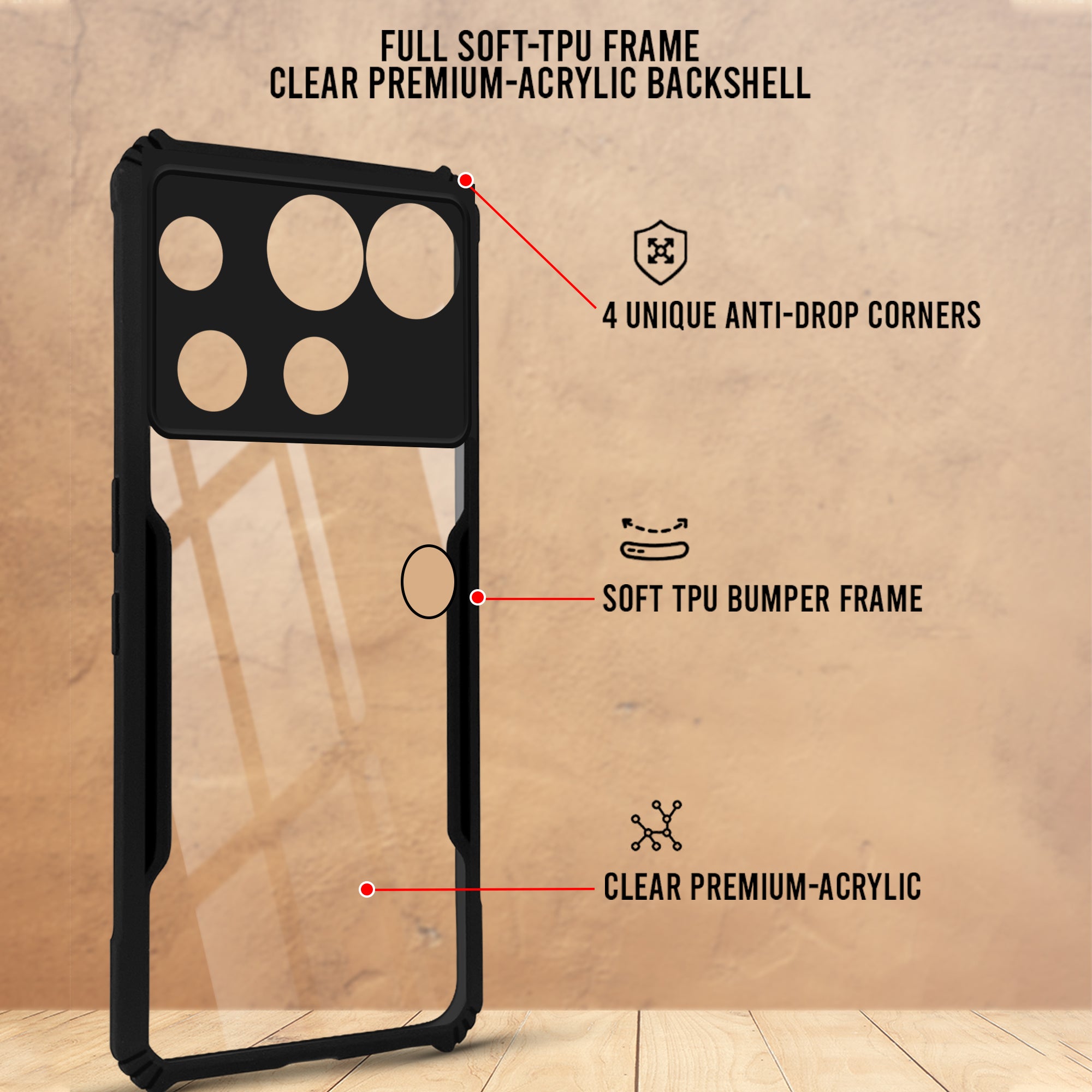 For Nothing Phone 3 Back Cover Case (Shockproof with Polycarbonate Clear Panel | Professional Black)