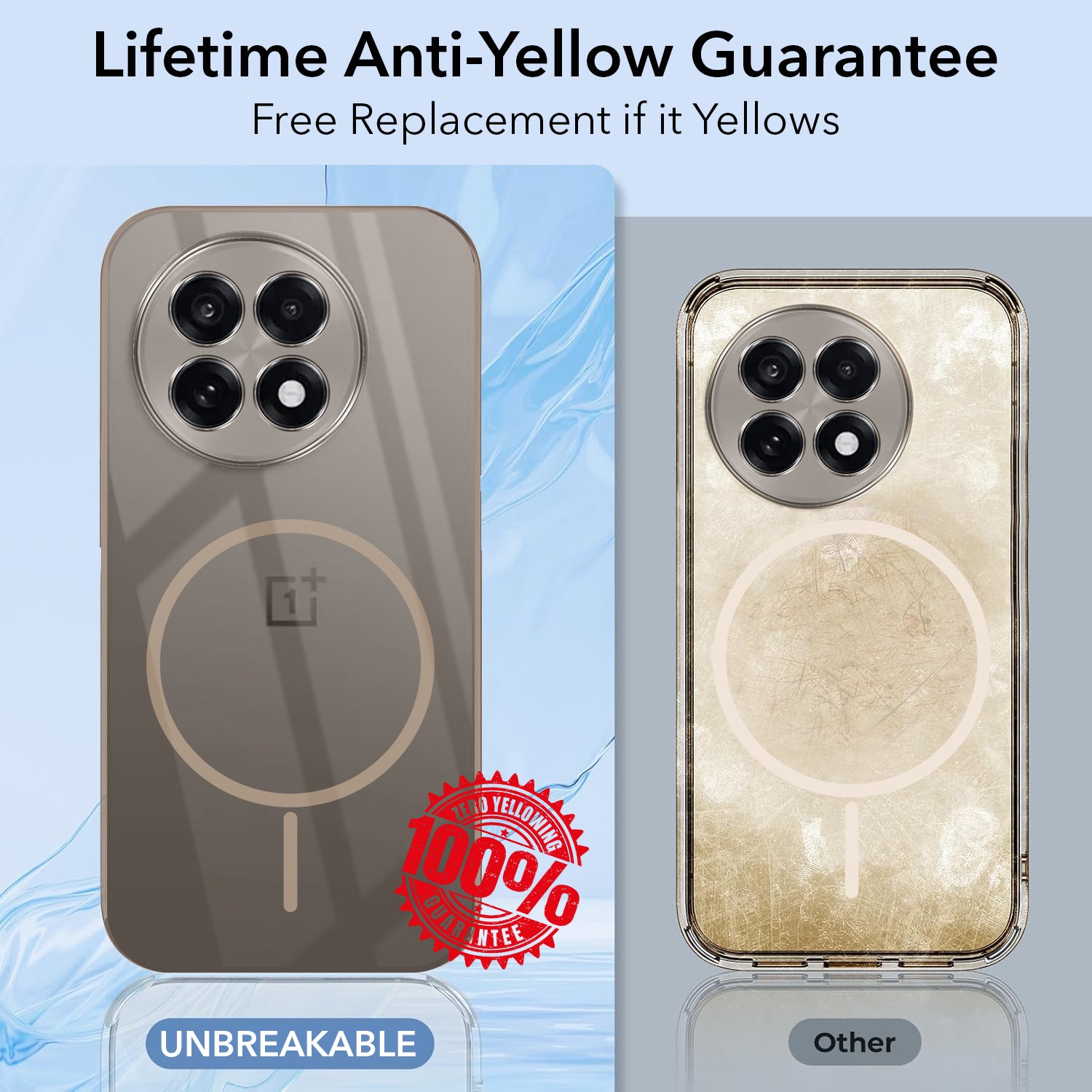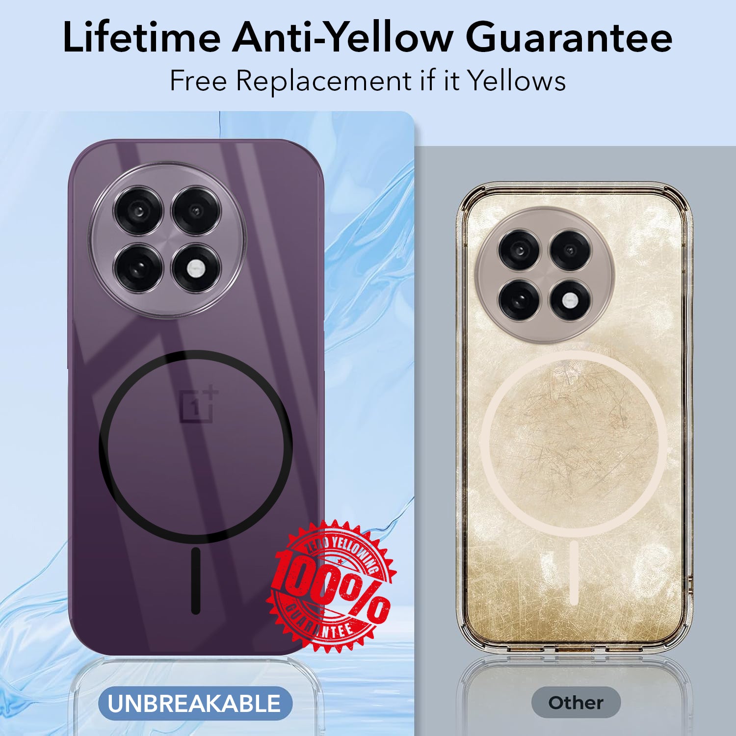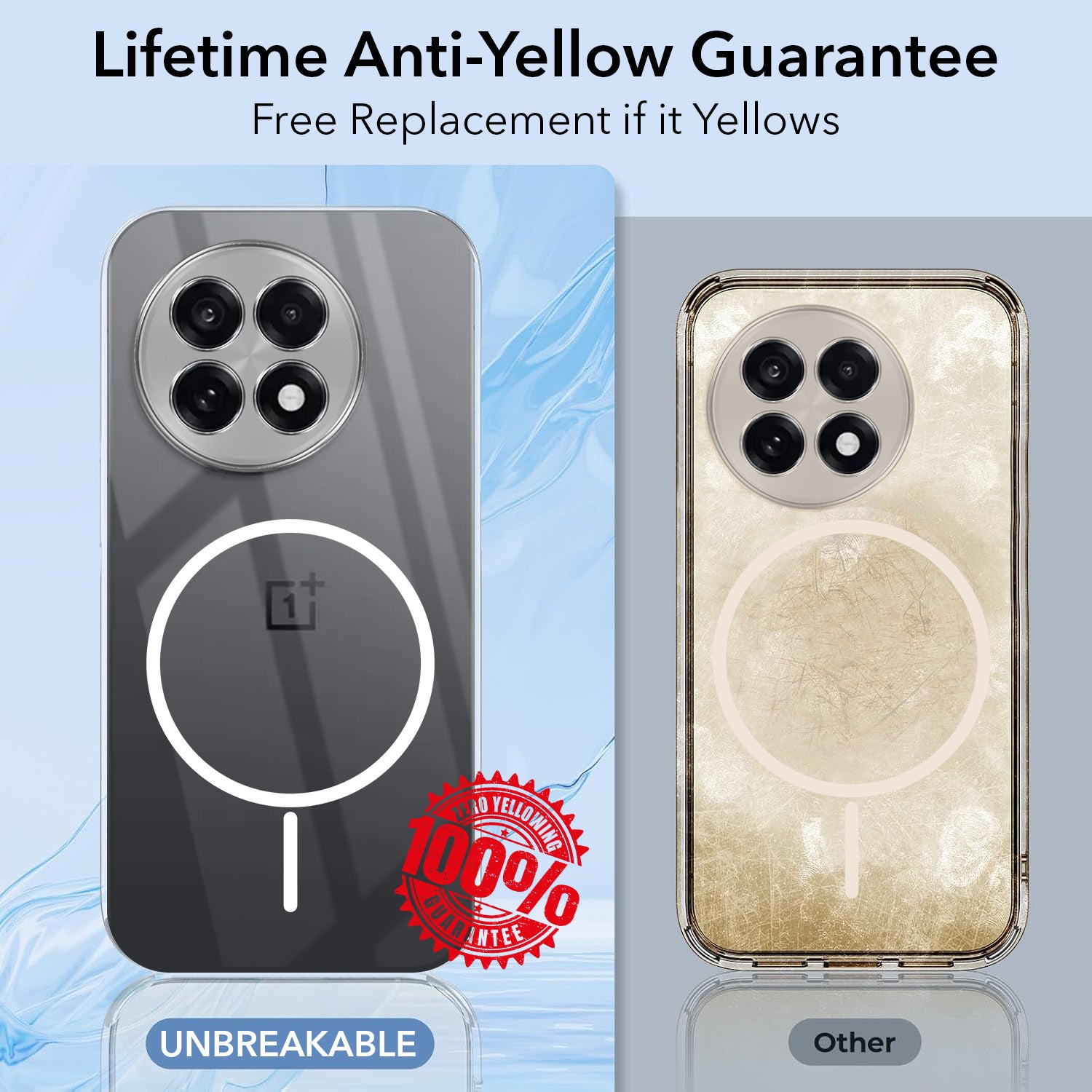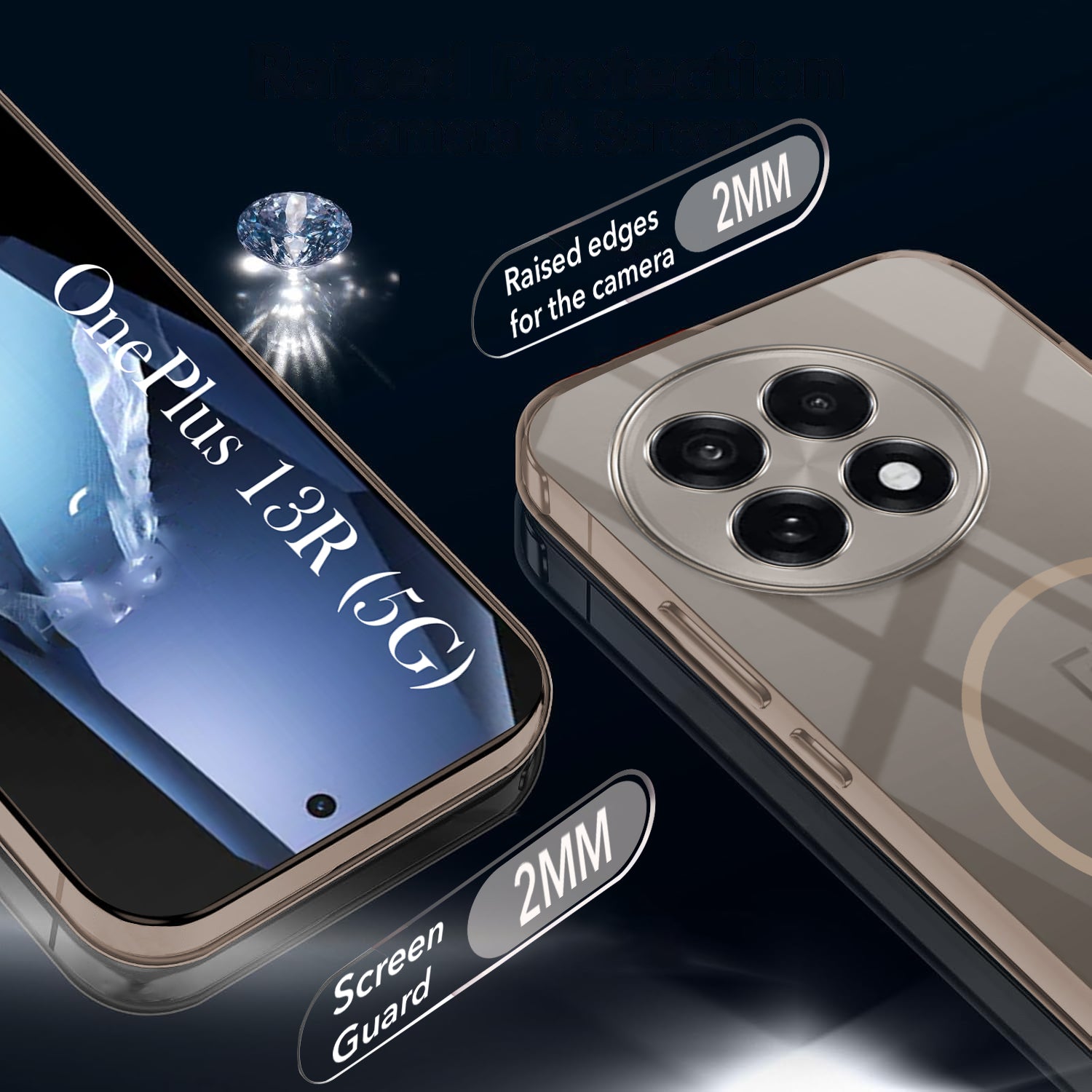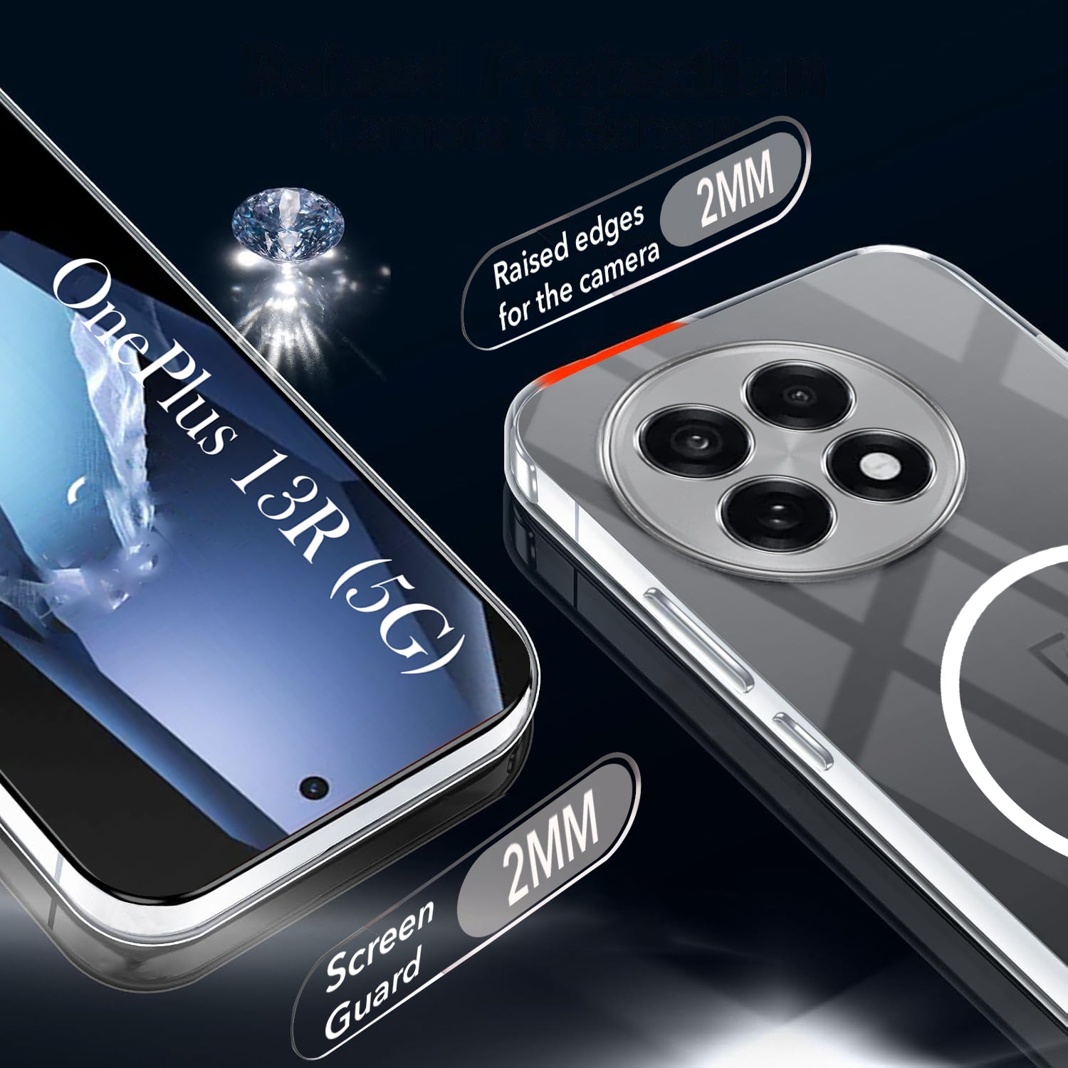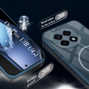 For OnePlus 13R 5G Back Cover Case (Crystal Clear Case | MagSafe Wireless Charging Support | Hard Anti Yellow | Camera Protection Bump)