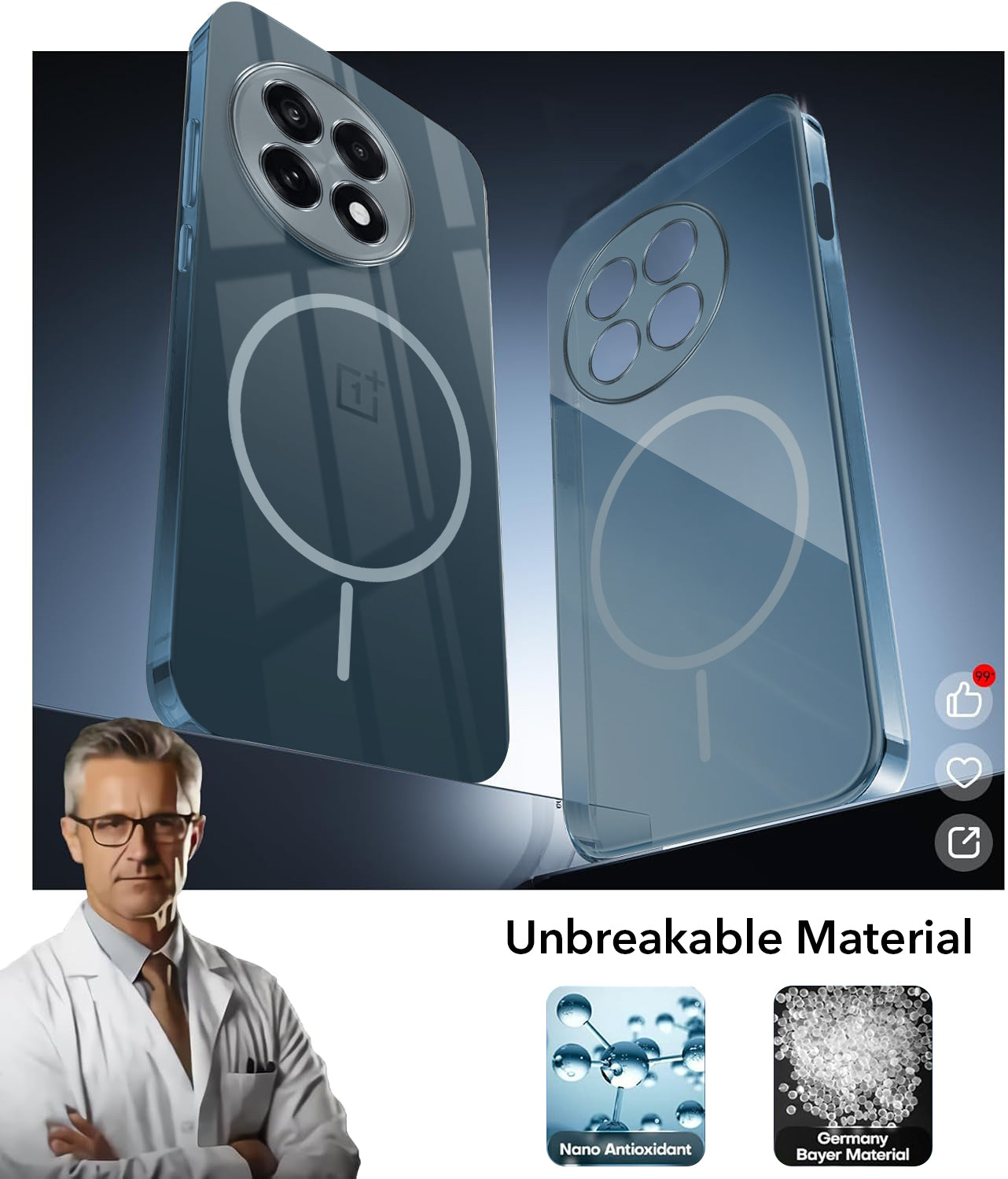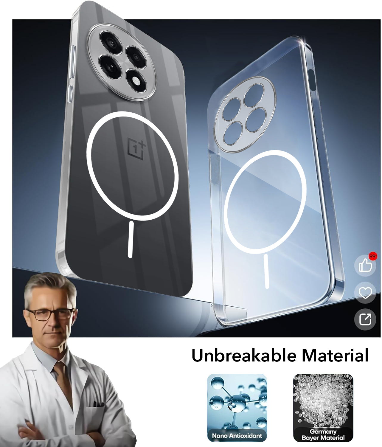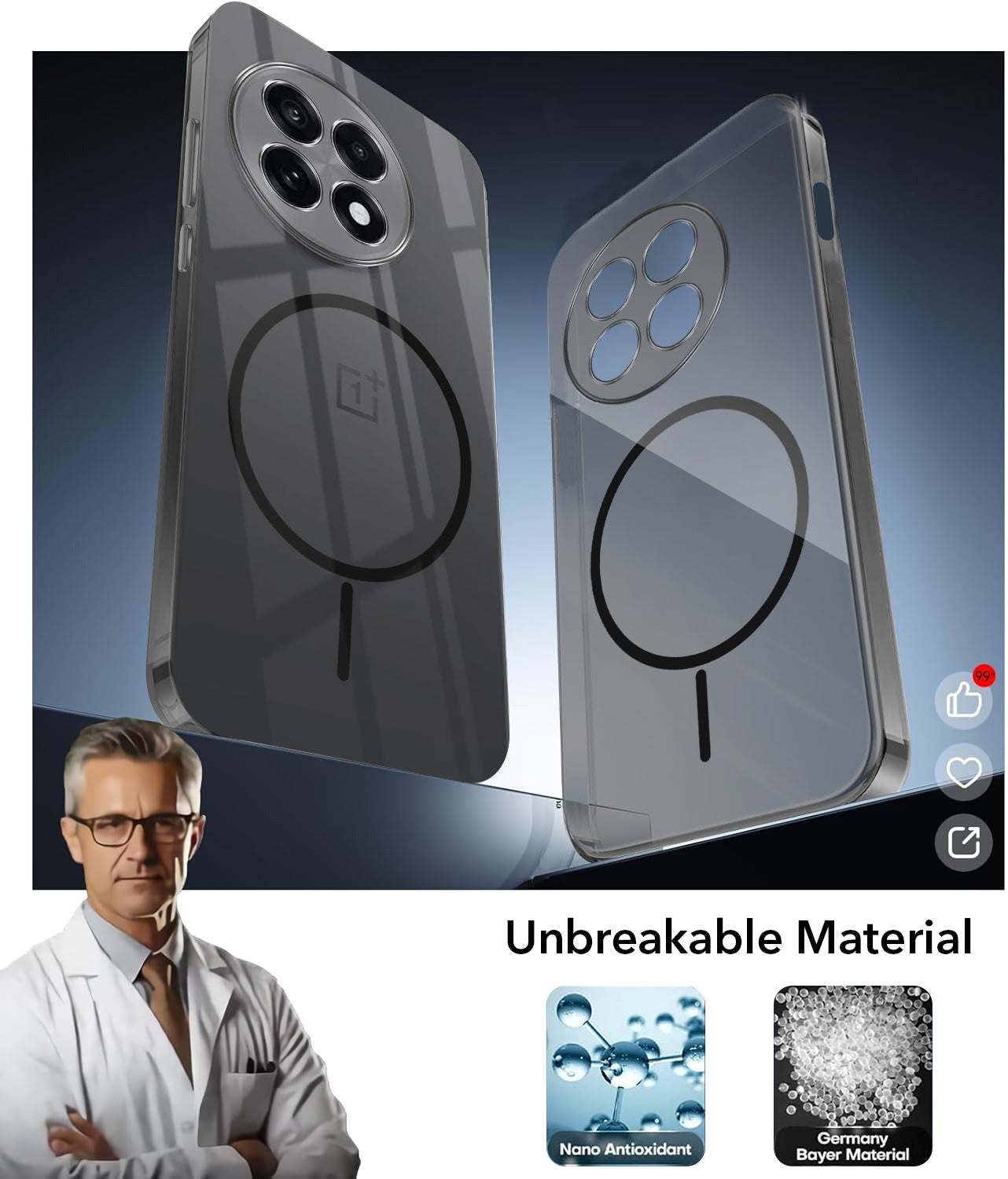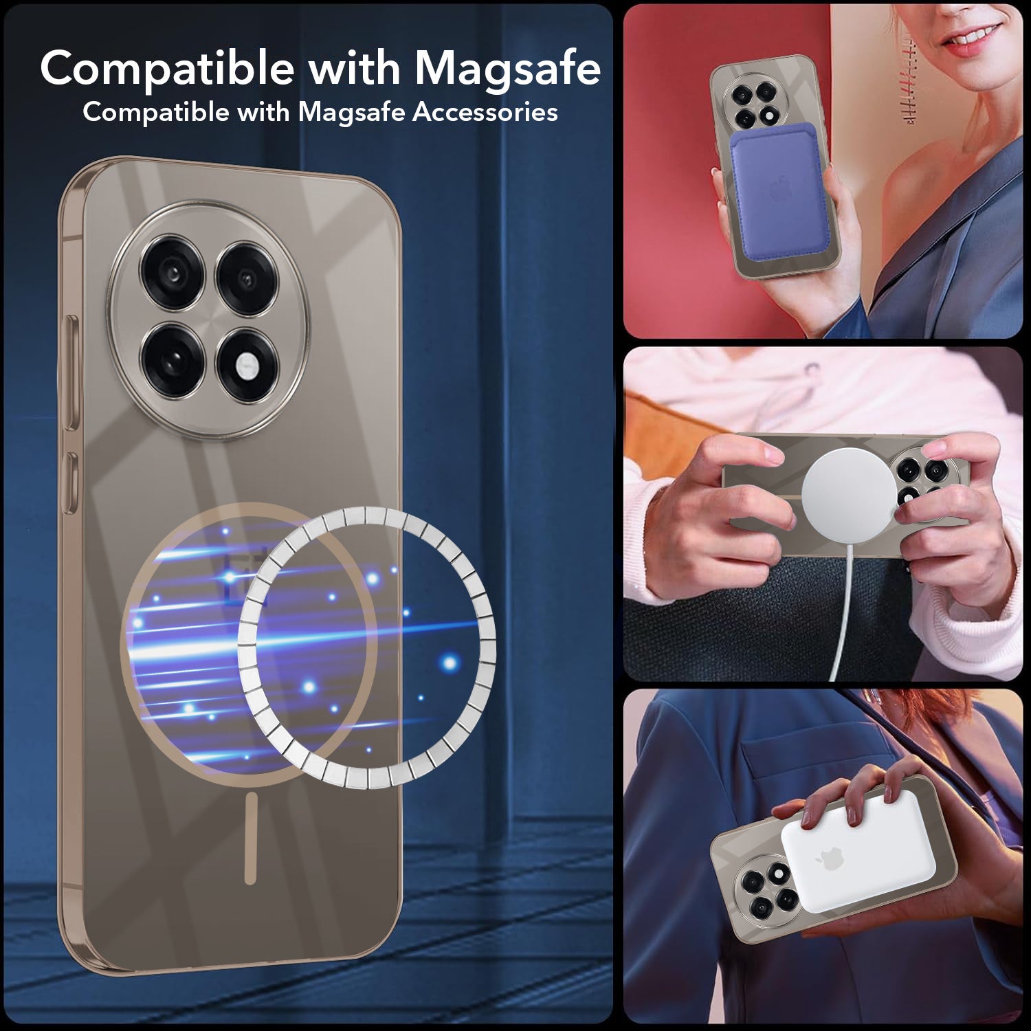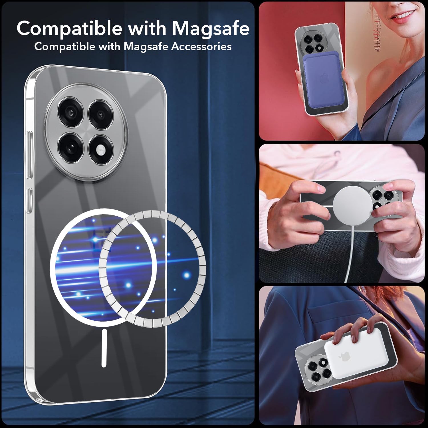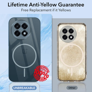 For OnePlus 13R 5G Back Cover Case (Crystal Clear Case | MagSafe Wireless Charging Support | Hard Anti Yellow | Camera Protection Bump)