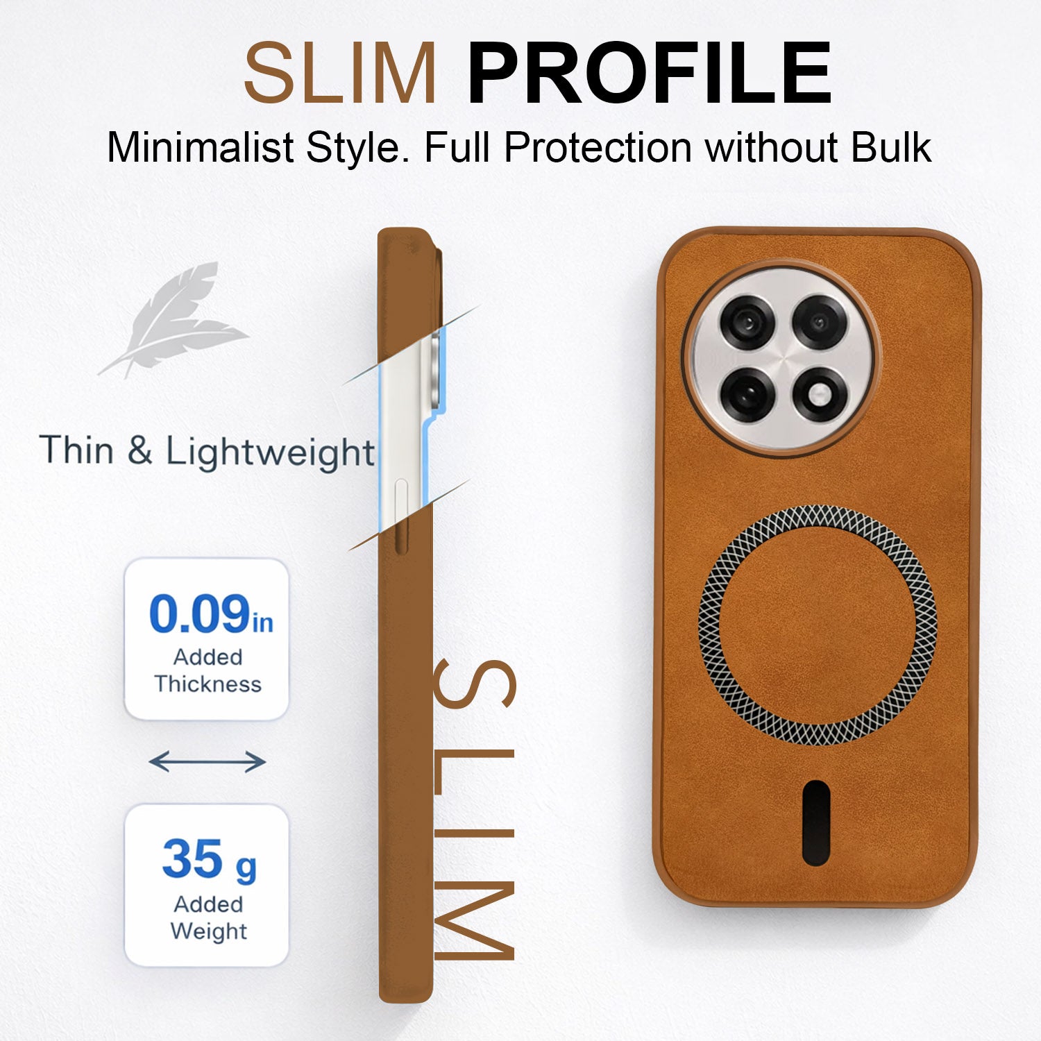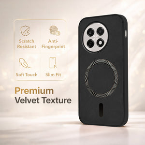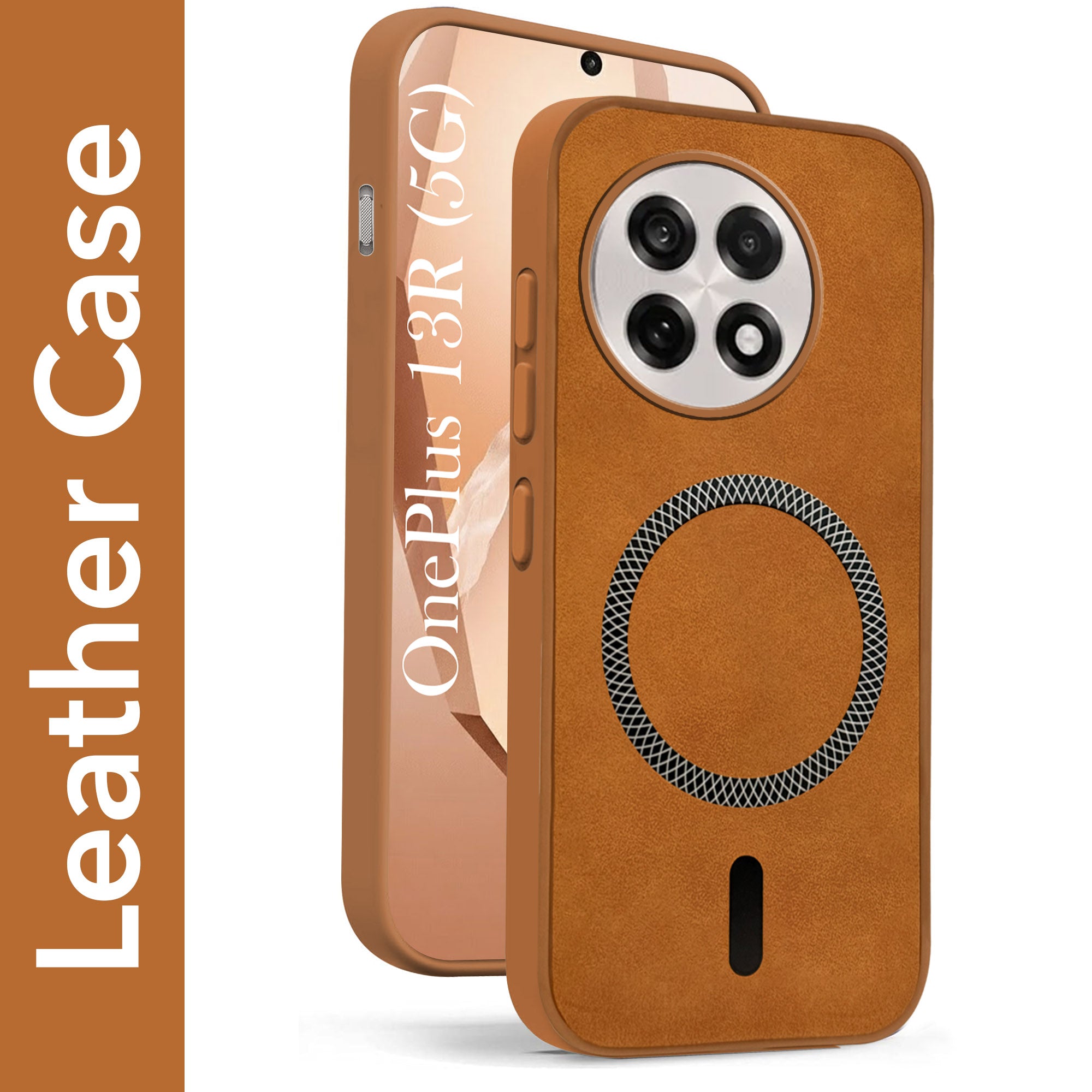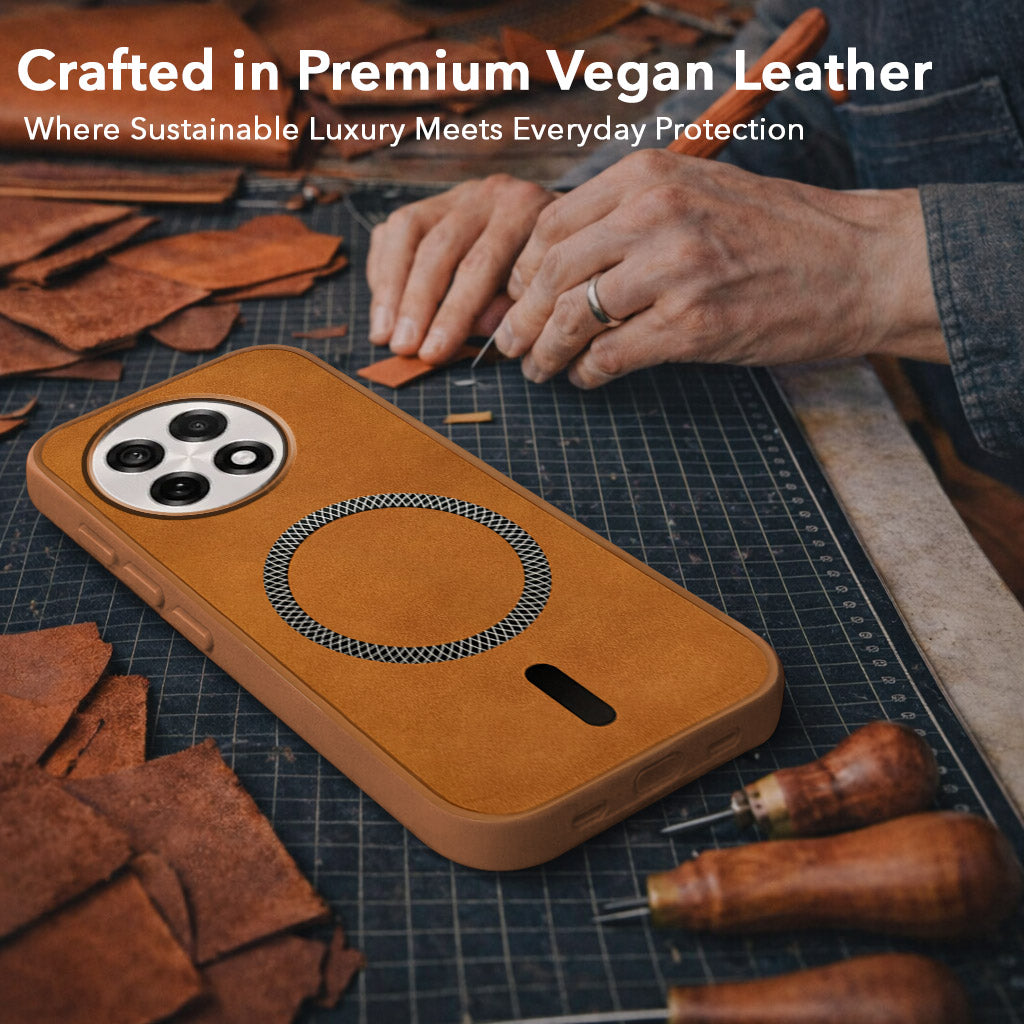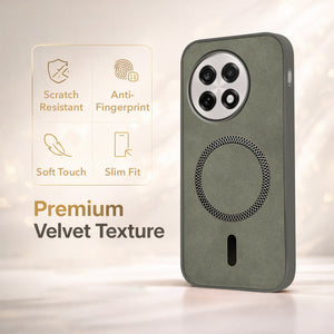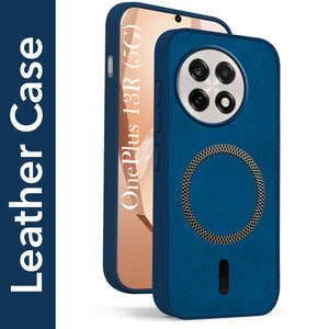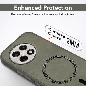 For OnePlus 13R Back Cover Case Leather Finish (MagSafe Compatible Wireless Charging | Soft Touch | Camera Bump Protection)