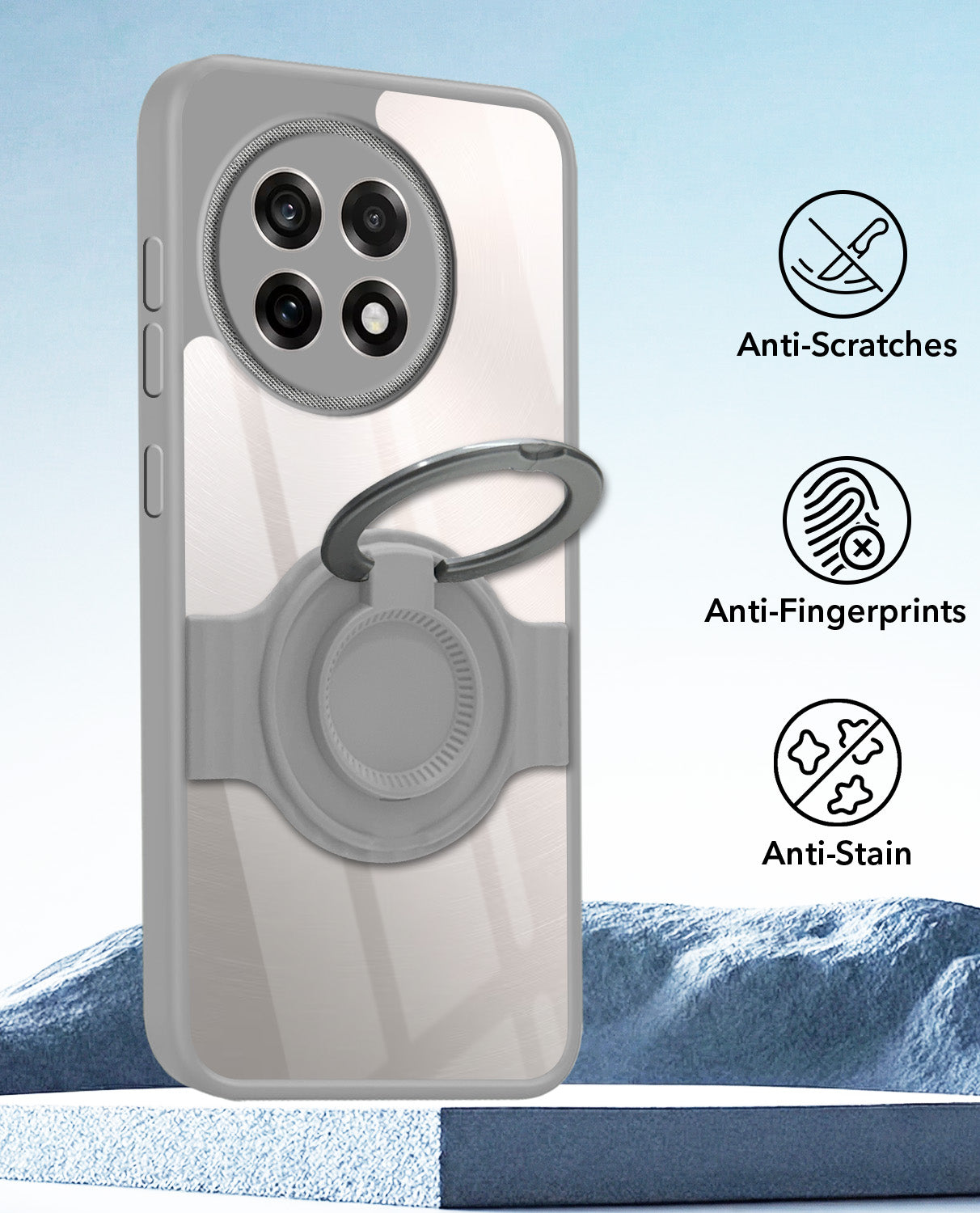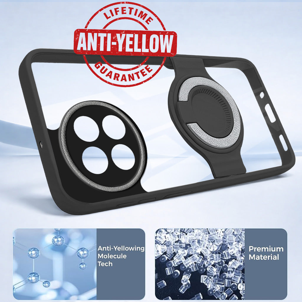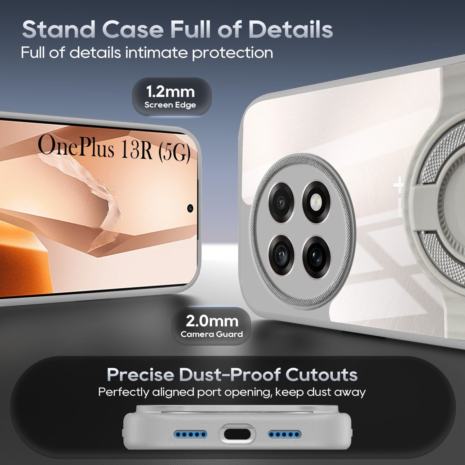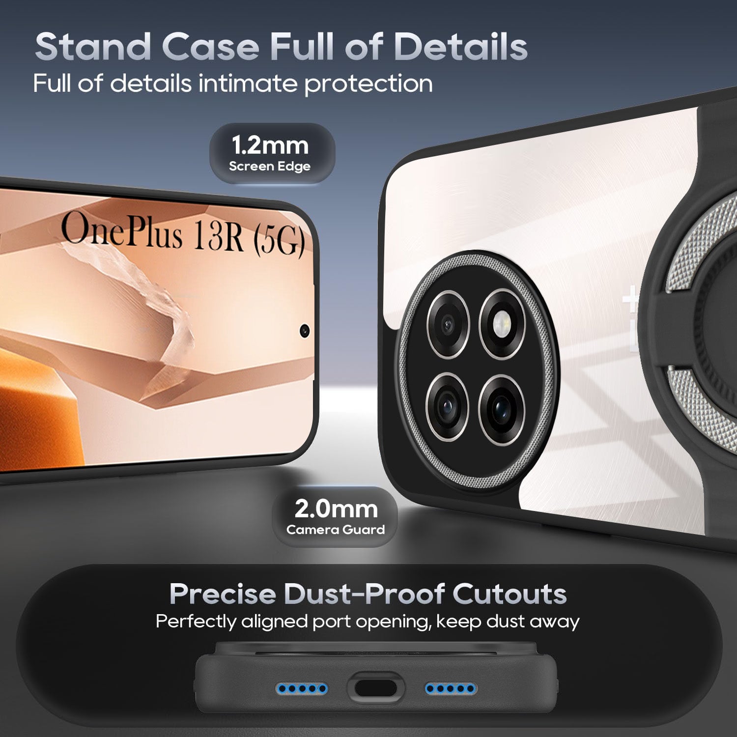 For OnePlus 13R Back Cover Case with stand (Built-in Ring Holder Kickstand | Lifetime Anti Yellow | Camera Protection)