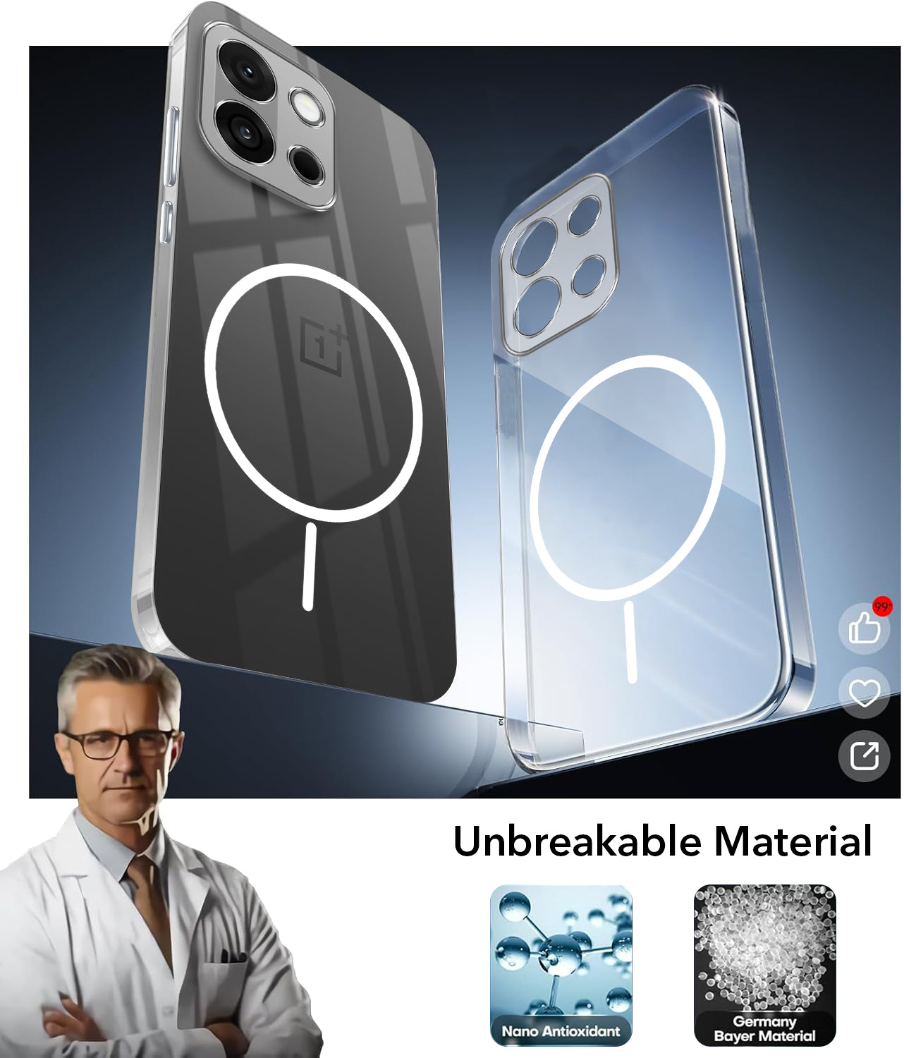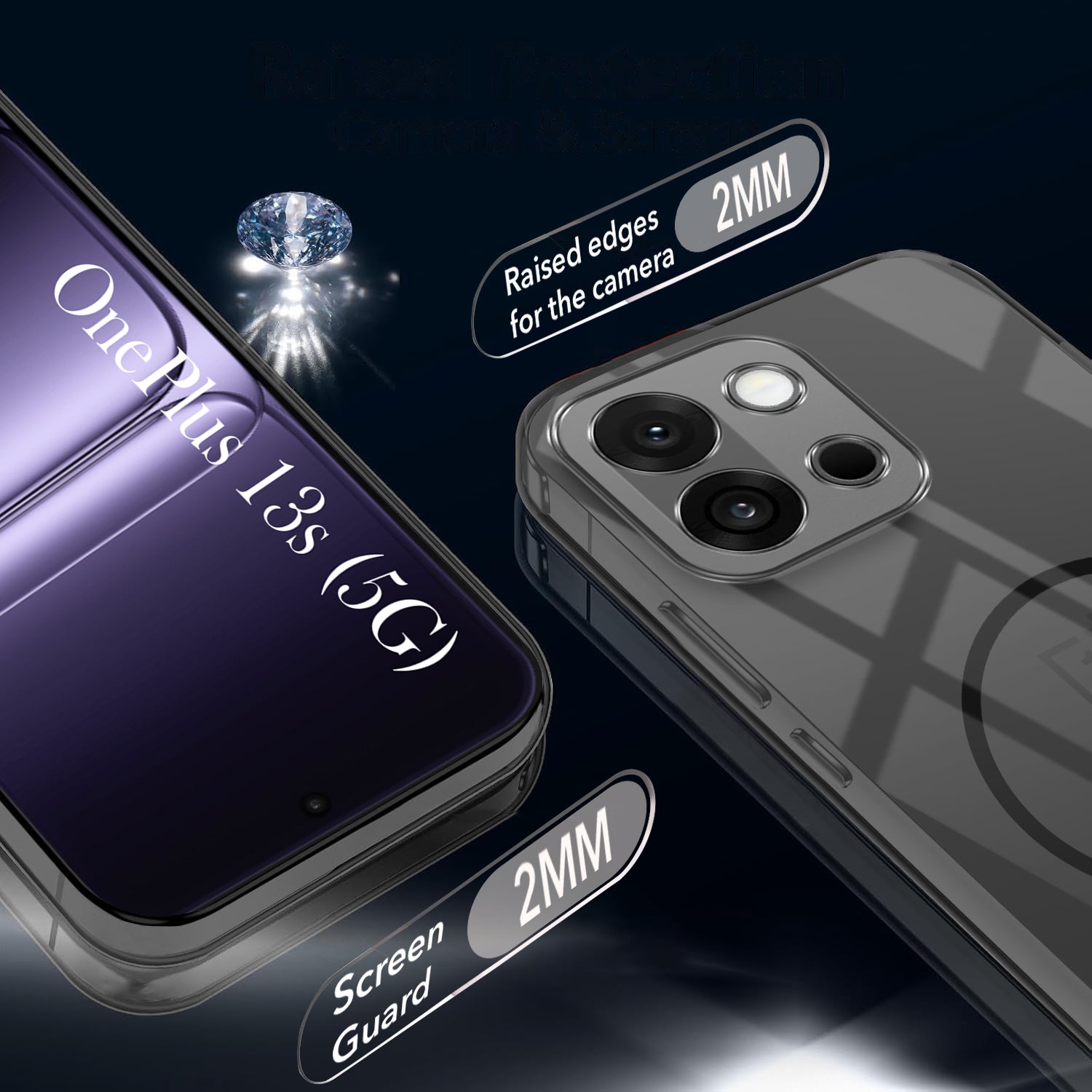 For OnePlus 13S Back Cover Case (Crystal Clear Case | MagSafe Wireless Charging Support | Hard Anti Yellow | Camera Protection Bump)