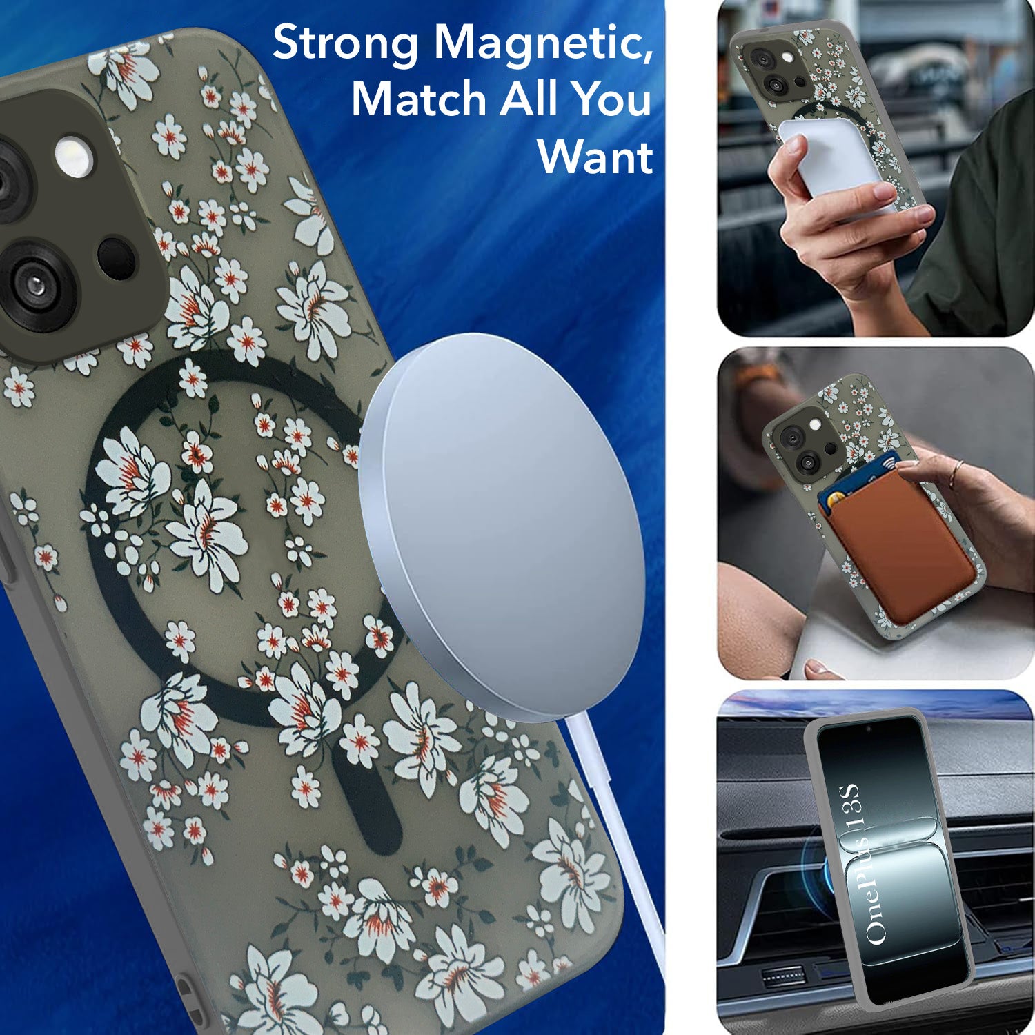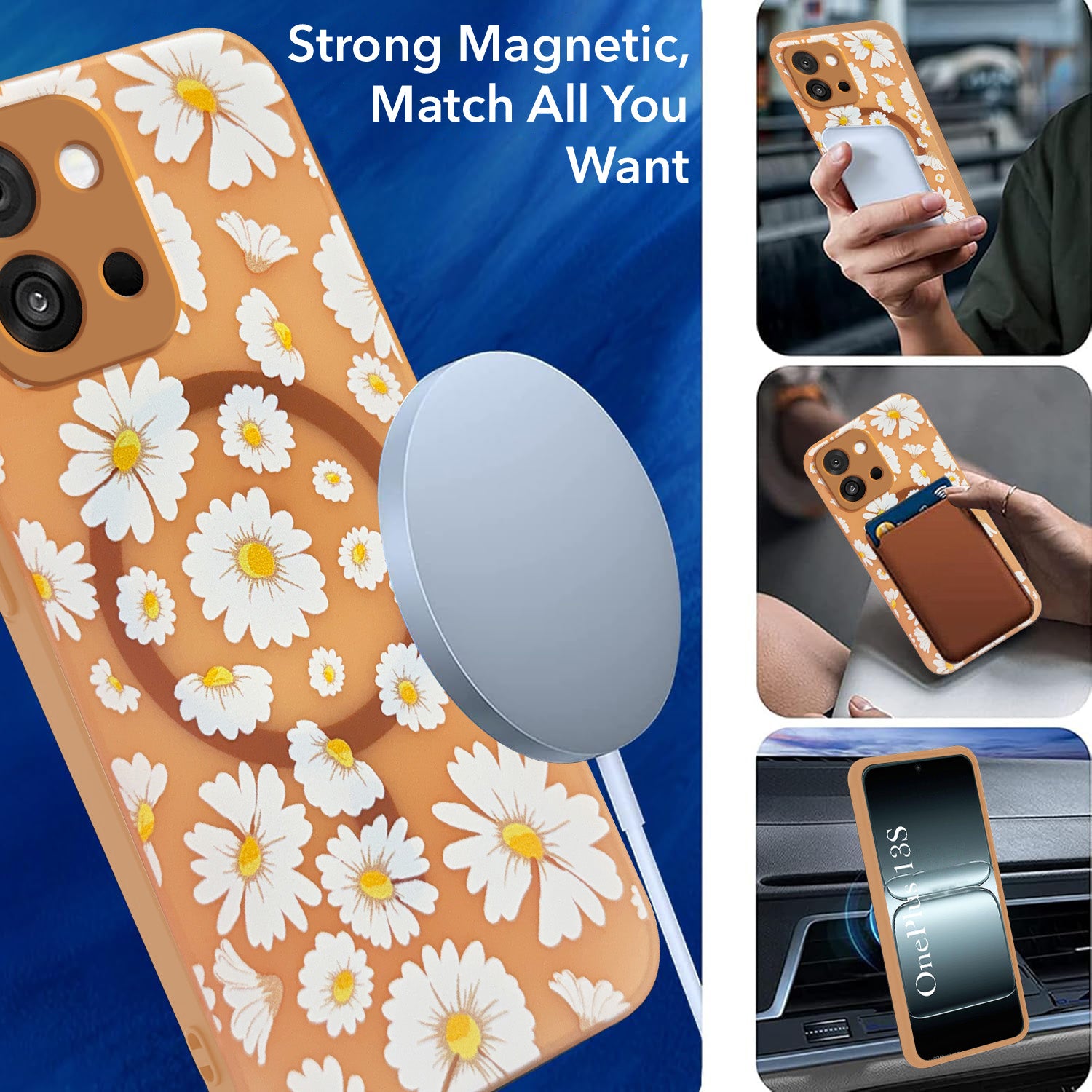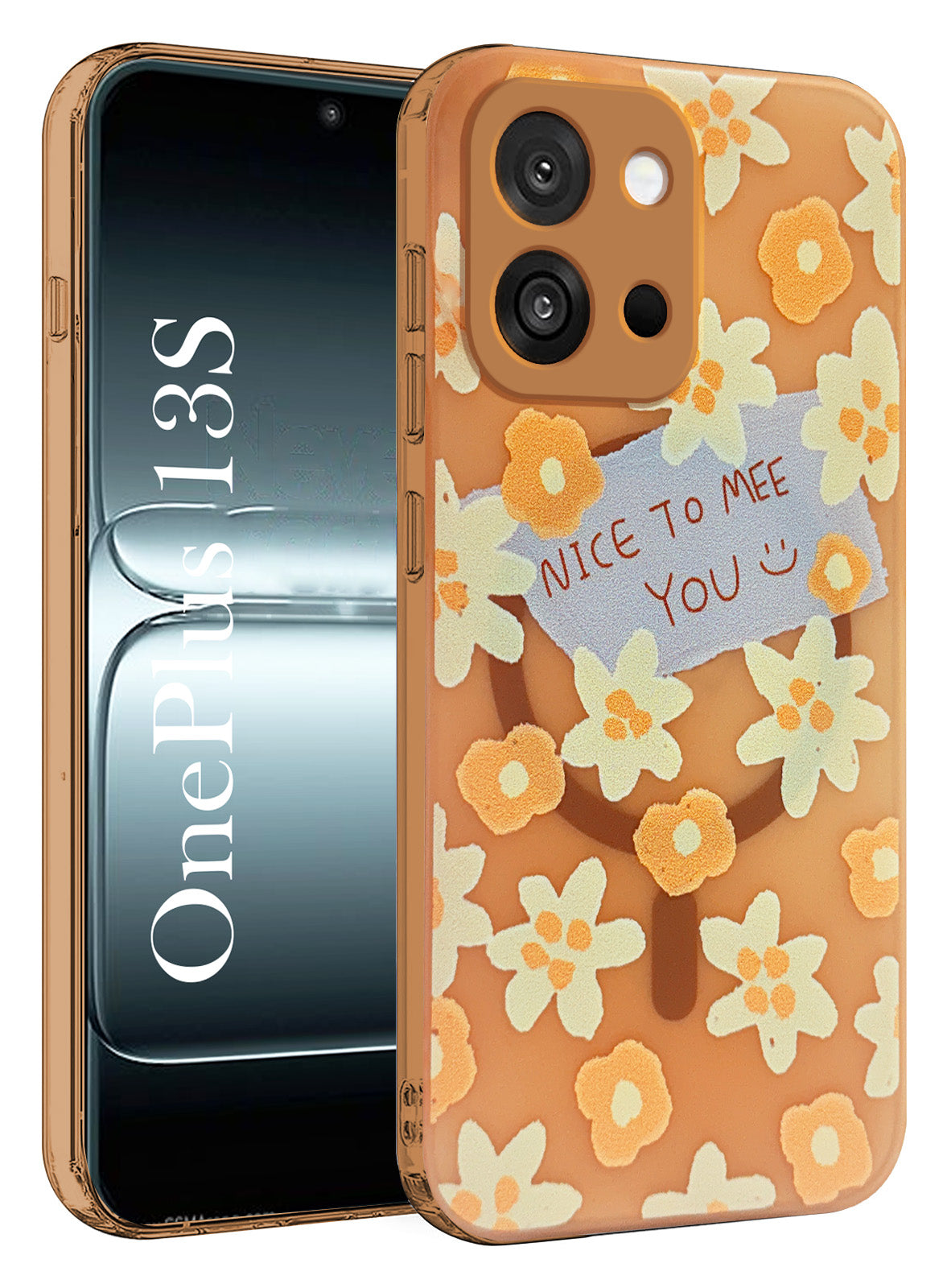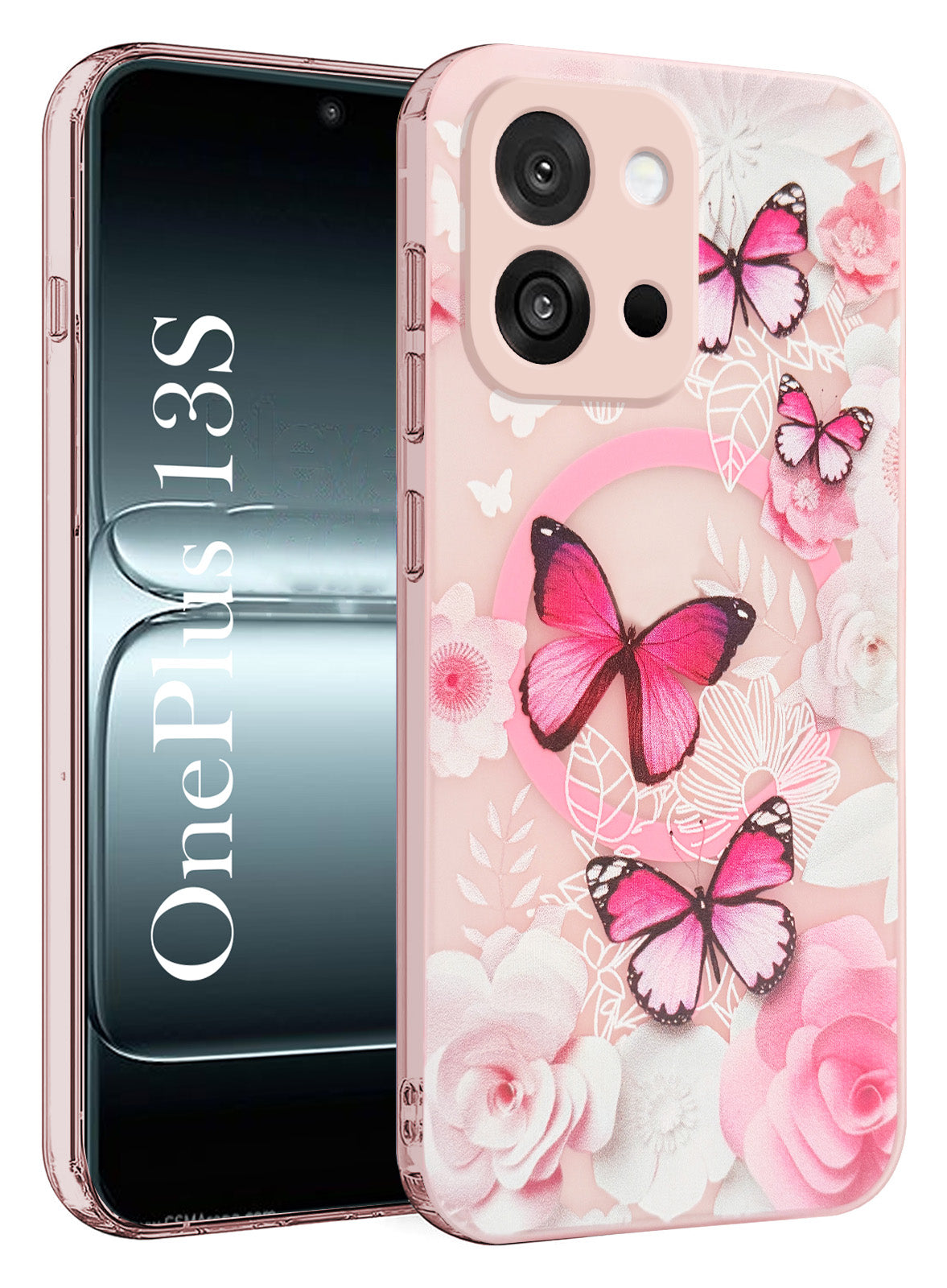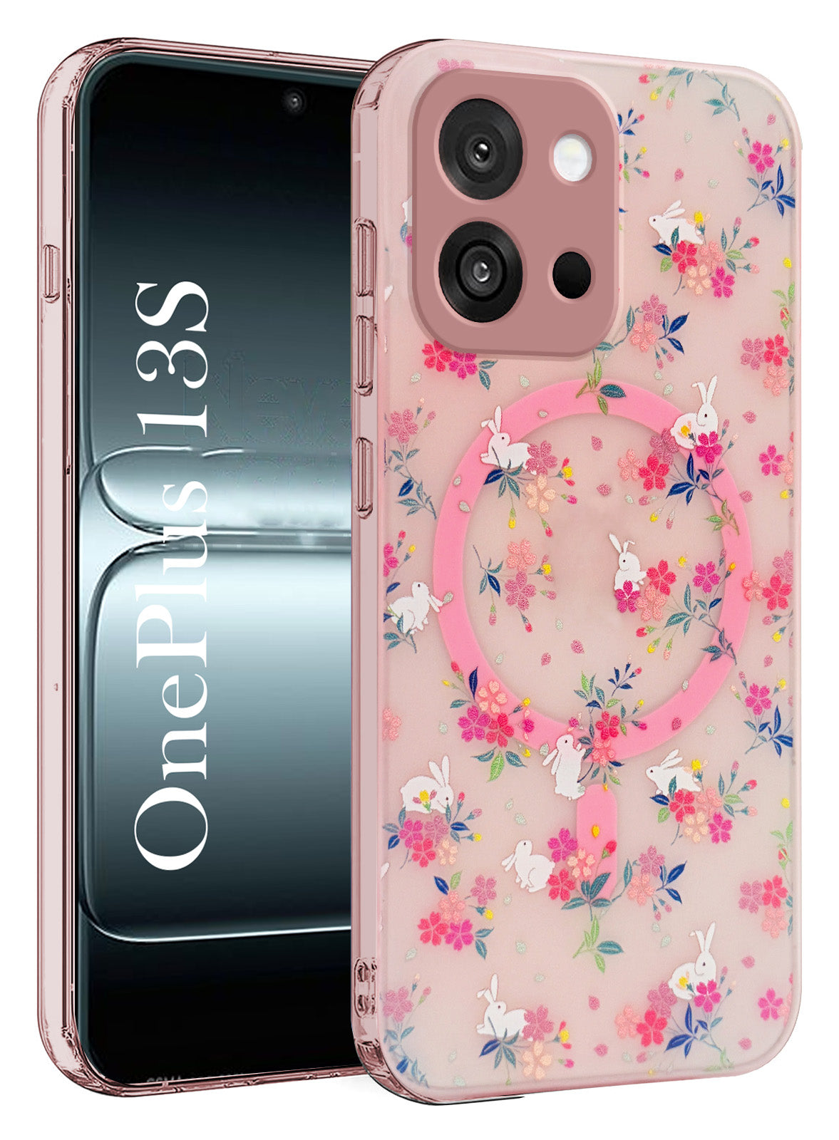 For OnePlus 13S Back Cover Case (Cute Floral Design | Flower Print for Girls | MagSafe Compatible Wireless Charging)