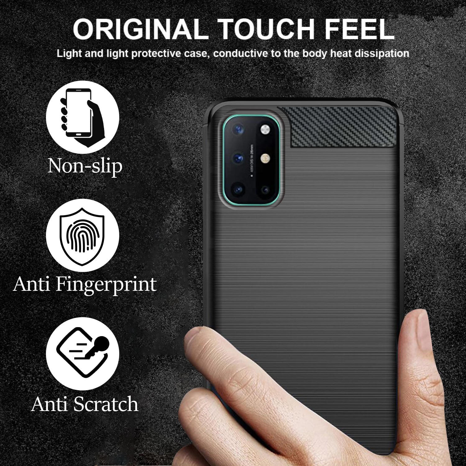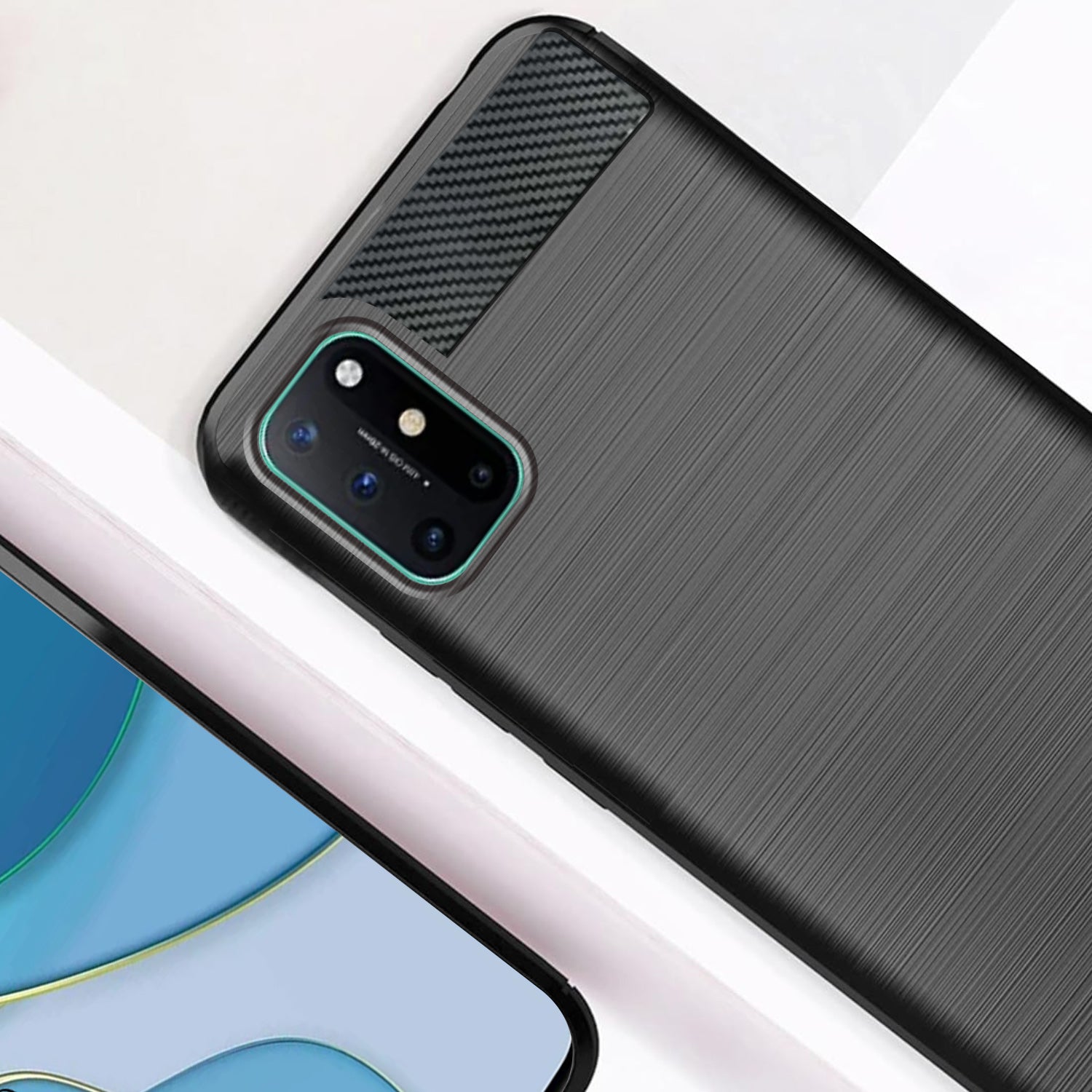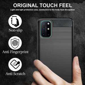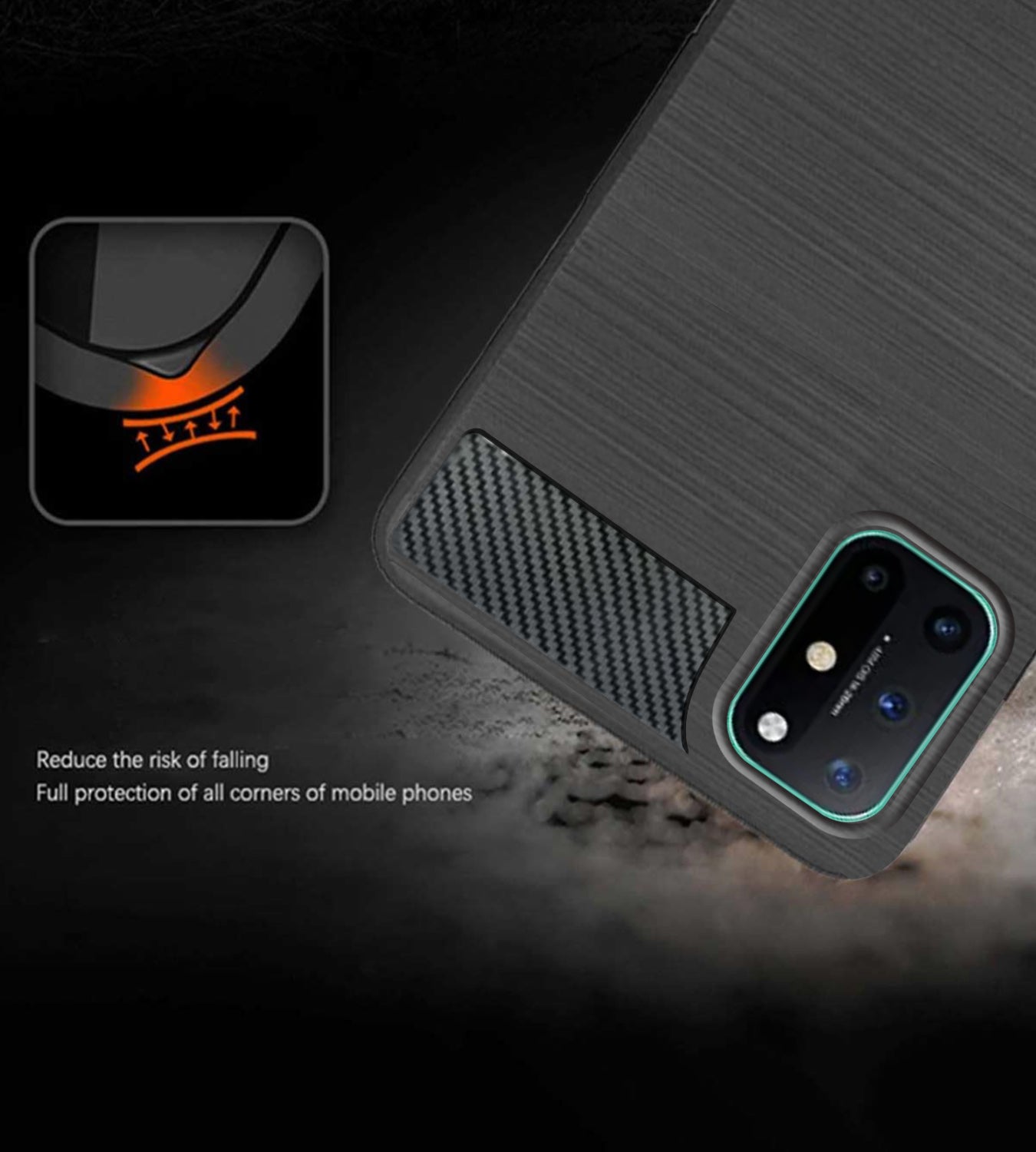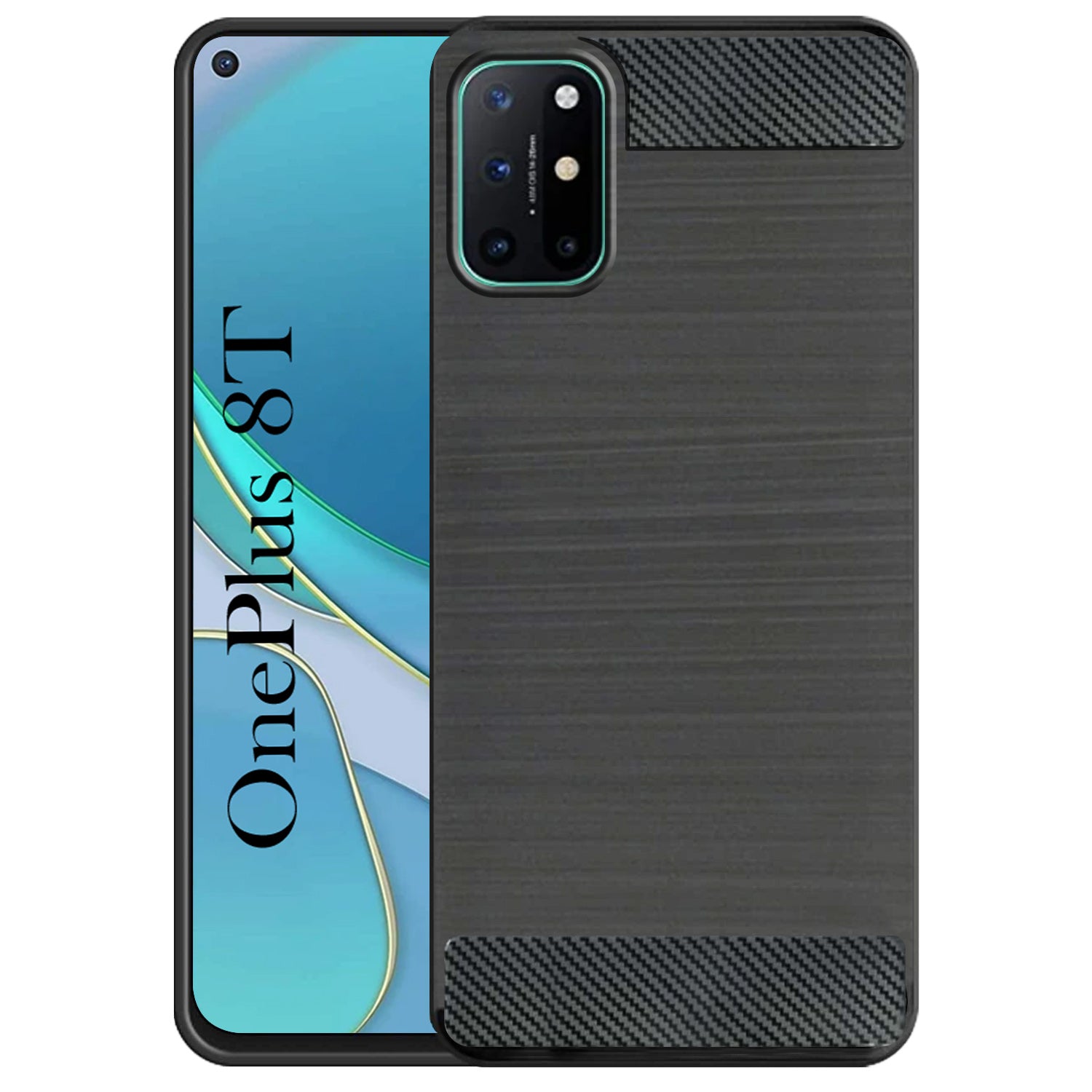 For OnePlus 8T Back Cover Case ( Hybrid Armor Case | Carbon Fiber Shockproof | Soft and Flexible | Black )