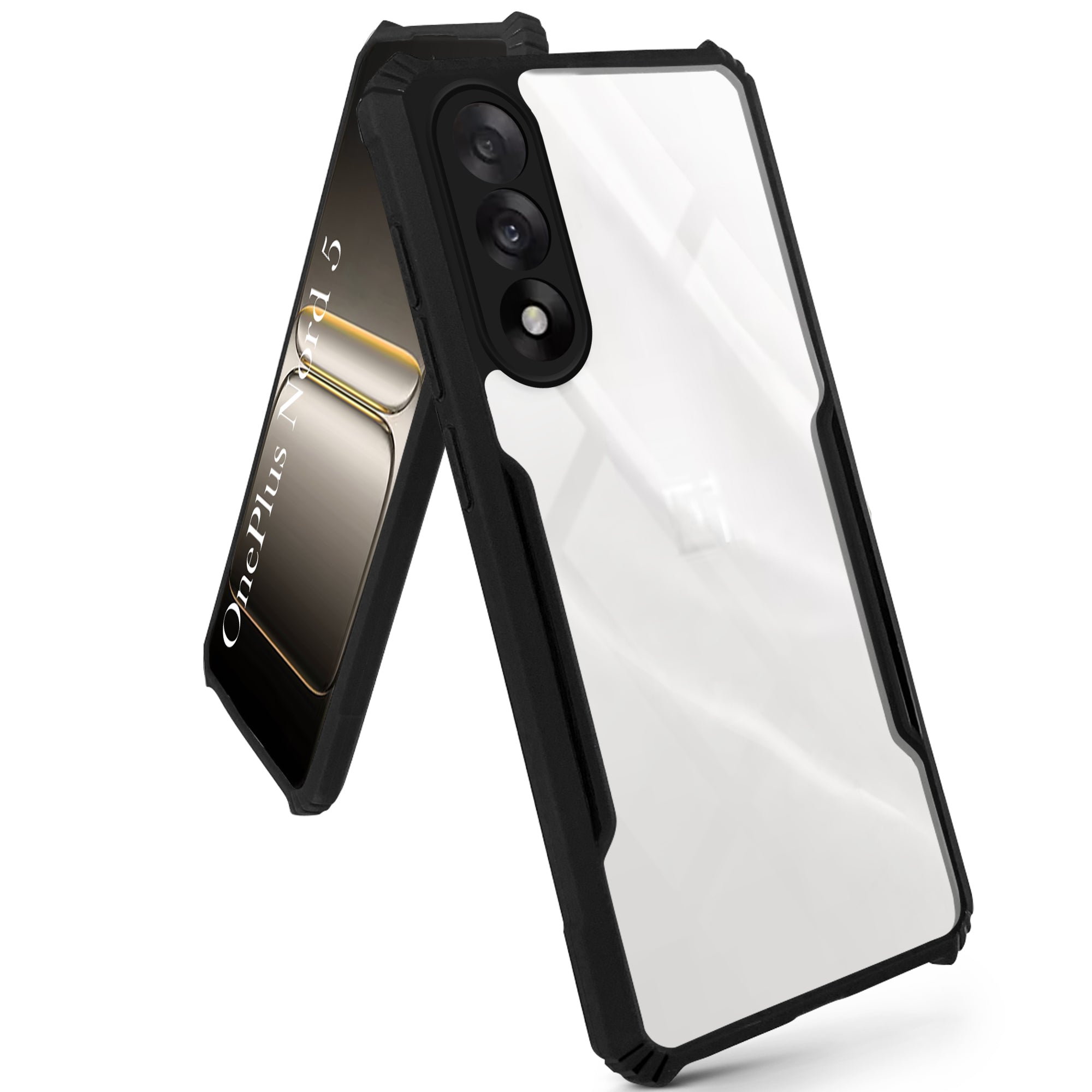 For Oneplus Nord 5 Back Cover Case (Shockproof with Polycarbonate Clear Panel | Professional Black)
