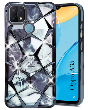 For Oppo A35 Back Cover Case (Dual Design Glitter Sparkle and Detachable Diamond Print Case | Soft and Flexible)