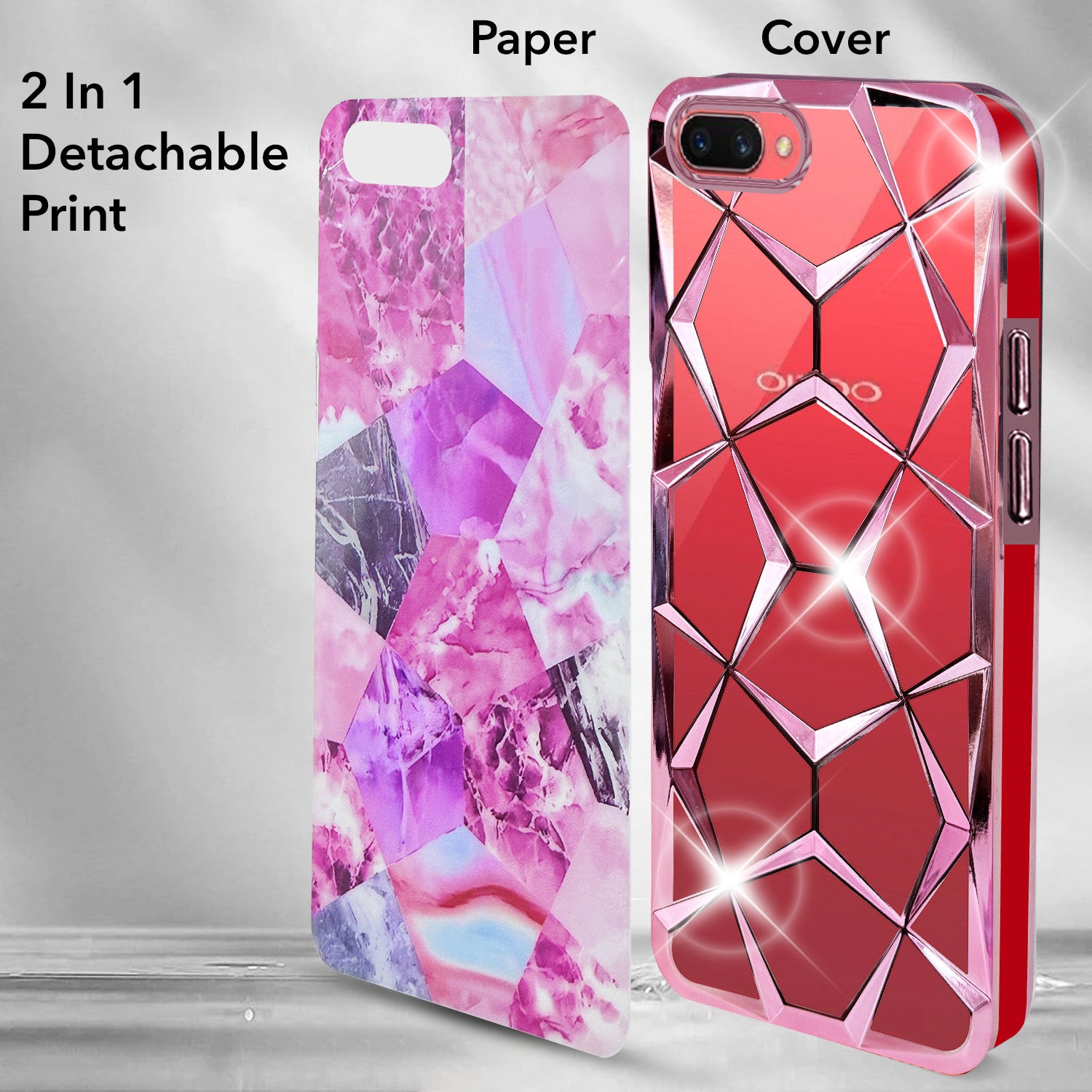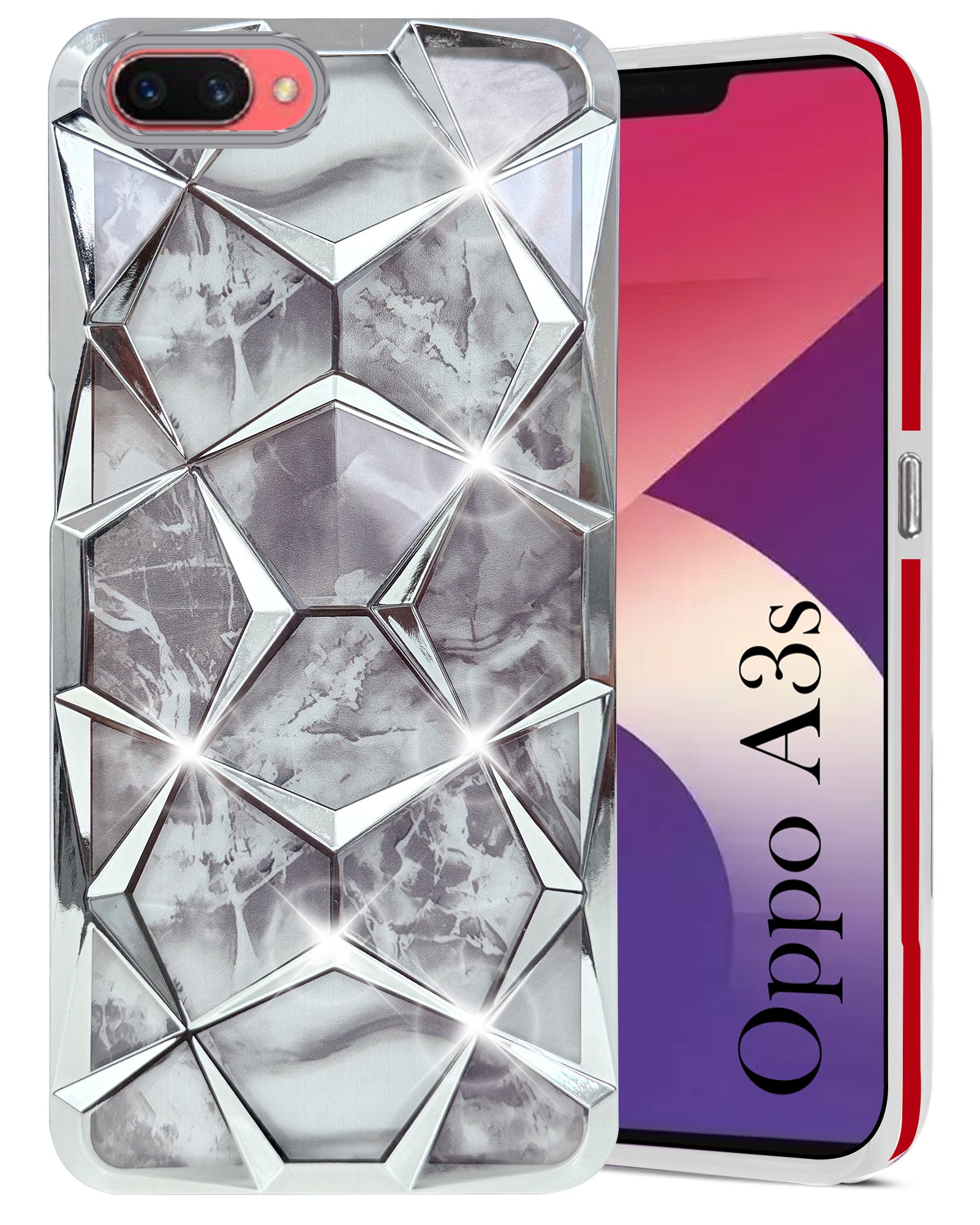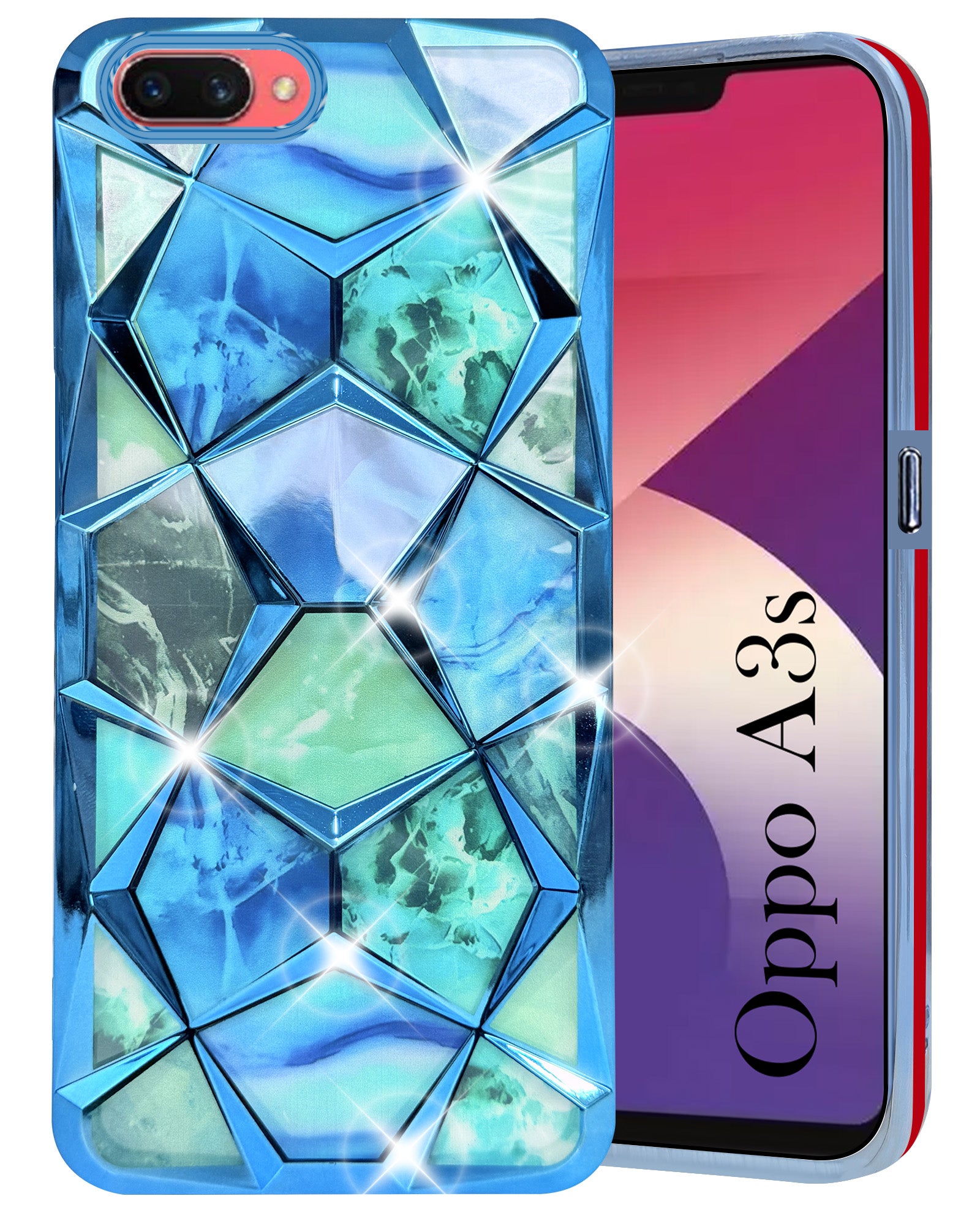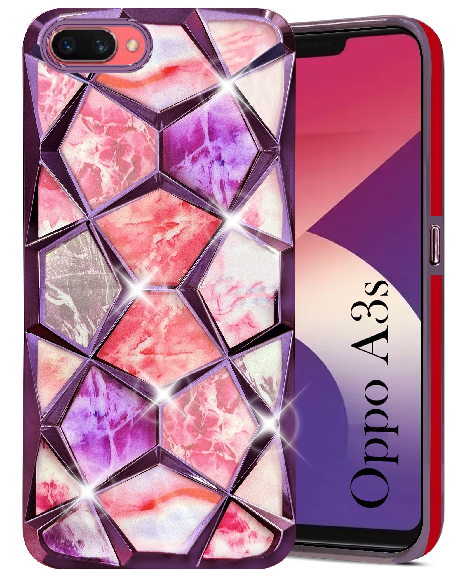 For Oppo A3s Back Cover Case (Dual Design Glitter Sparkle and Detachable Diamond Print Case | Soft and Flexible)