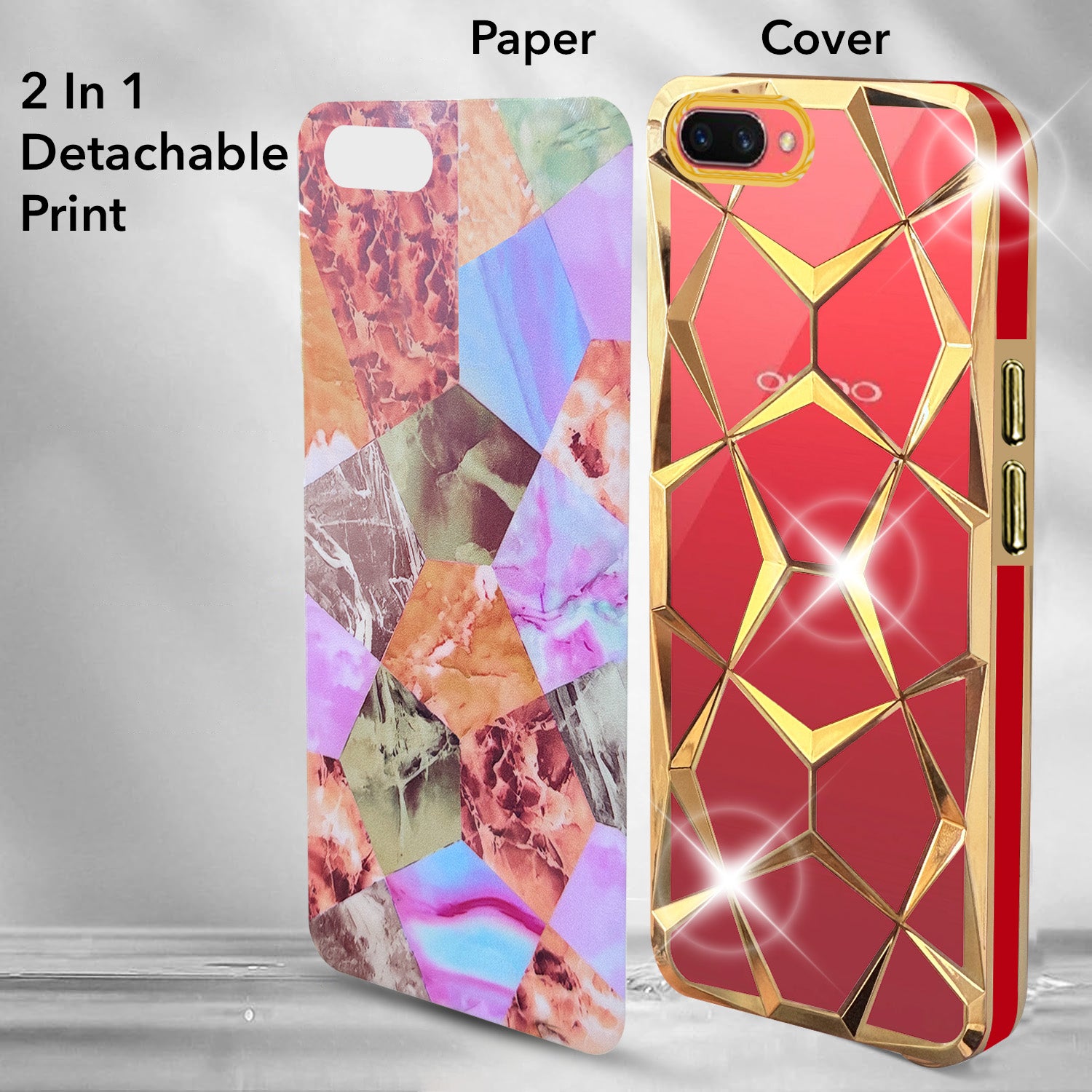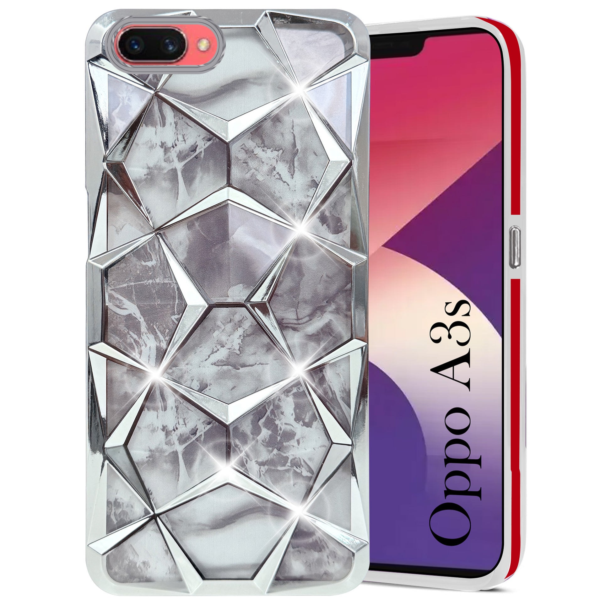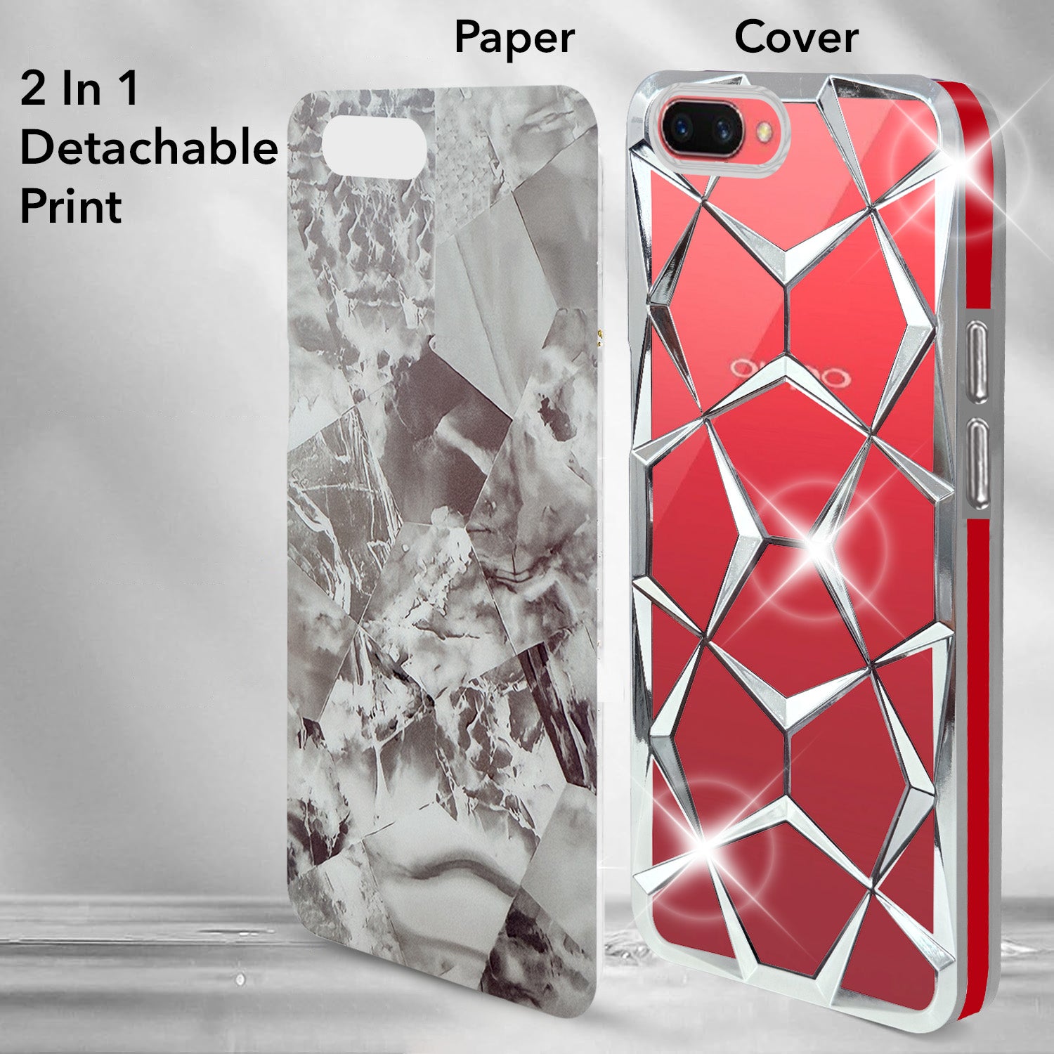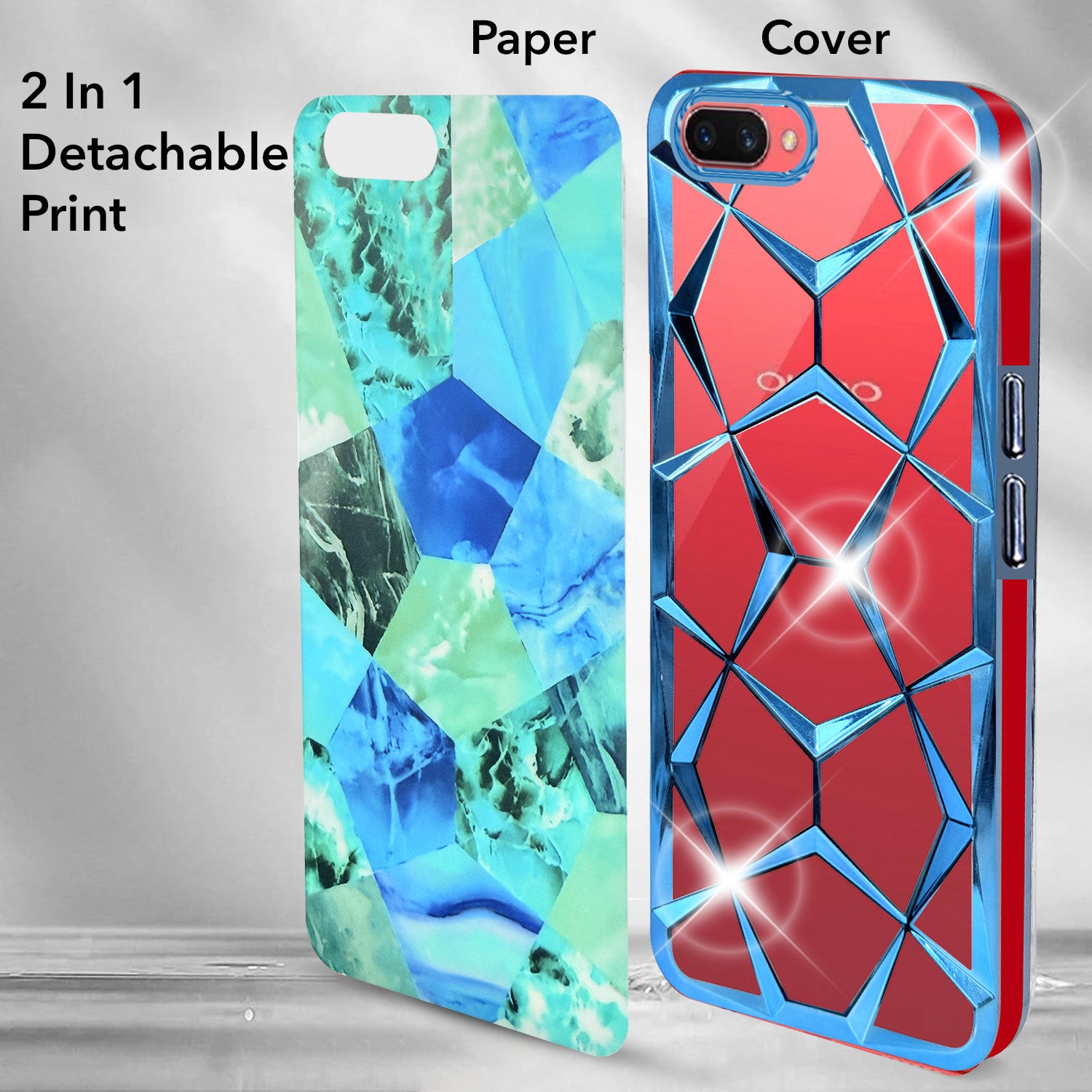 For Oppo A3s Back Cover Case (Dual Design Glitter Sparkle and Detachable Diamond Print Case | Soft and Flexible)