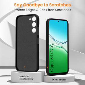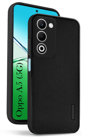 For Oppo A5 5G Back Cover Case (Textured Grip Design | Micro-Fiber Cloth Inside | Slim and Light Weight | Soft Touch and Feel | Black)