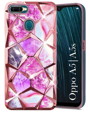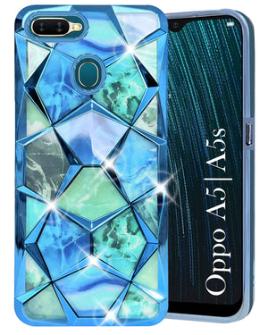 For Oppo A5 | Oppo A5s Back Cover Case (Dual Design Glitter Sparkle and Detachable Diamond Print Case | Soft and Flexible)