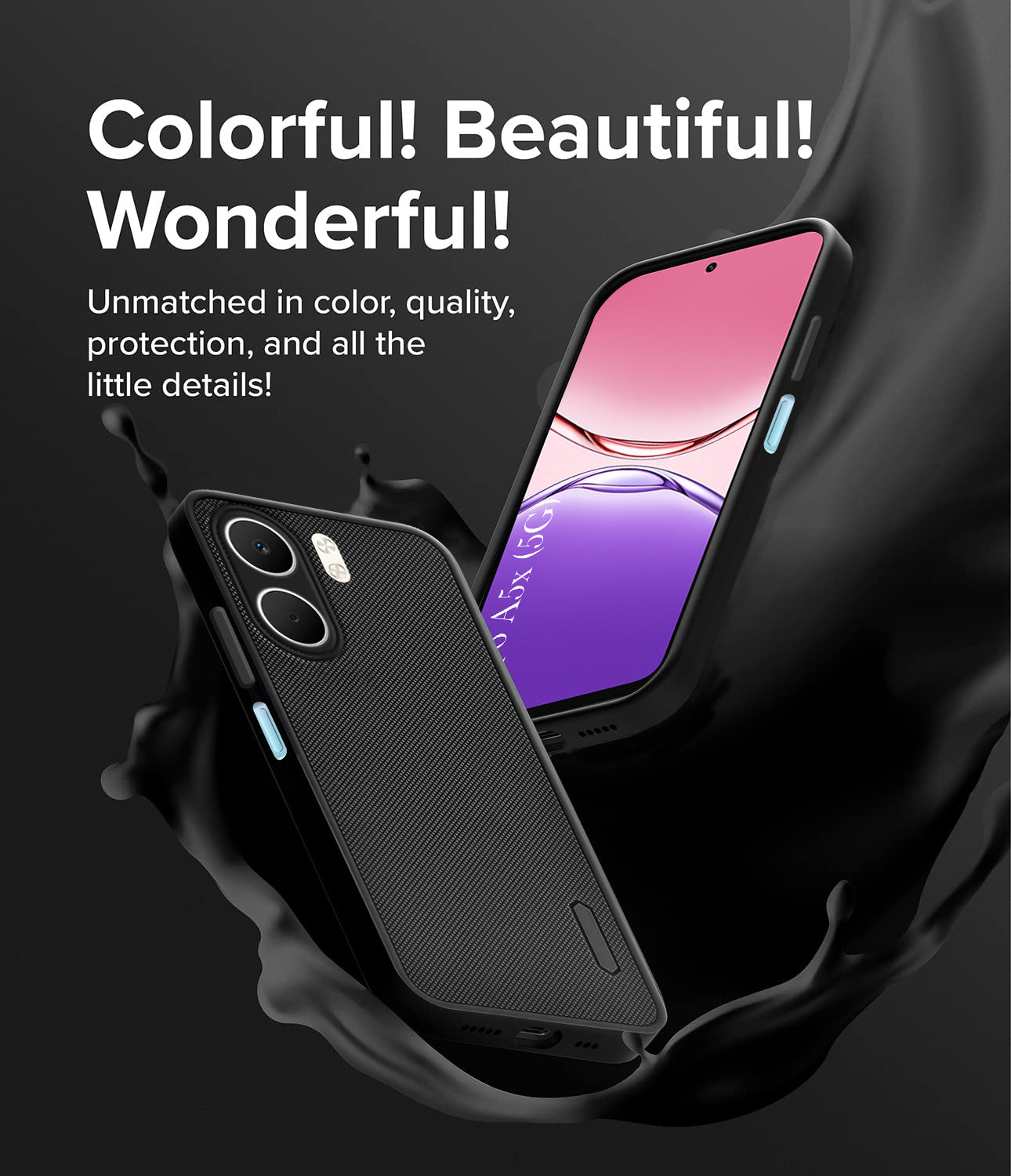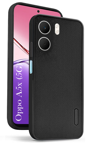 For Oppo A5X Back Cover Case (Textured Grip Design | Micro-Fiber Cloth Inside | Slim and Light Weight | Soft Touch and Feel | Black)